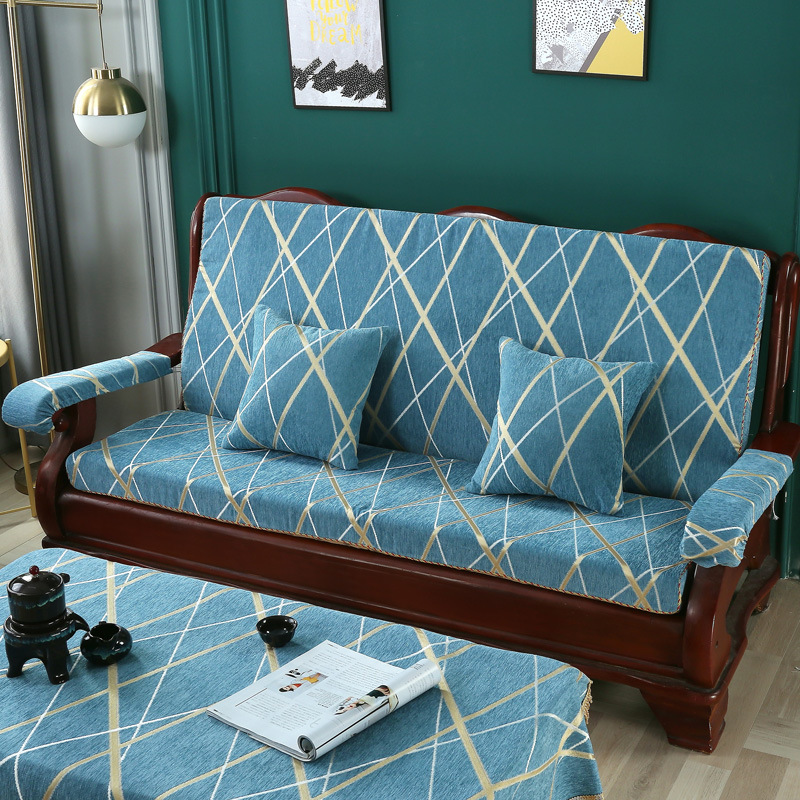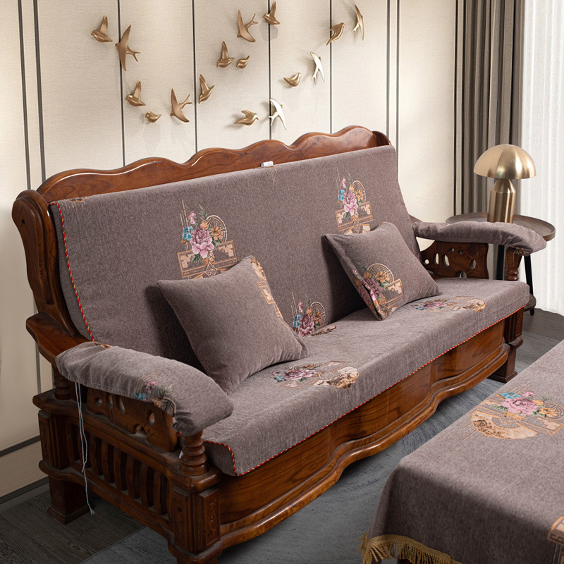 두꺼운 마호가니 단단한 나무 머리 등받이 중국 연방 의자 봄과 가을 미끄럼 방지 스폰지가있는 구식 3 인용 소파 쿠션스토어 가기