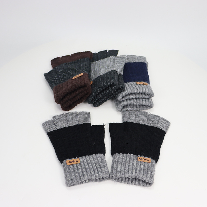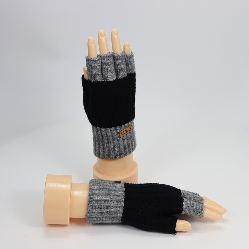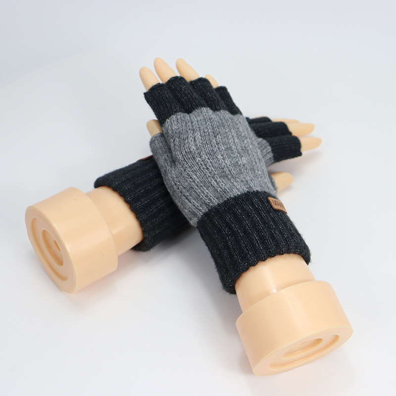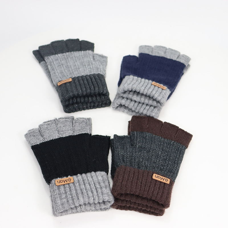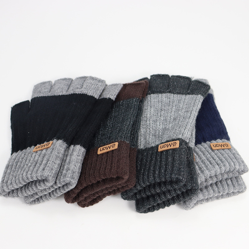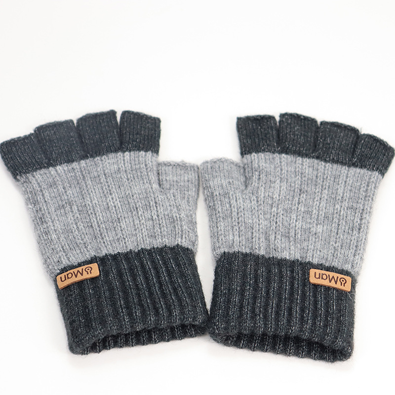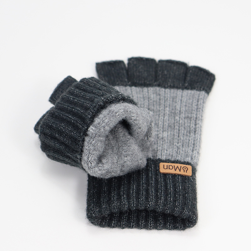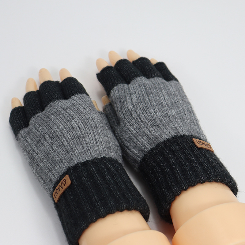 남성과 여성을위한 하프 핑거 장갑 겨울 두꺼운 따뜻한 양모 니트 엑스트라 핑거 학생들의 글쓰기 자카드 미끄럼 방지 장갑