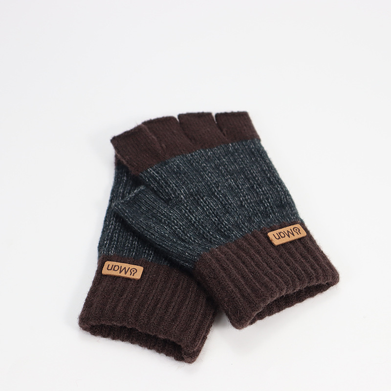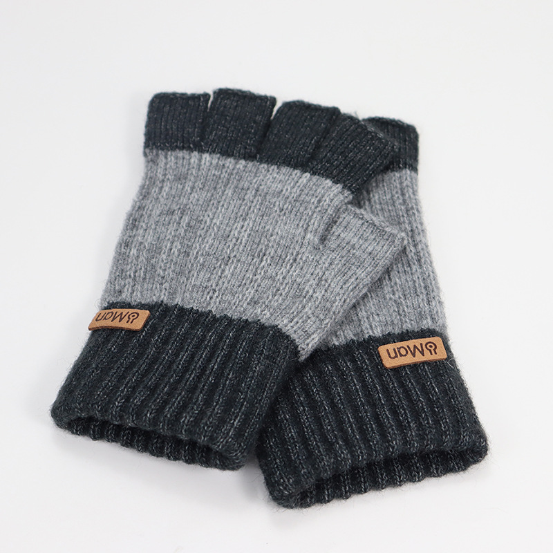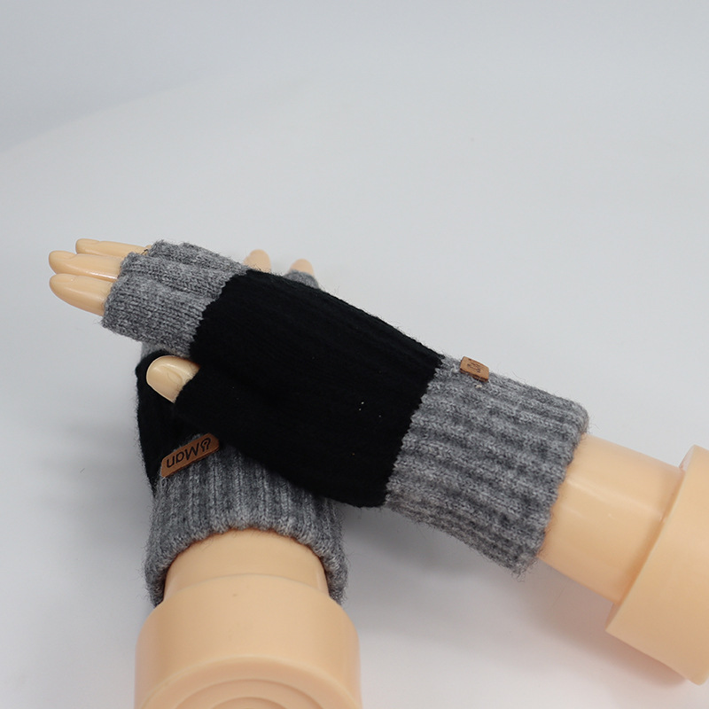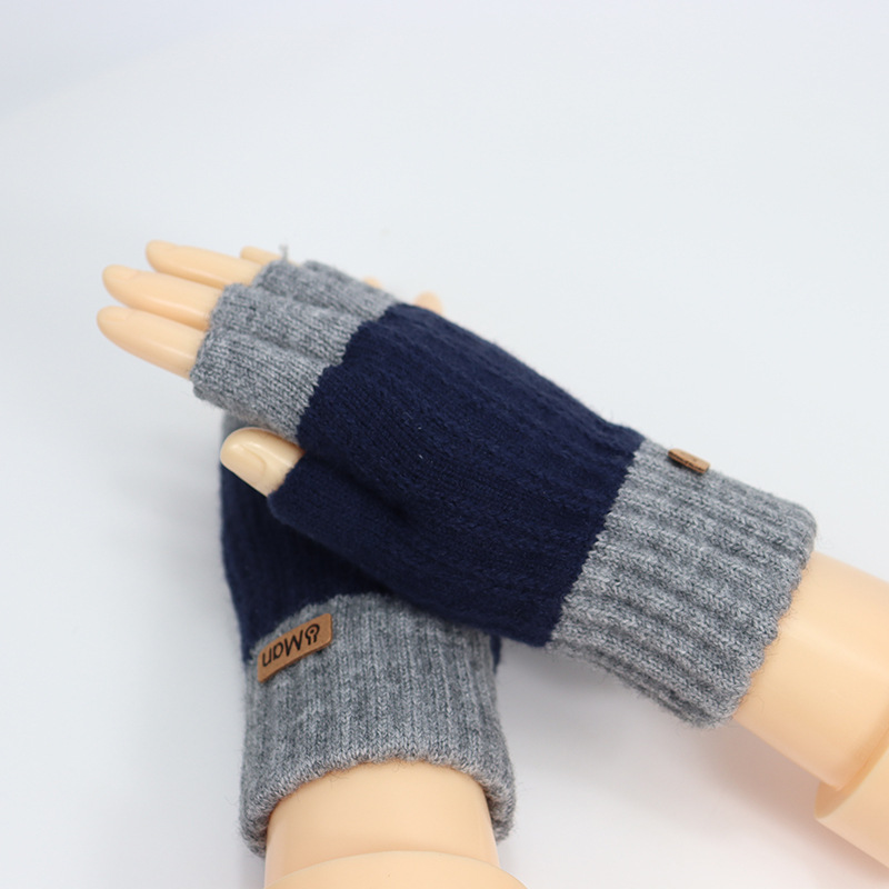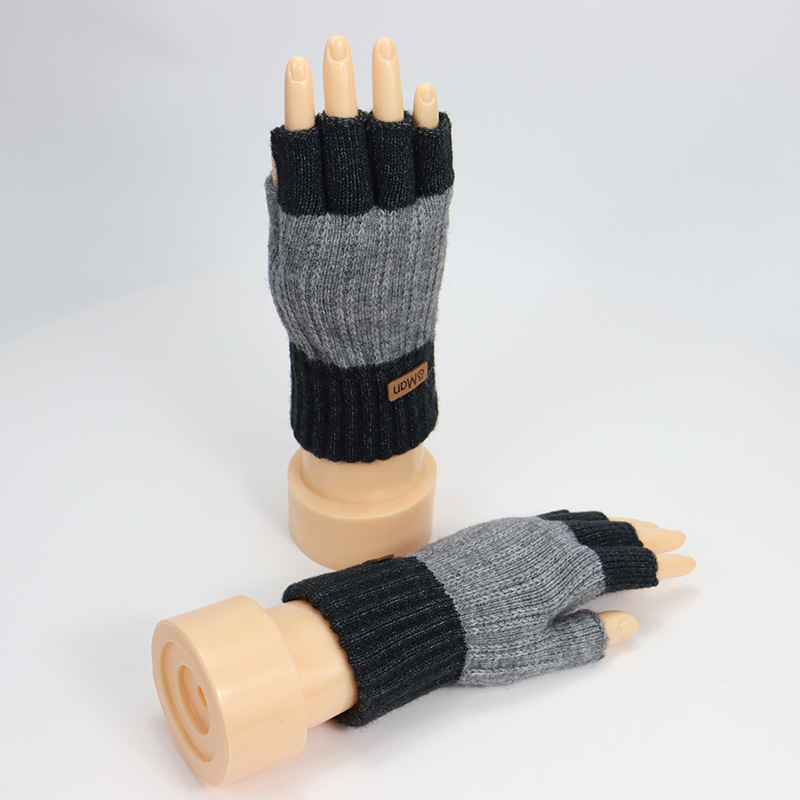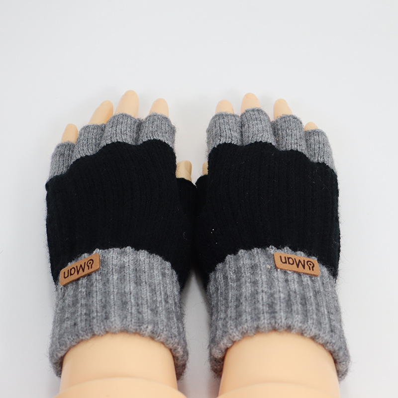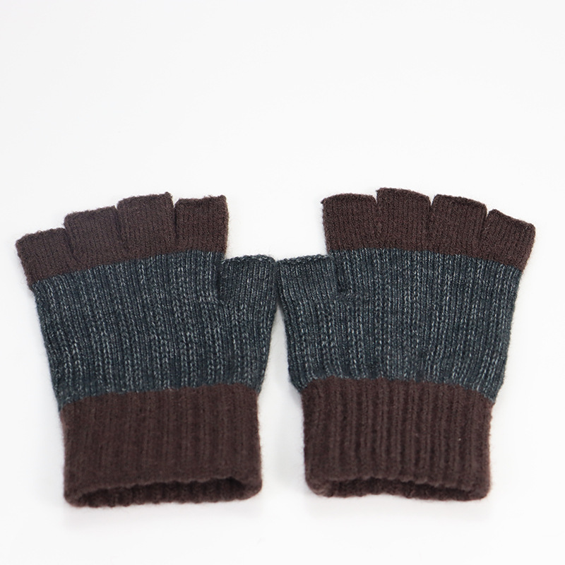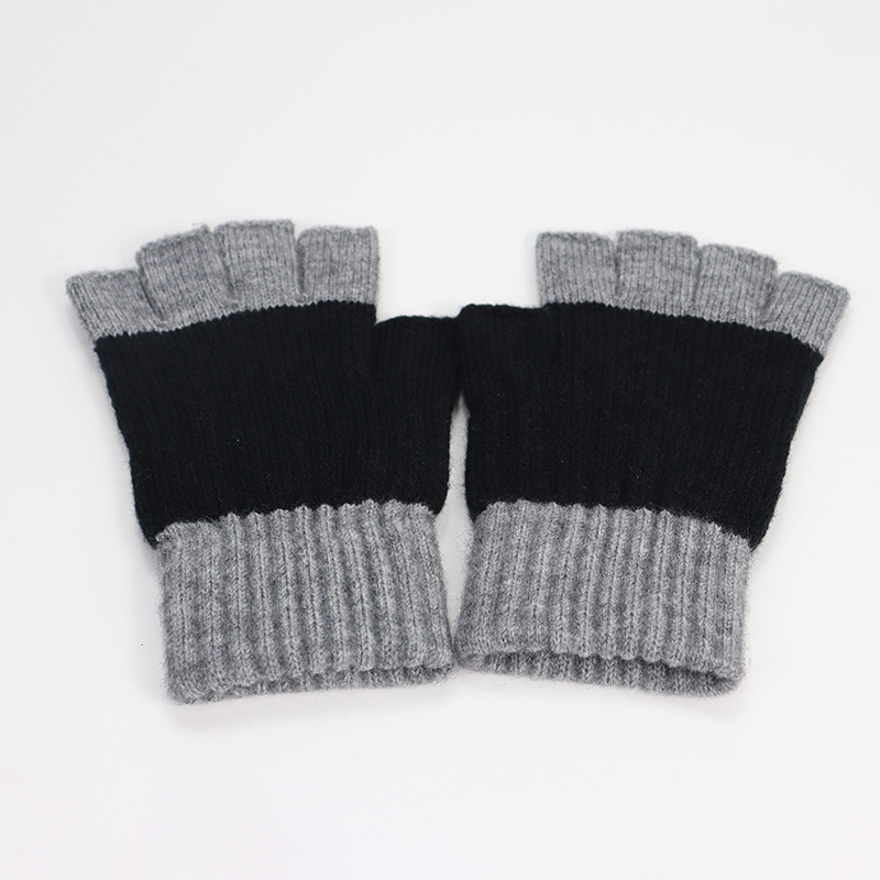 남성과 여성을위한 하프 핑거 장갑 겨울 두꺼운 따뜻한 양모 니트 엑스트라 핑거 학생들의 글쓰기 자카드 미끄럼 방지 장갑