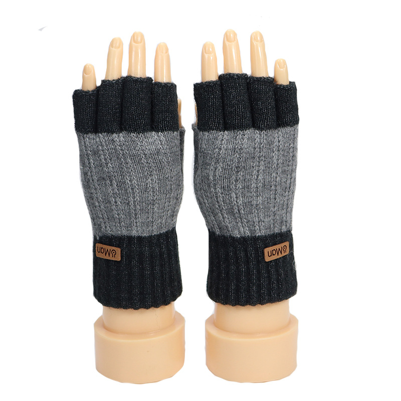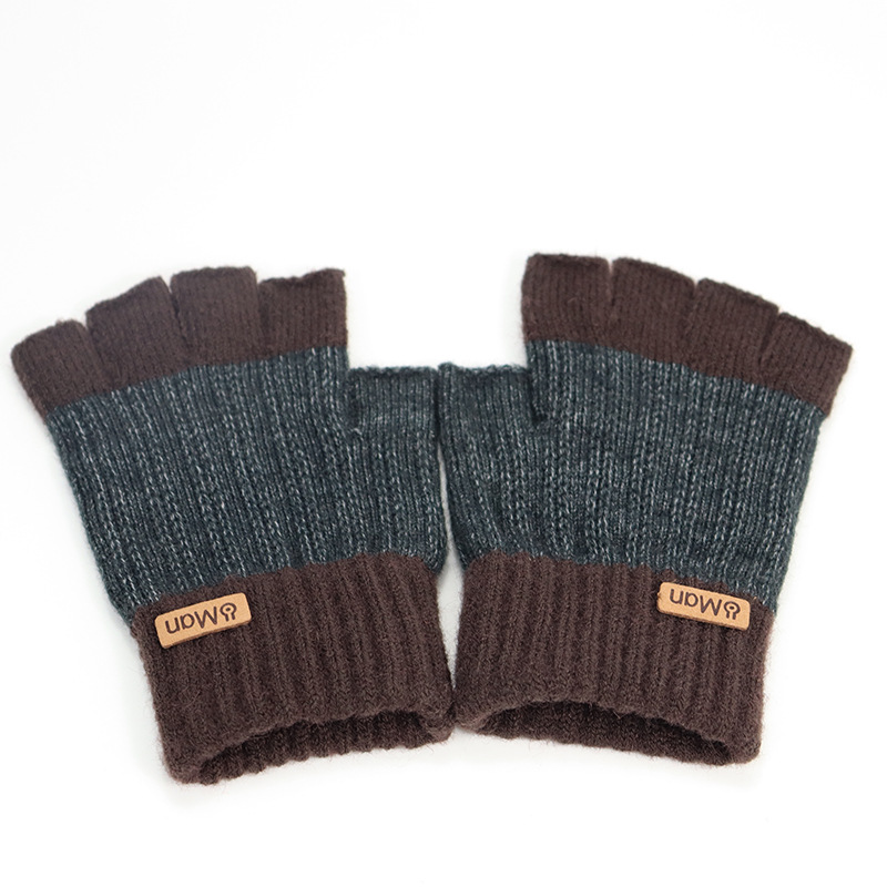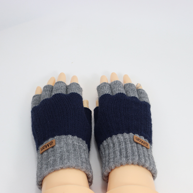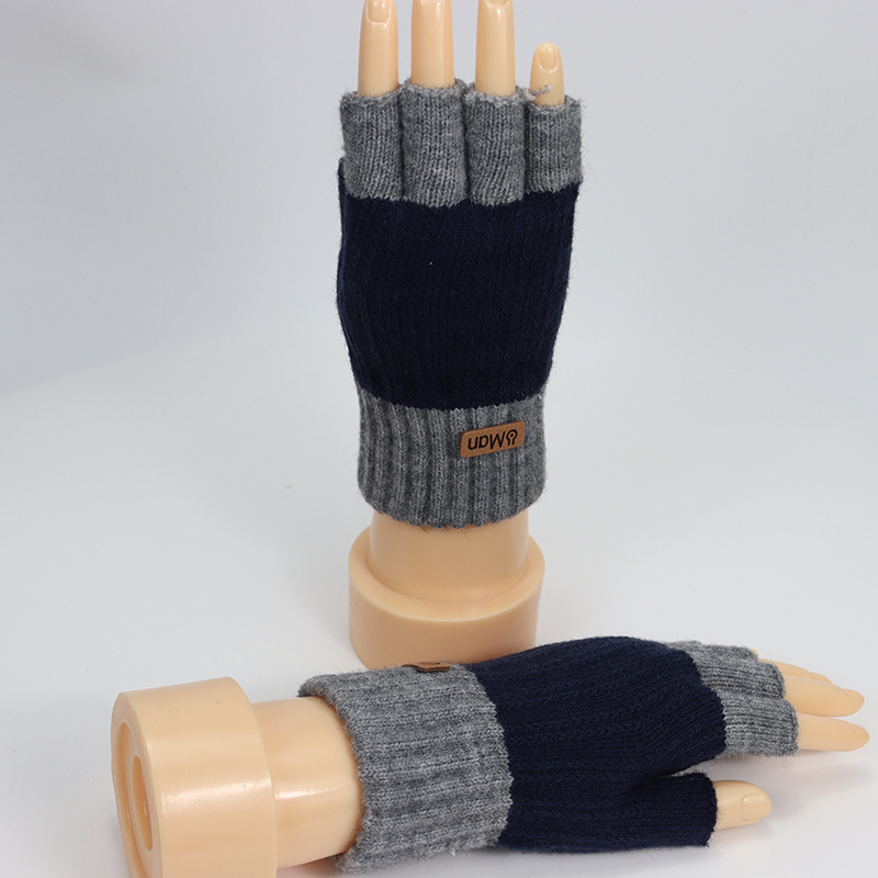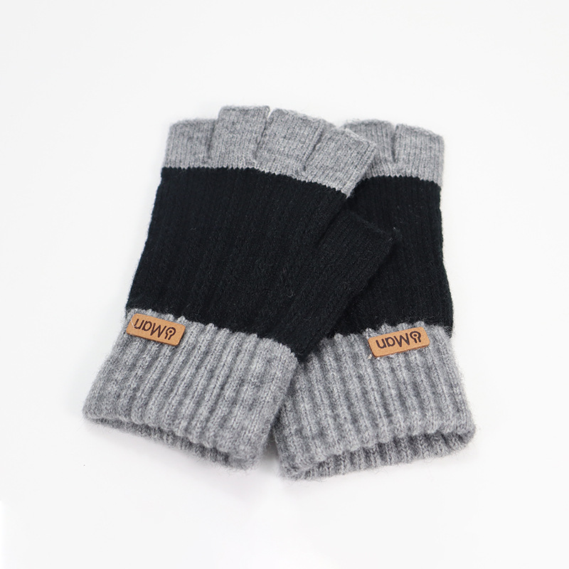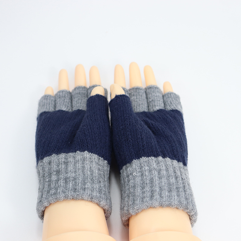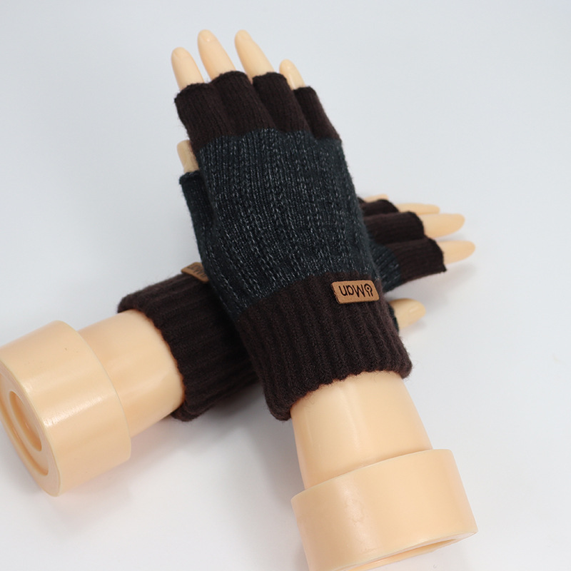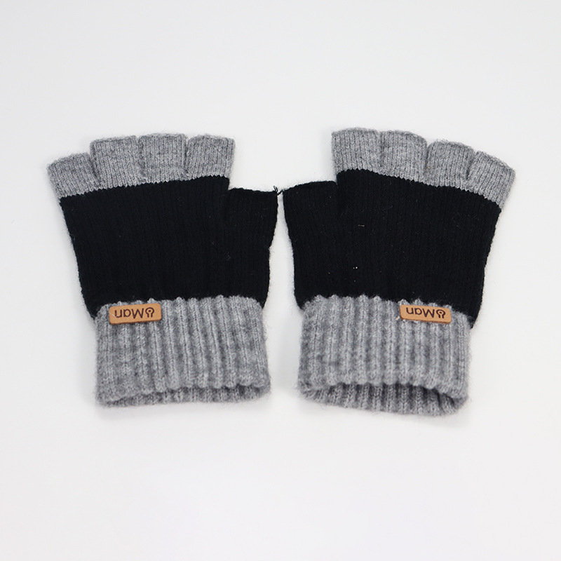 남성과 여성을위한 하프 핑거 장갑 겨울 두꺼운 따뜻한 양모 니트 엑스트라 핑거 학생들의 글쓰기 자카드 미끄럼 방지 장갑