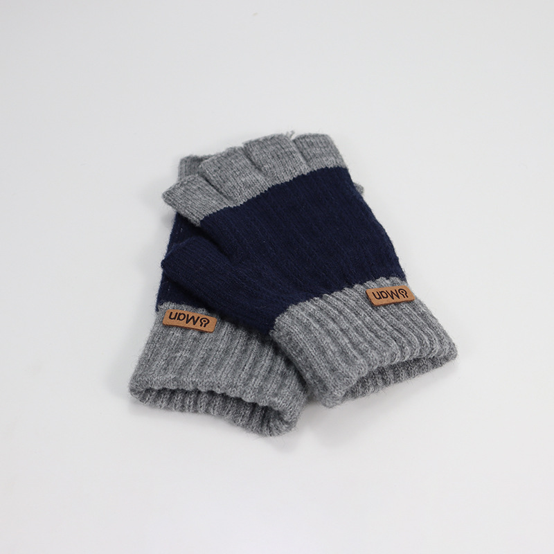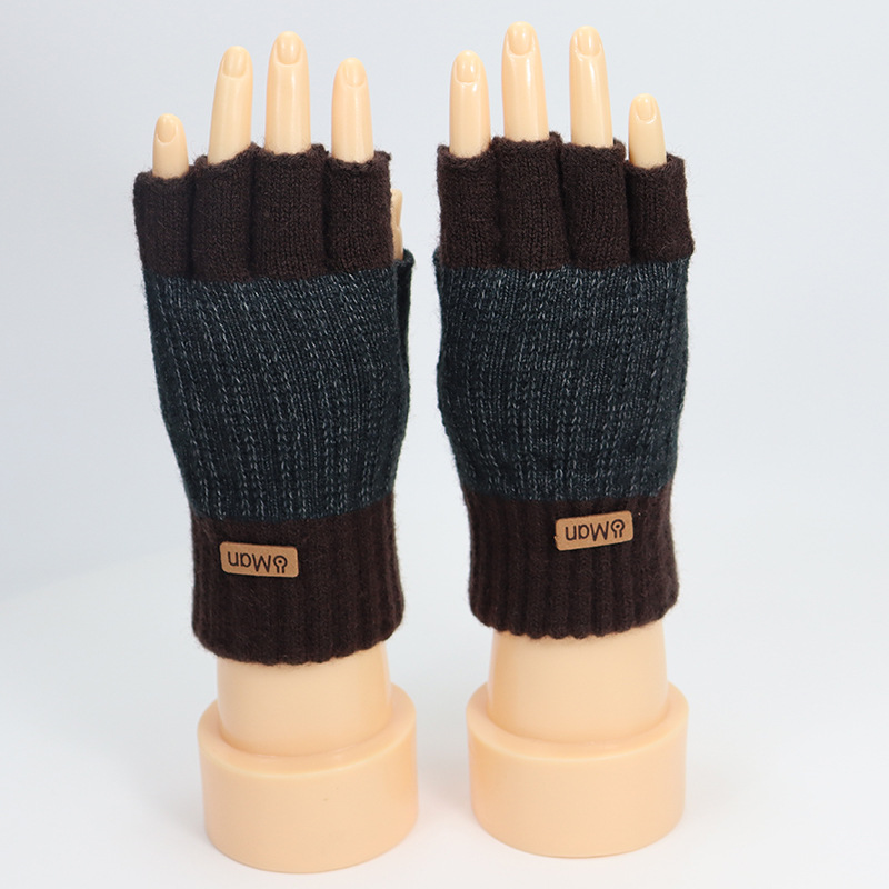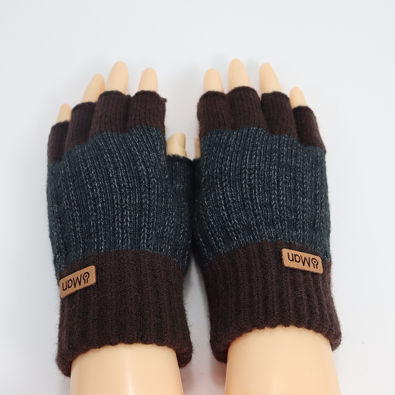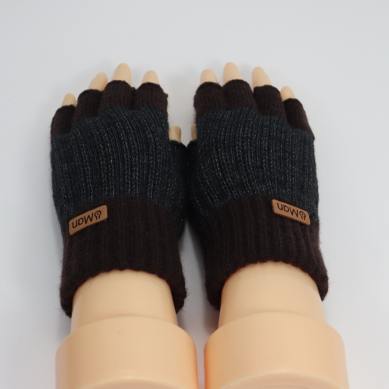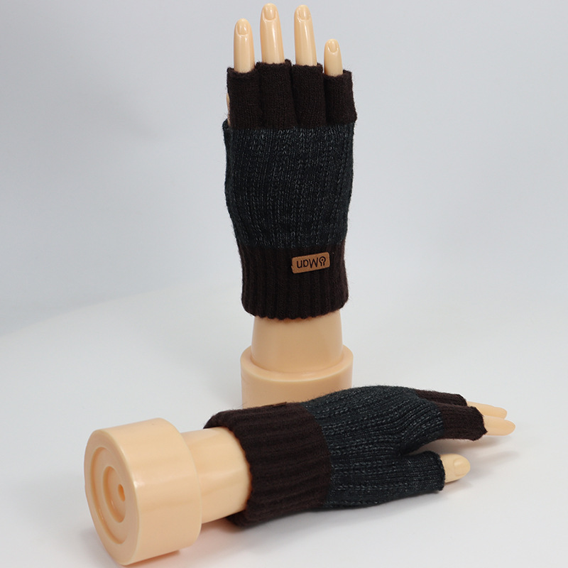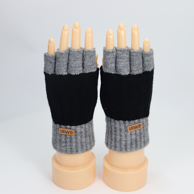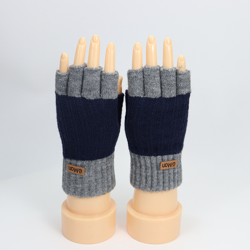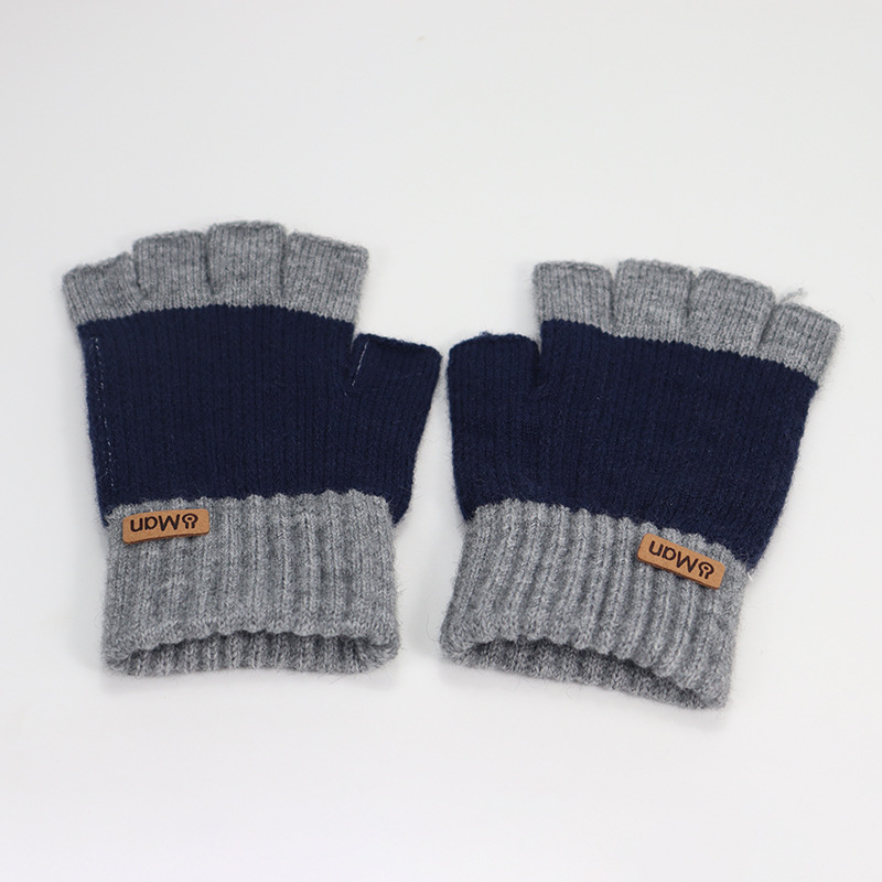 남성과 여성을위한 하프 핑거 장갑 겨울 두꺼운 따뜻한 양모 니트 엑스트라 핑거 학생들의 글쓰기 자카드 미끄럼 방지 장갑