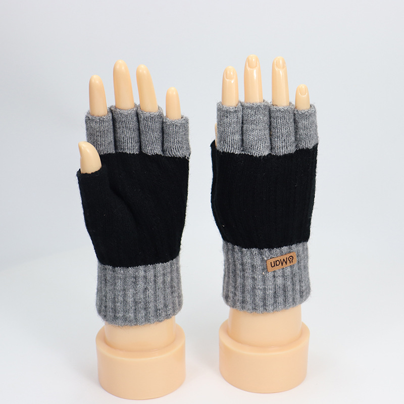 남성과 여성을위한 하프 핑거 장갑 겨울 두꺼운 따뜻한 양모 니트 엑스트라 핑거 학생들의 글쓰기 자카드 미끄럼 방지 장갑스토어 가기