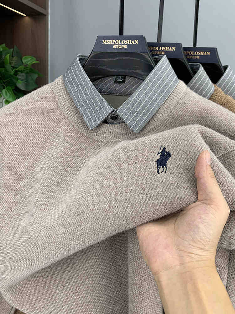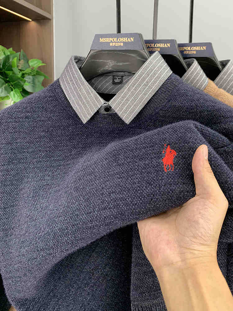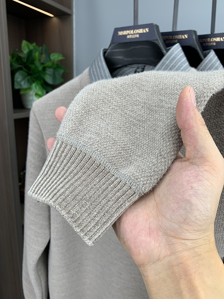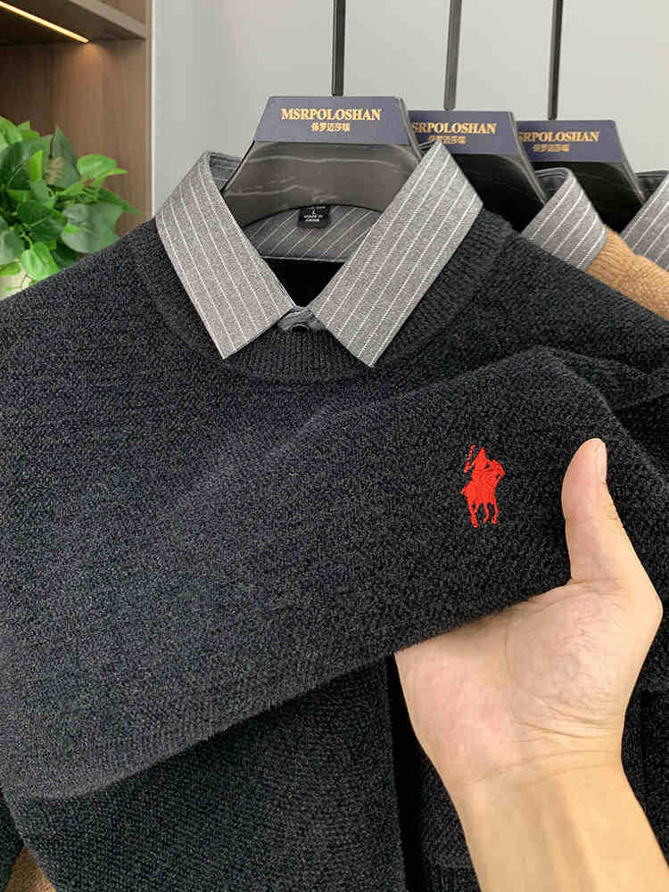 [원피스 벨벳] 기모 두꺼운 남성용 스웨터 새 셔츠 칼라 가짜 투피스 겨울 따뜻한 니트 베이스 셔츠스토어 가기