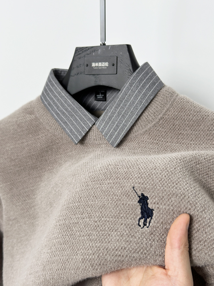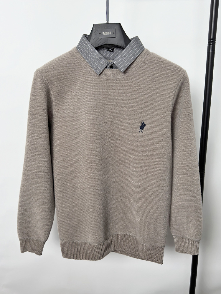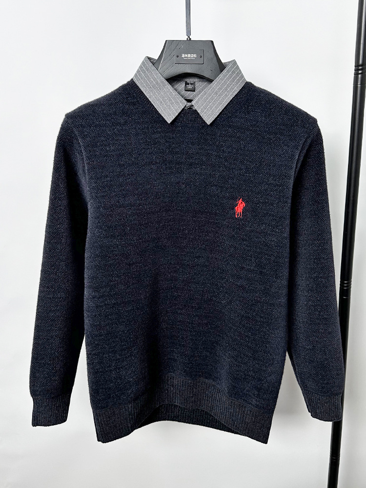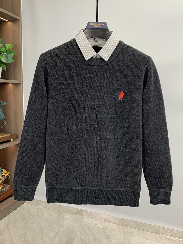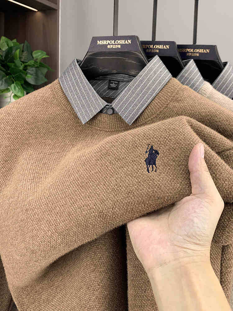 [원피스 벨벳] 기모 두꺼운 남성용 스웨터 새 셔츠 칼라 가짜 투피스 겨울 따뜻한 니트 베이스 셔츠스토어 가기