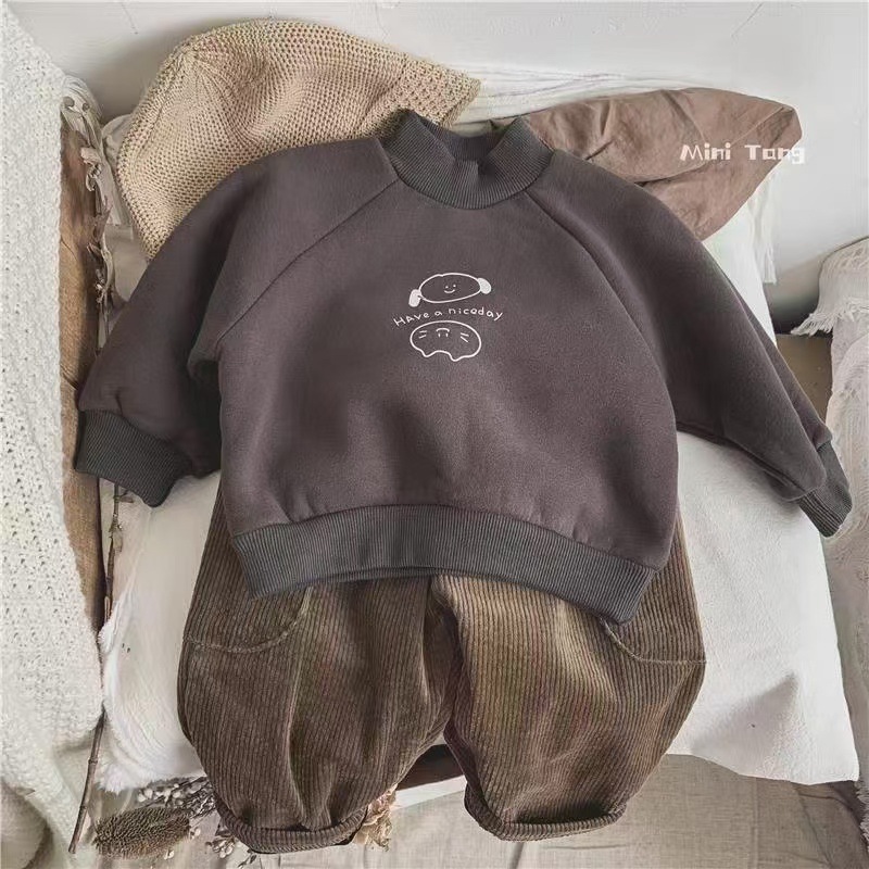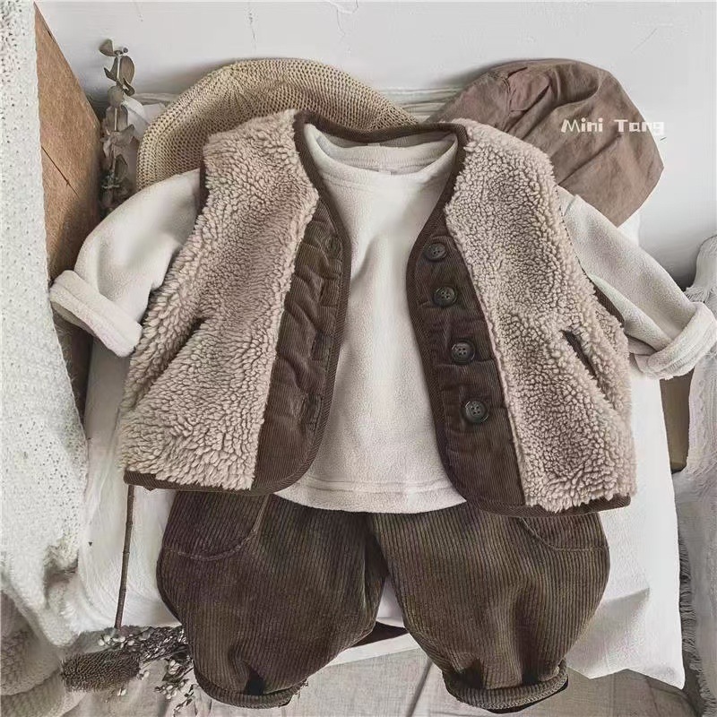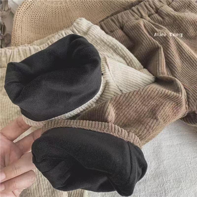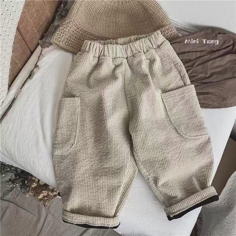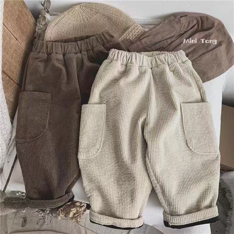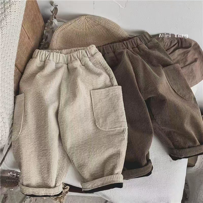 2024 새로운 모리 문학 스타일 ~ 어린이 포켓 코듀로이 기모 두꺼운 따뜻한 캐주얼 바지 남성 조수스토어 가기