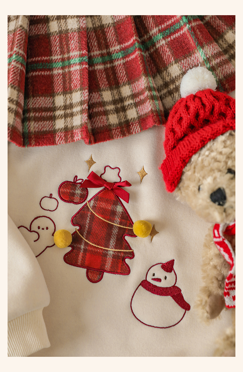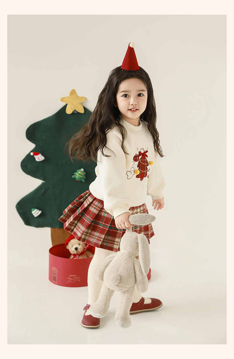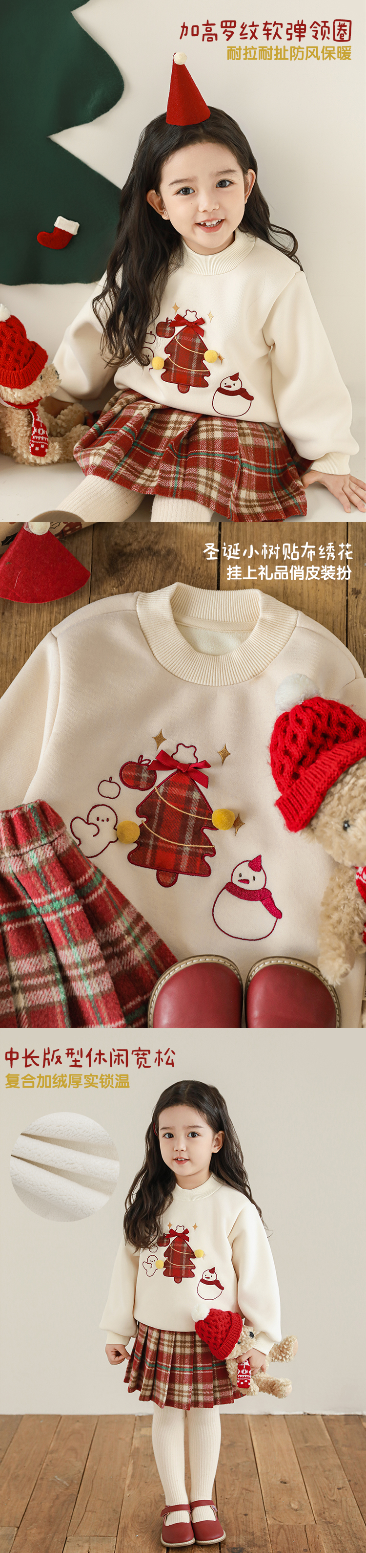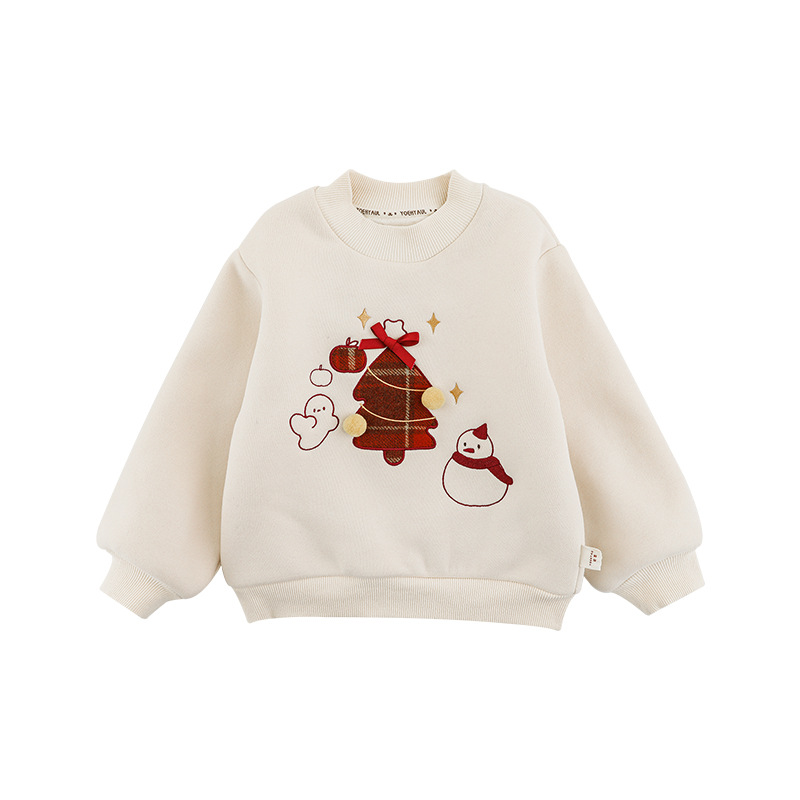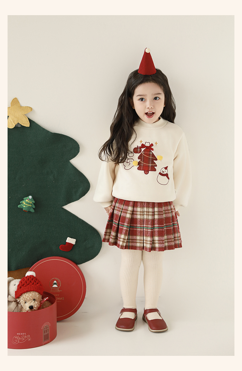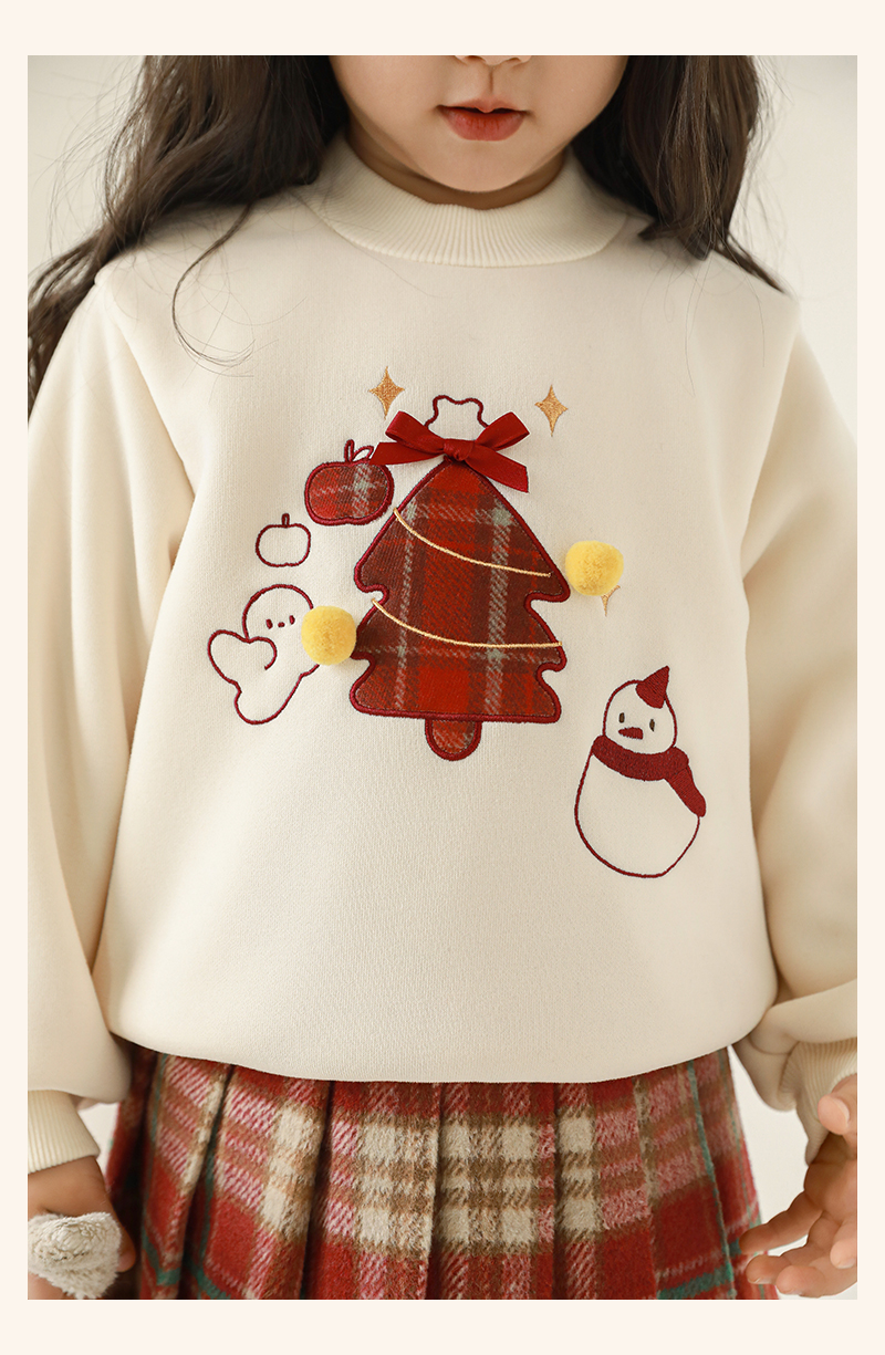 Wuri Boo Girl's 기모 두꺼운 크리스마스 트리 자수 스웨터 중간 길이 겨울 방풍 하프 하이 칼라 탑 트렌디스토어 가기