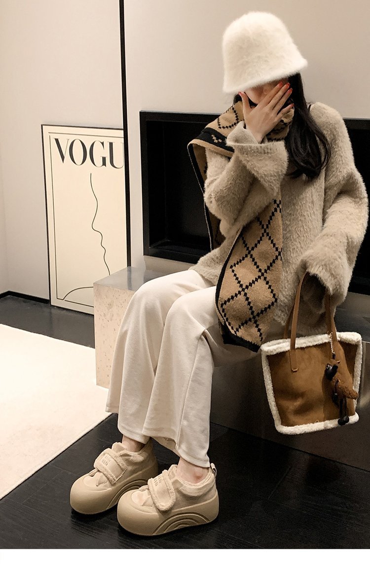 양모 신발 추악한 사랑스러운 빵 신발 큰 머리 캐주얼 신발 스케이트 신발 인형 머리 기모 면 신발 비스킷 신발 여성 신발스토어 가기