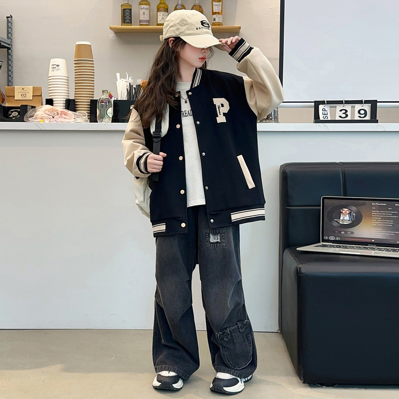 2024 새로운 소녀 봄과 가을 야구 세트 코트 웨스턴 스타일 가을 재킷 유행 최고 캐주얼 큰 아이들