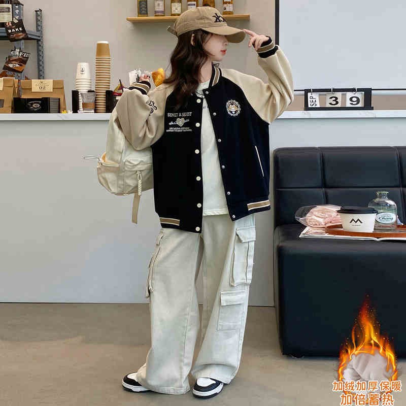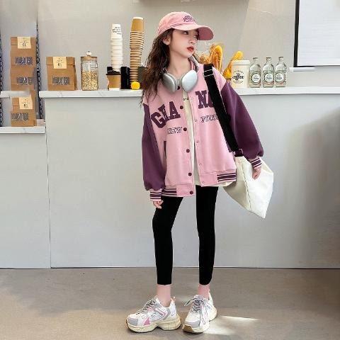 2024 새로운 소녀 봄과 가을 야구 세트 코트 웨스턴 스타일 가을 재킷 유행 최고 캐주얼 큰 아이들스토어 가기
