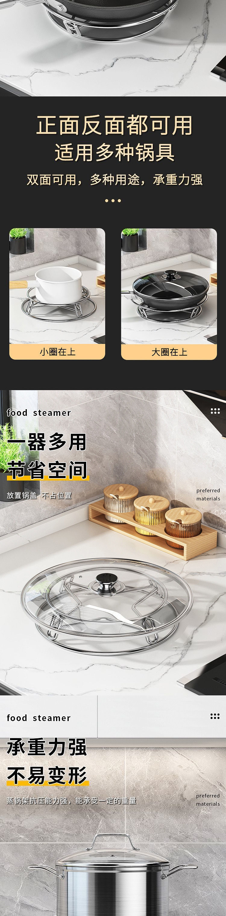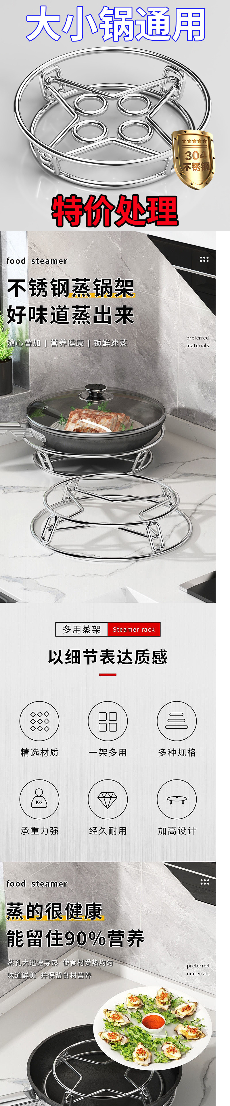 특수 두꺼운 304 스테인레스 스틸 포트 랙 식품 등급 스팀 랙 유니버설 유니버설 스토리지 랙 양면 스팀 랙 스토리지 포트