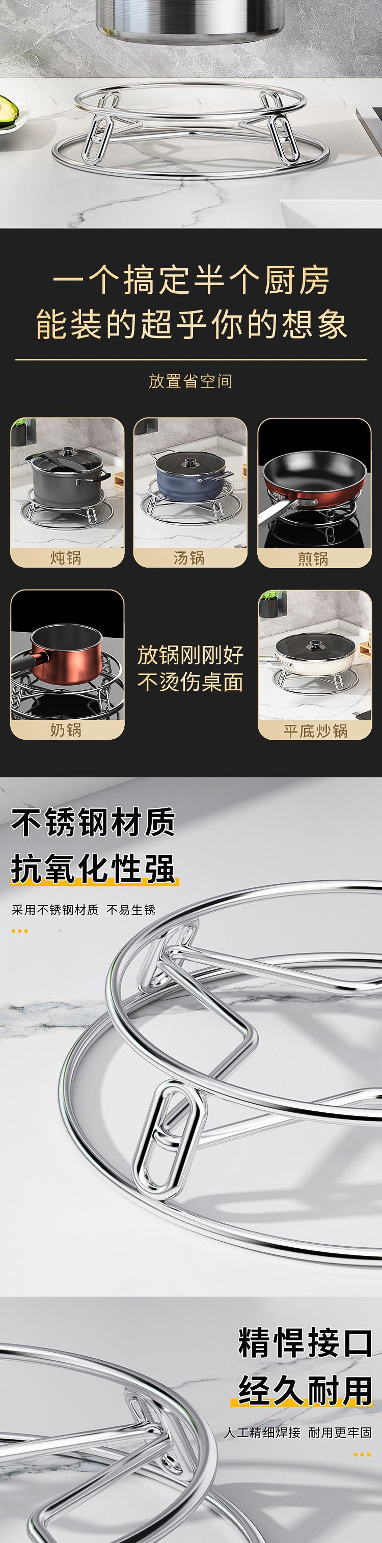 • 매우 두꺼운 강화 * 리버시블 및 리버시블 [1 팩] 304 고품질 스테인레스 스틸 - 신규 및 기존 고객에게 보답하는 냄비 홀더 [피로 손실 100k 개 +]