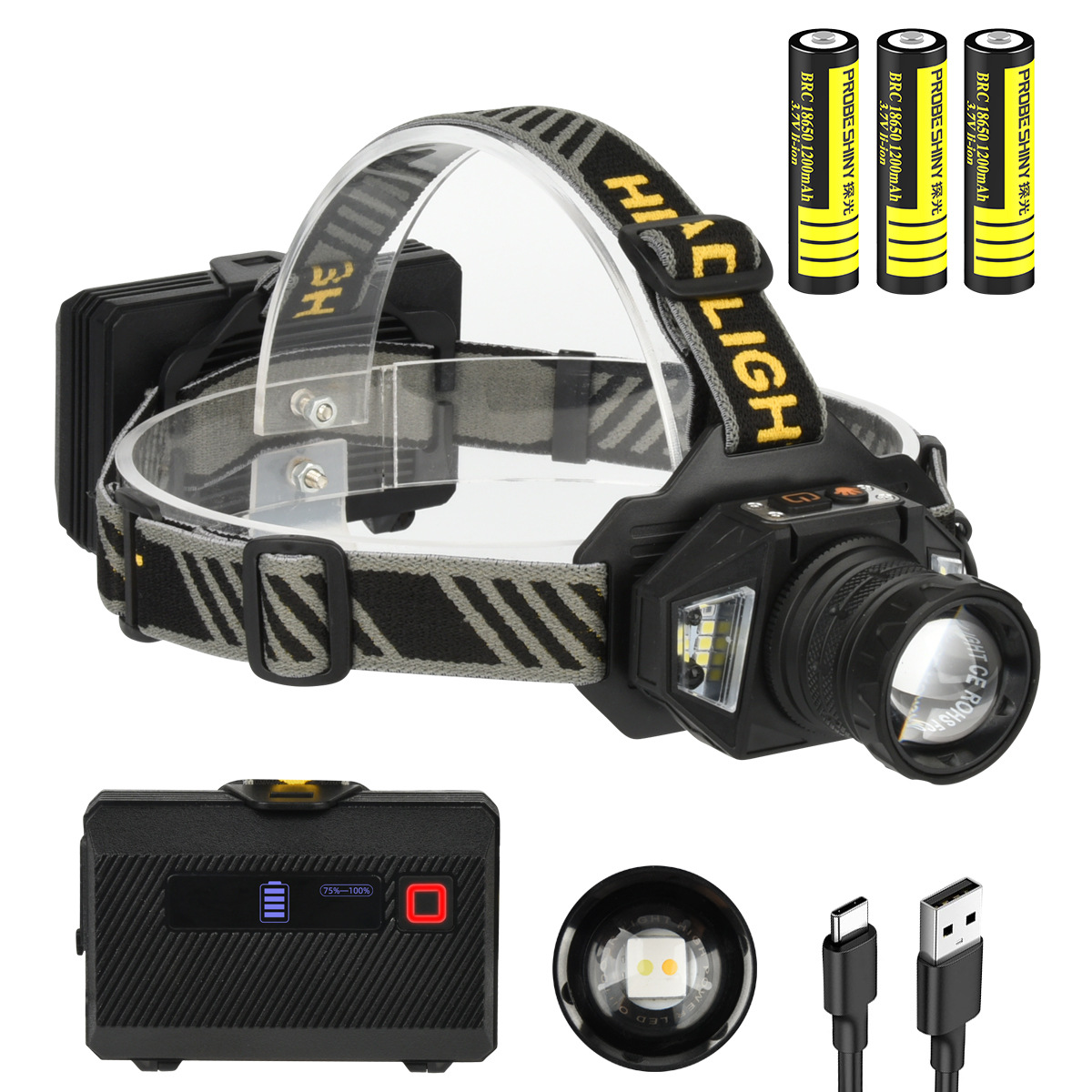 새로운 긴 내구성 강한 빛 유도 헤드 라이트 노란색과 흰색 이중 광원 탐조등 방수 장거리 야간 낚시 조명