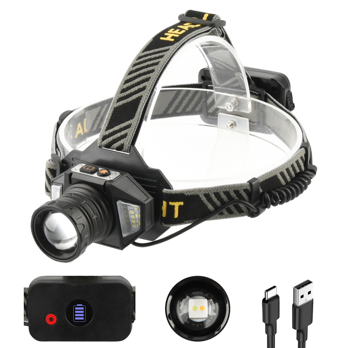 새로운 긴 내구성 강한 빛 유도 헤드 라이트 노란색과 흰색 이중 광원 탐조등 방수 장거리 야간 낚시 조명스토어 가기