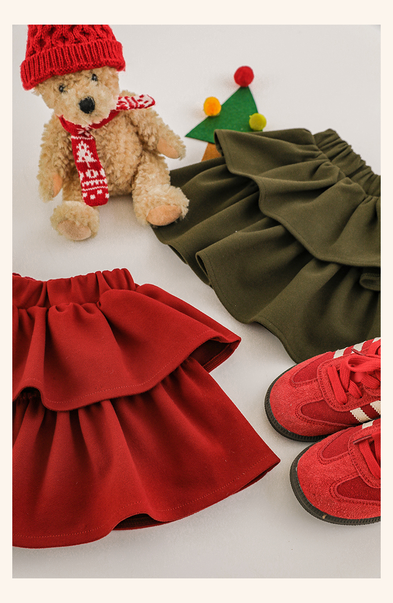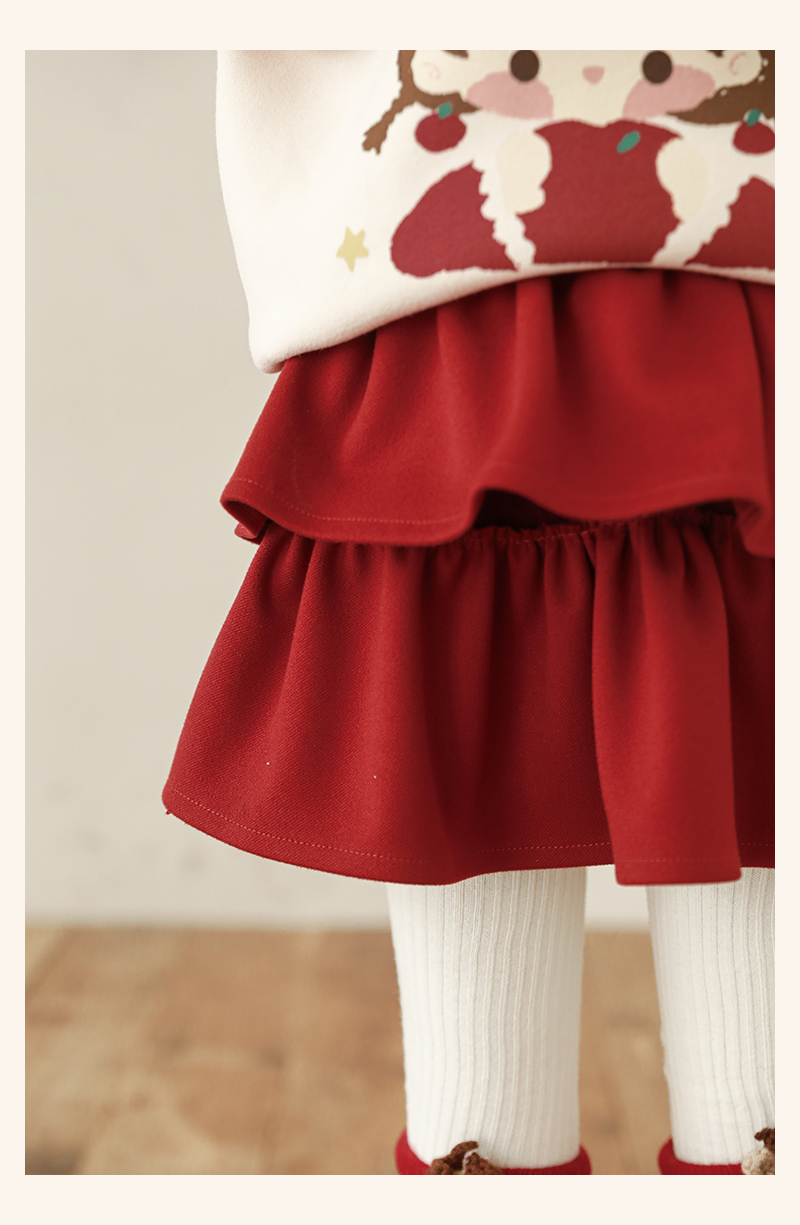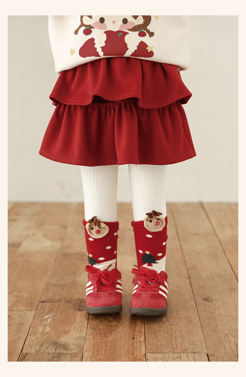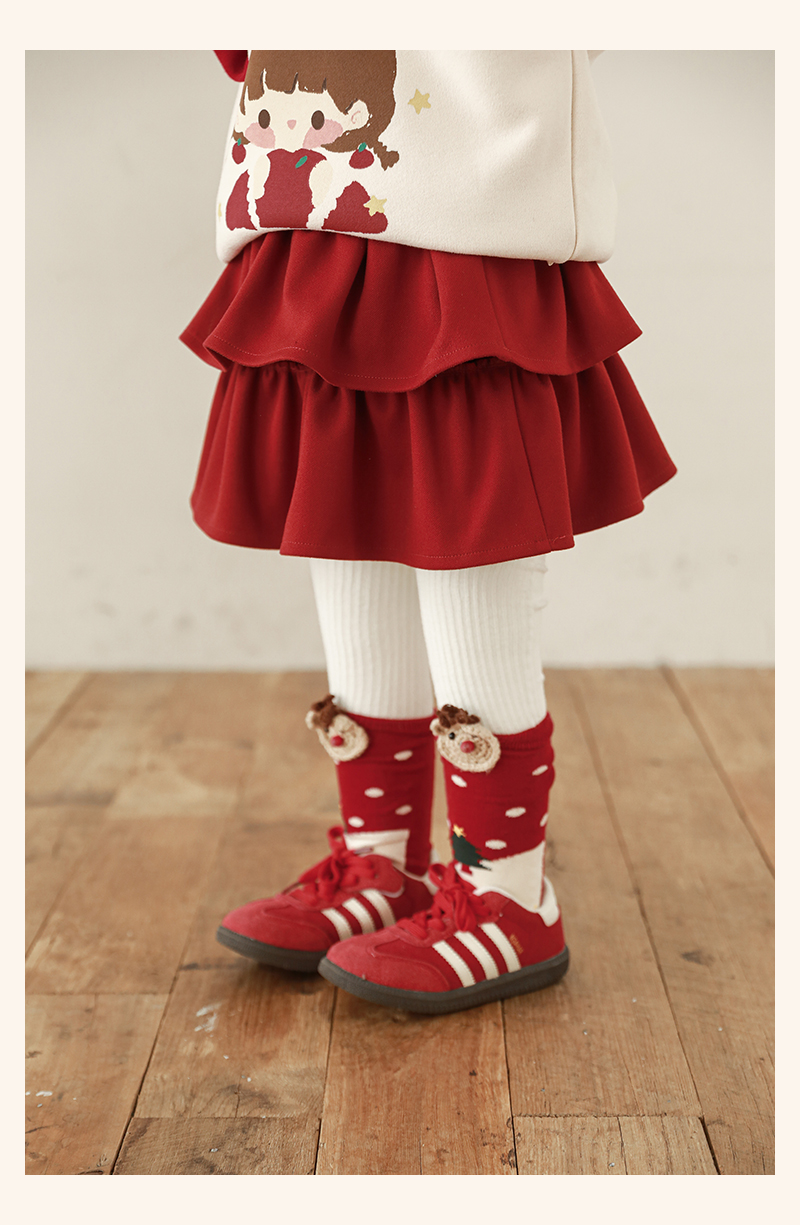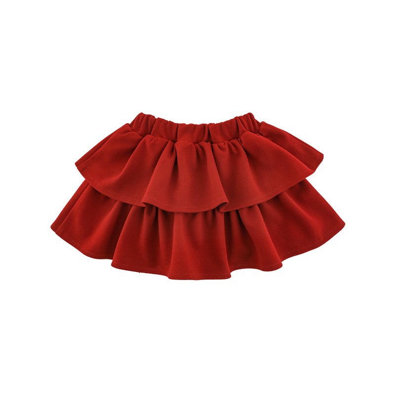 Wurib 소녀의 크리스마스 기모 두꺼운 더블 레이어 케이크 스커트 겨울 따뜻한 차가운 저항하는 빨간 치마