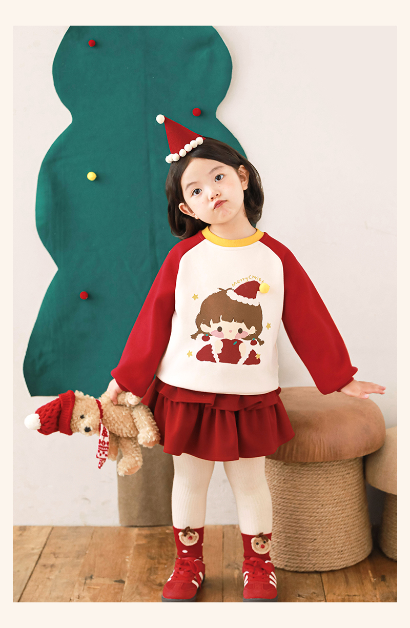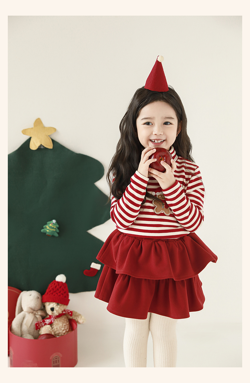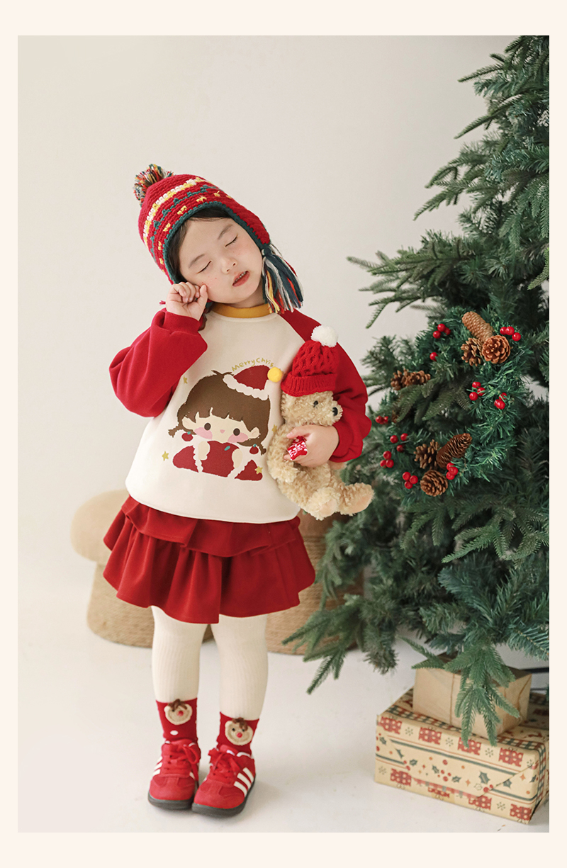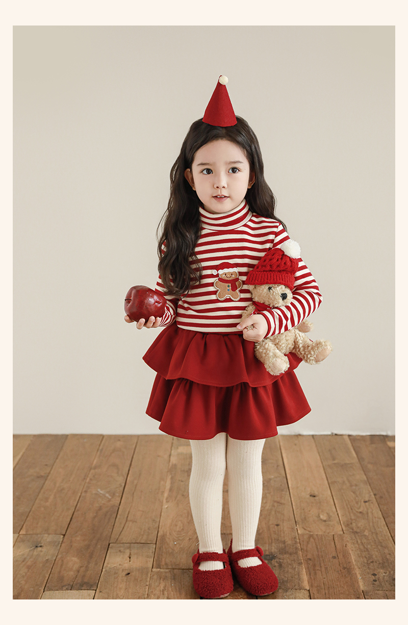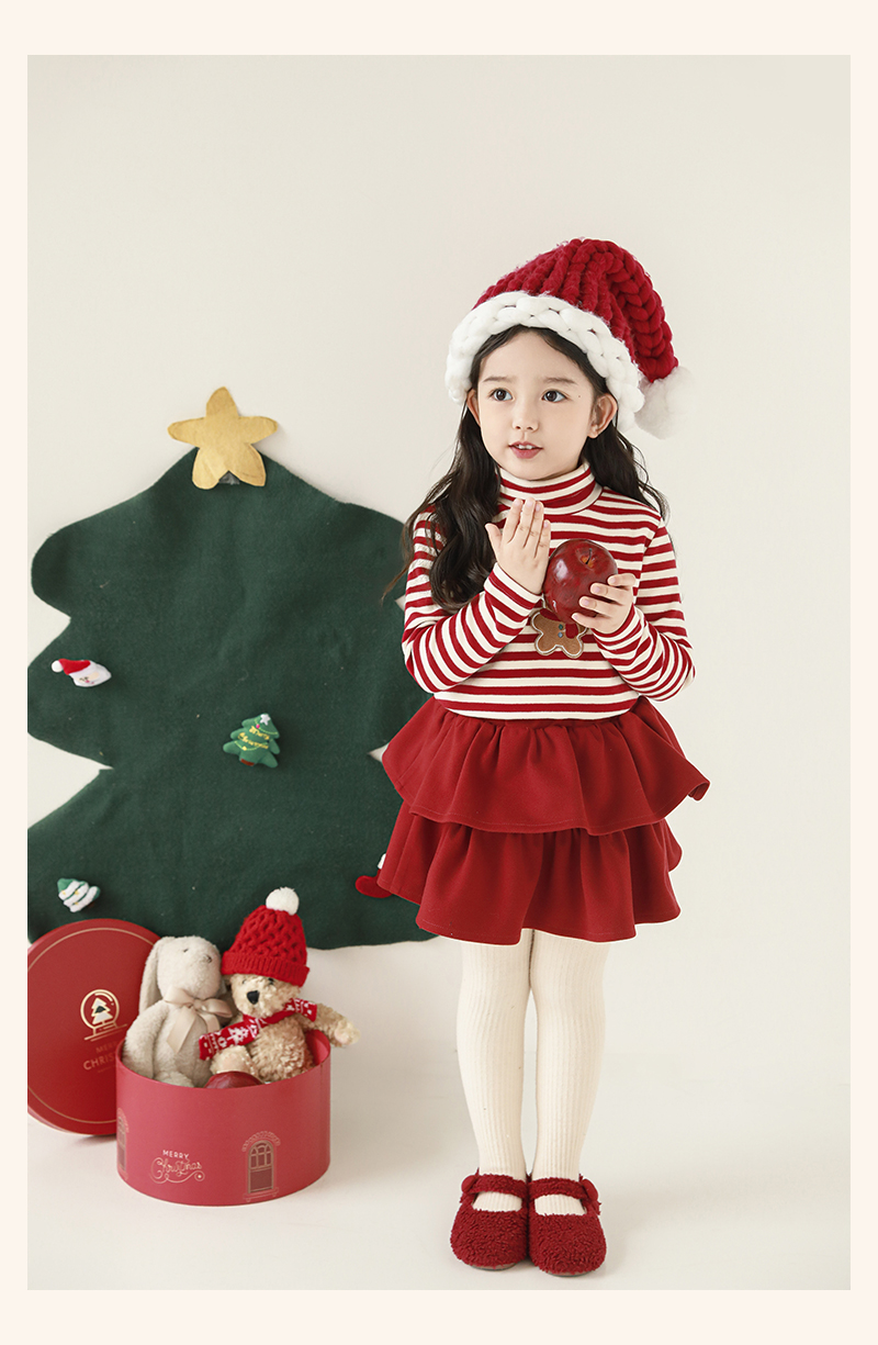 Wurib 소녀의 크리스마스 기모 두꺼운 더블 레이어 케이크 스커트 겨울 따뜻한 차가운 저항하는 빨간 치마