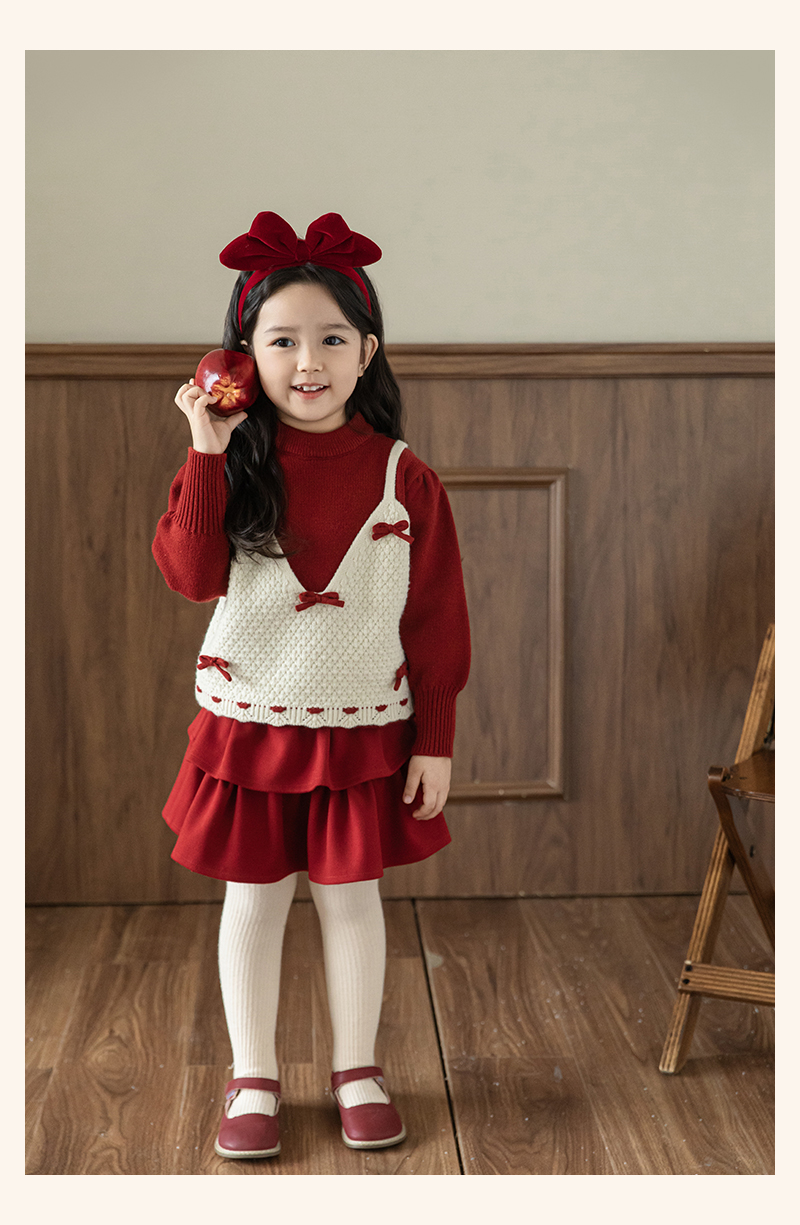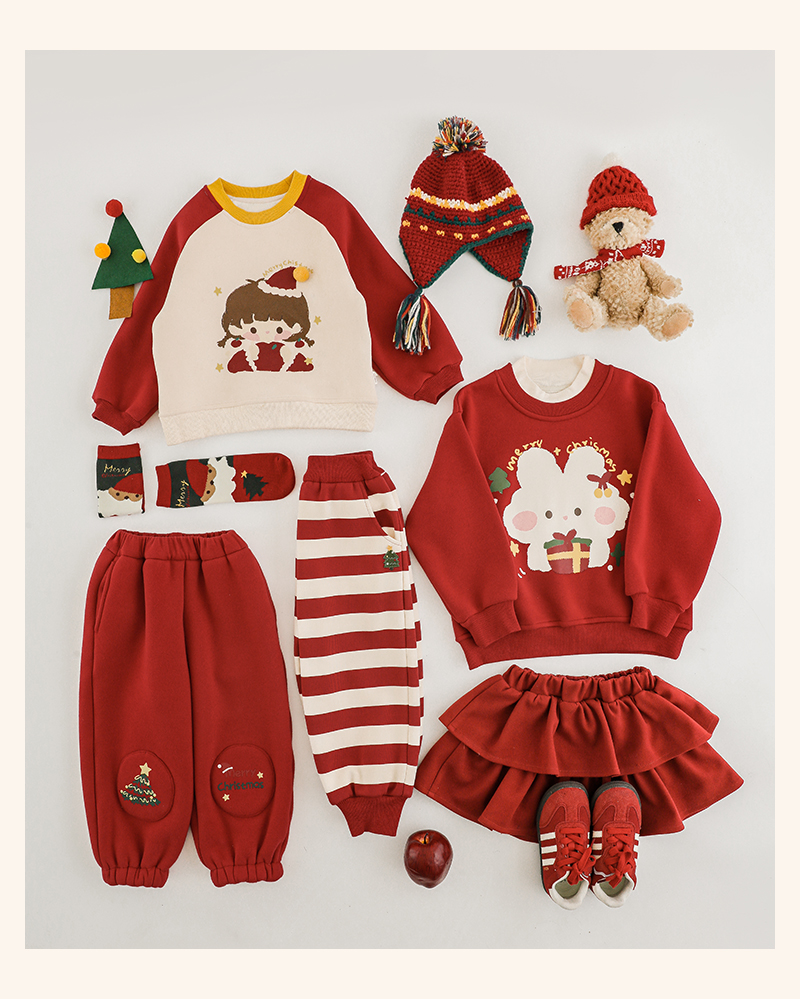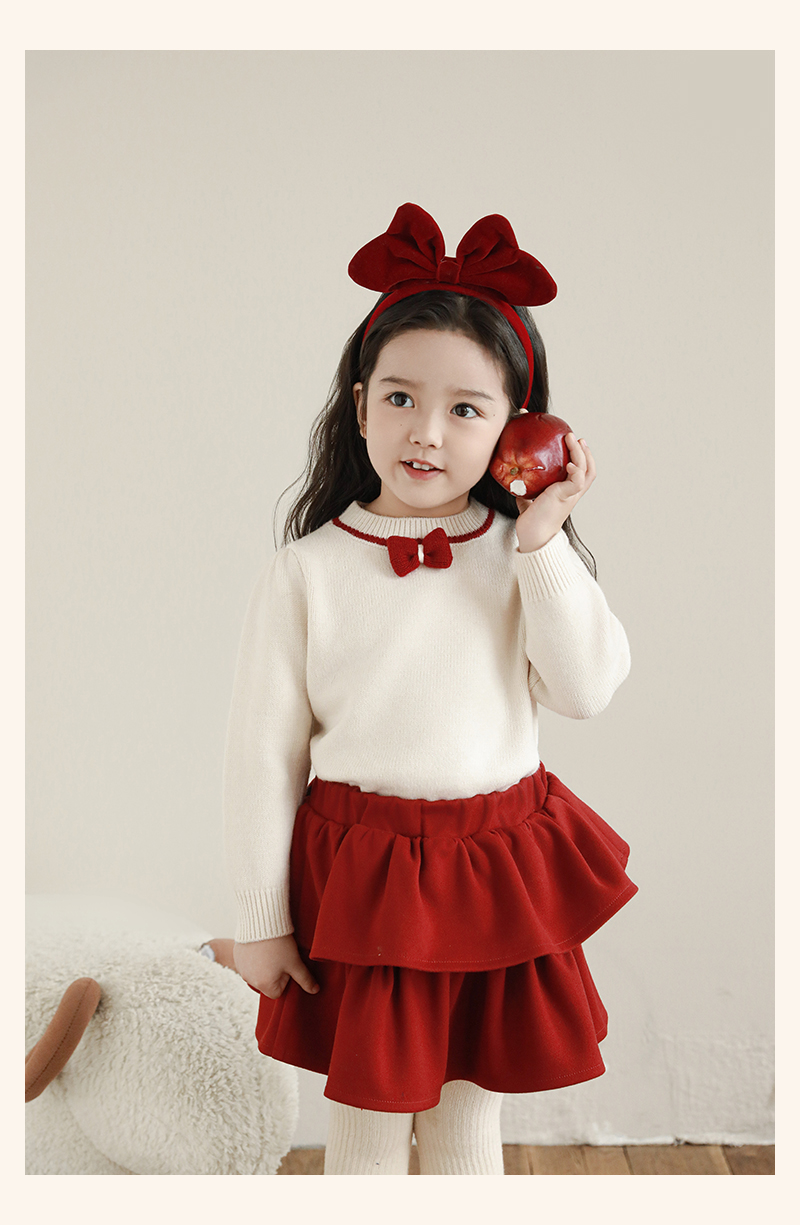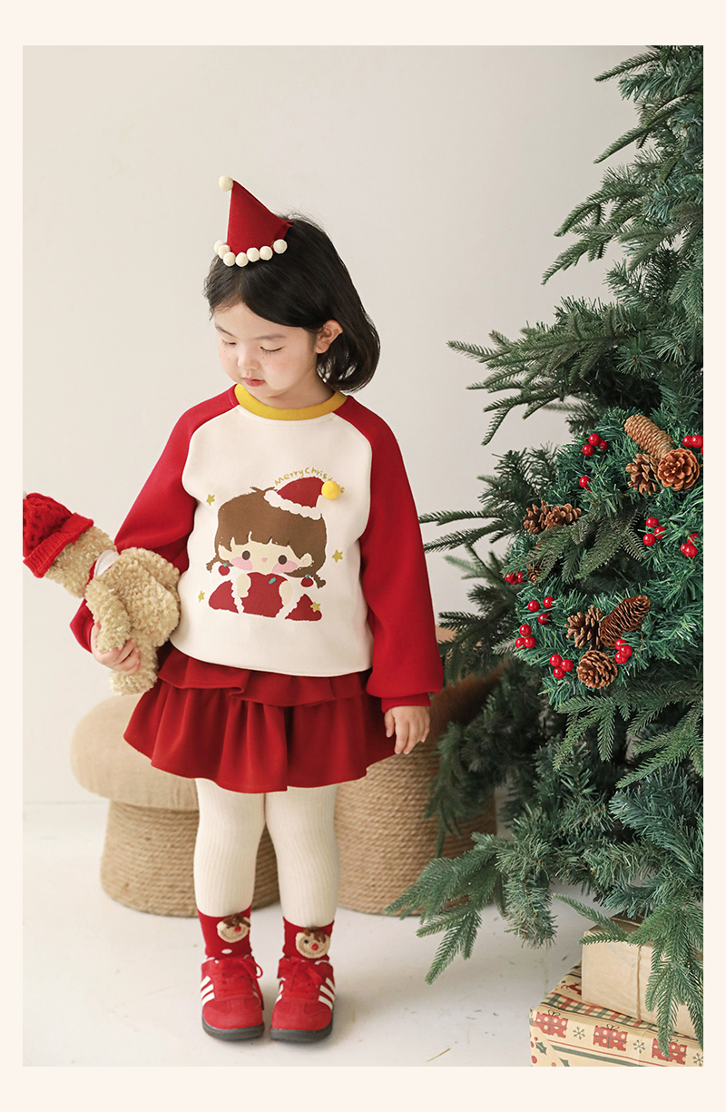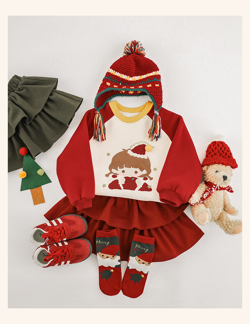 Wurib 소녀의 크리스마스 기모 두꺼운 더블 레이어 케이크 스커트 겨울 따뜻한 차가운 저항하는 빨간 치마