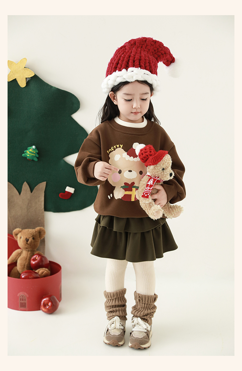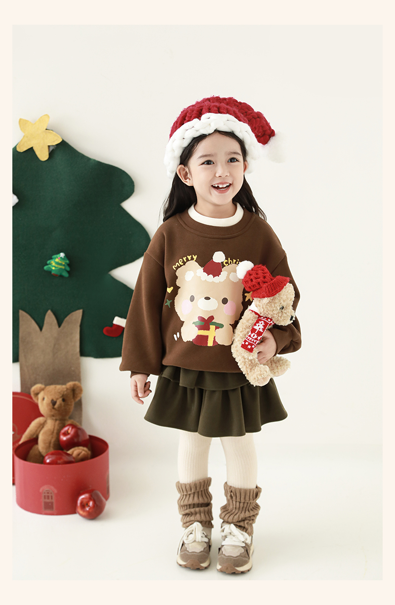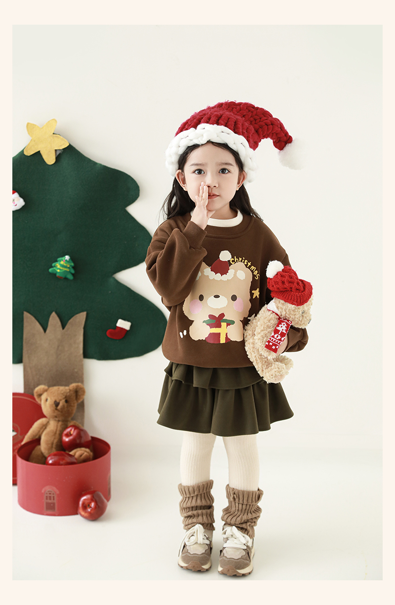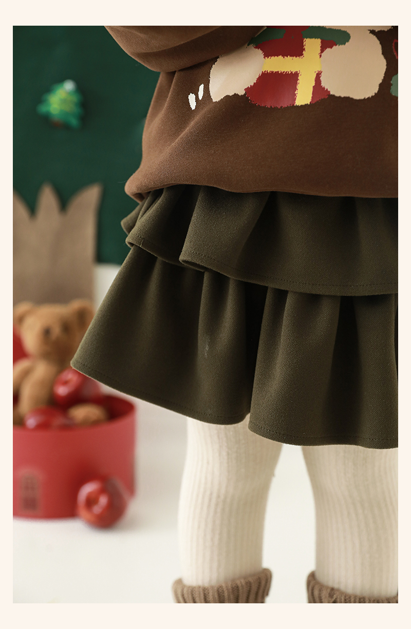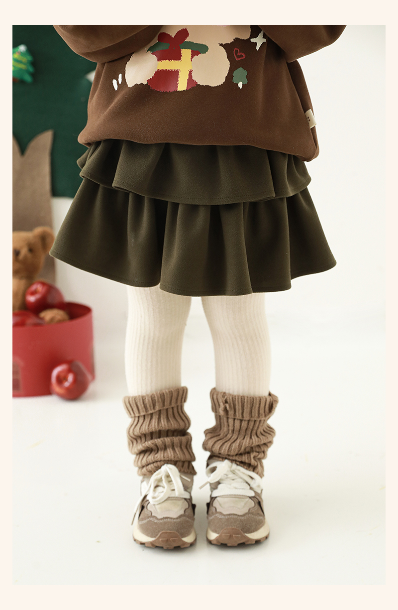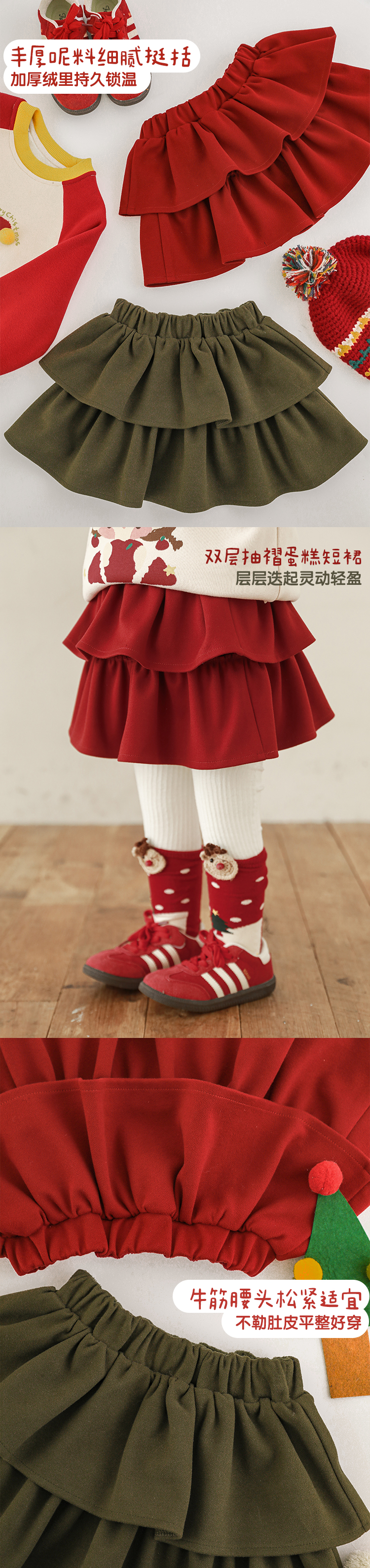Wurib 소녀의 크리스마스 기모 두꺼운 더블 레이어 케이크 스커트 겨울 따뜻한 차가운 저항하는 빨간 치마스토어 가기