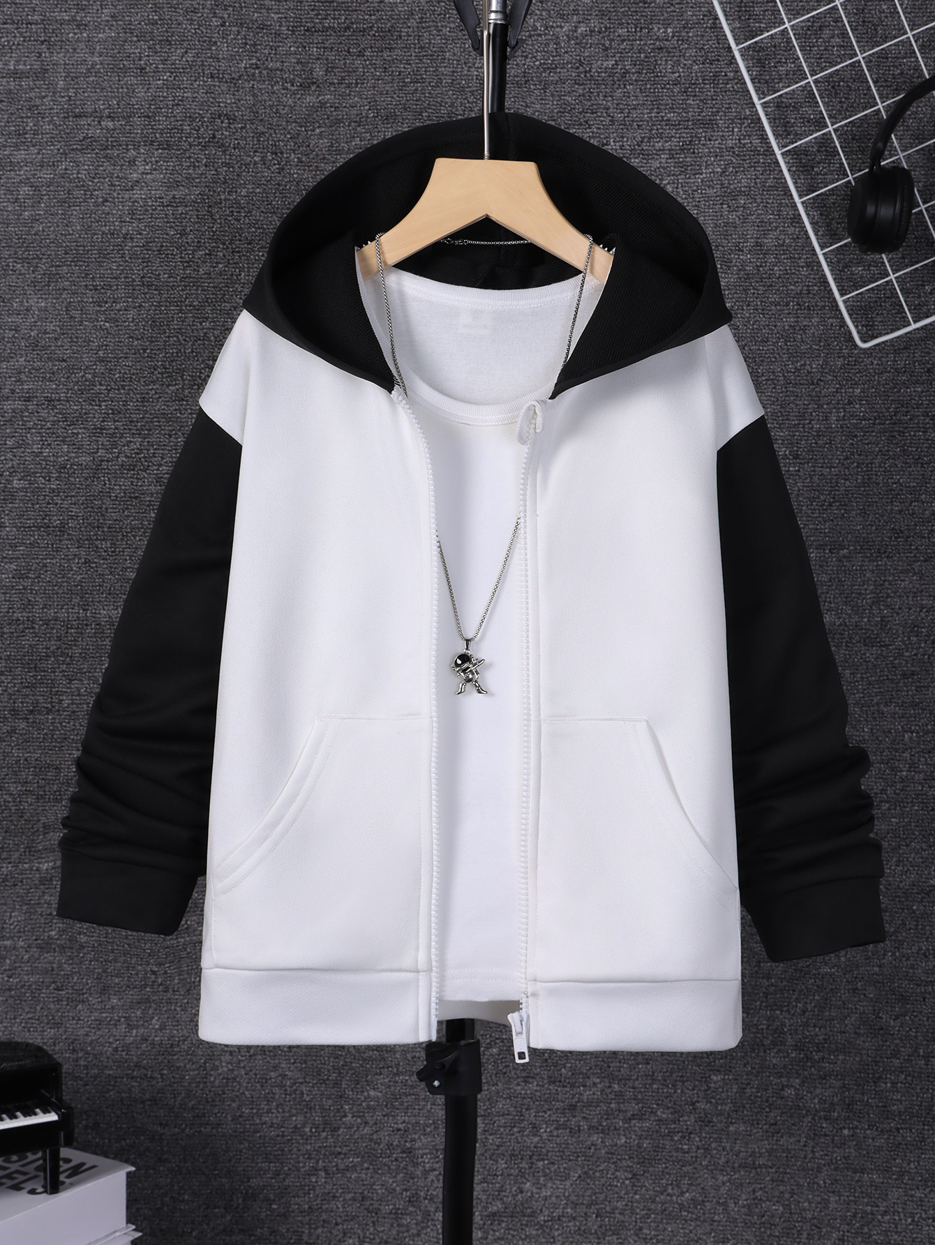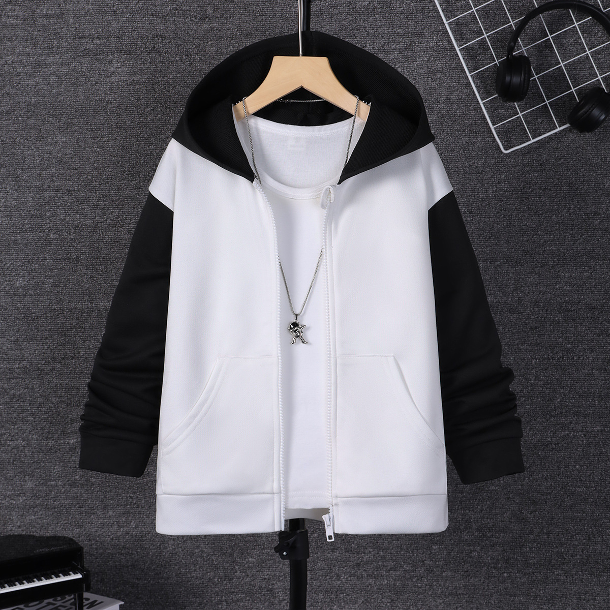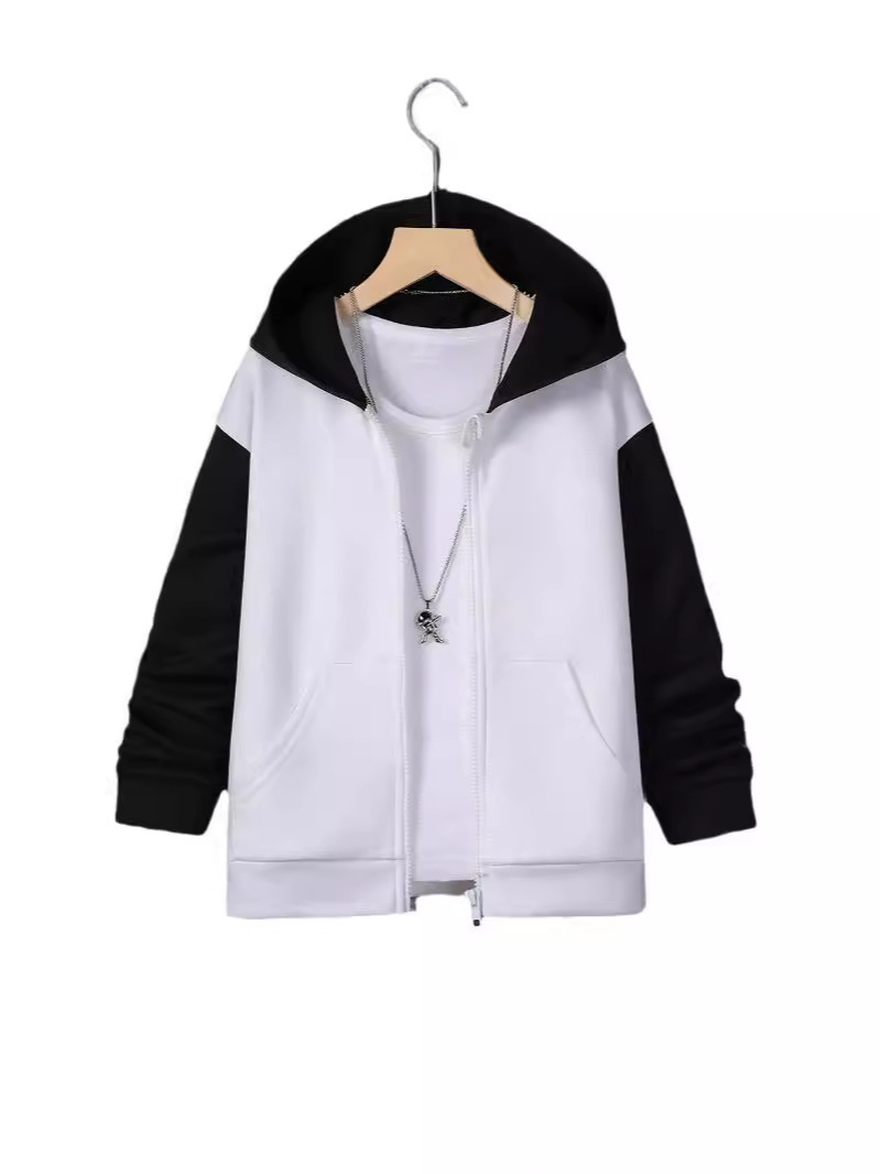 돼지 꽃 의류 소년 가을과 겨울 패션 긴 소매 컬러 매칭 캐주얼 중 큰 어린이 8-14 세 후드 코트스토어 가기