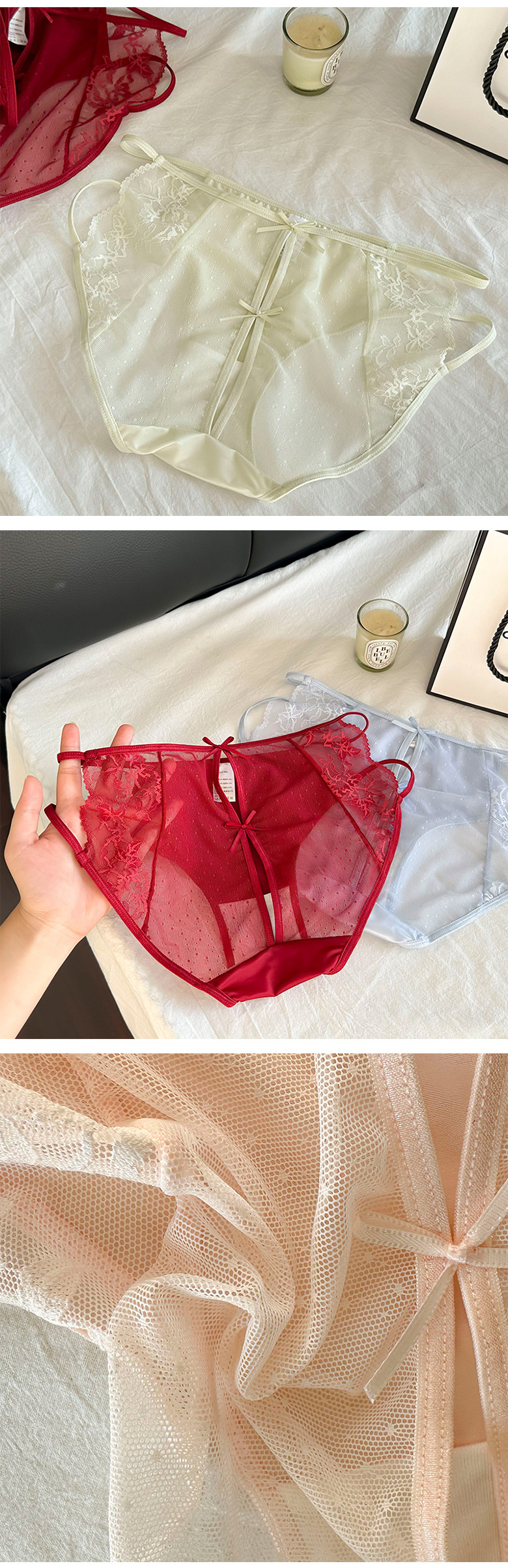 풀린 고양이 속옷 여성 아메리칸 스타일 레이스 섹시 메쉬 할로우 통기성 활 낮은 허리 소녀 순수한 욕망 브리프