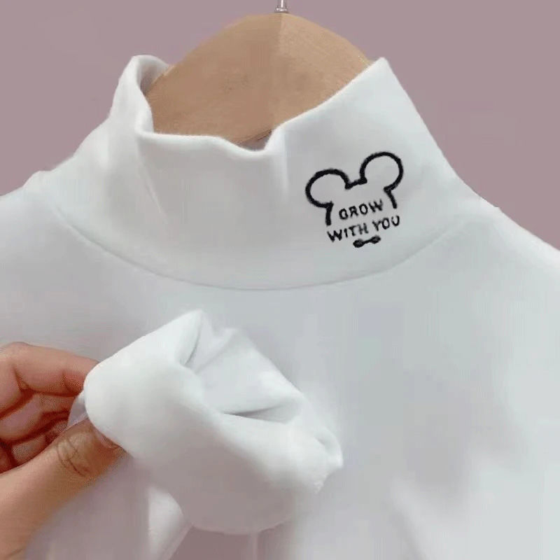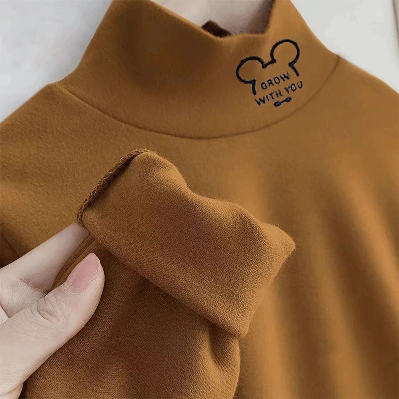 남성과 여성의 어린이 양털베이스 셔츠 가을과 겨울 인쇄 만화 학생 중 큰 어린이 겨울 난방 따뜻한 반 높이 칼라