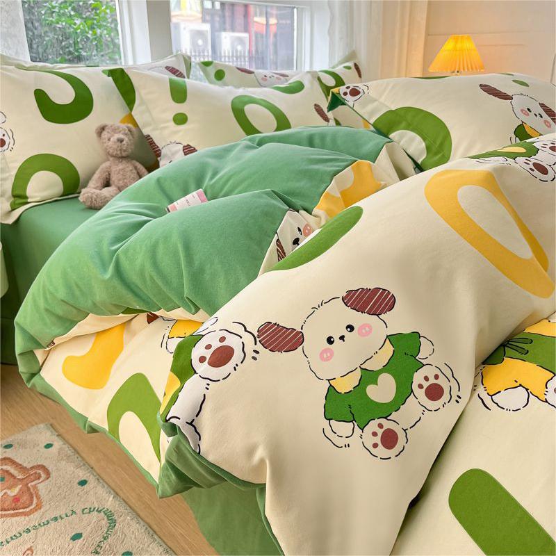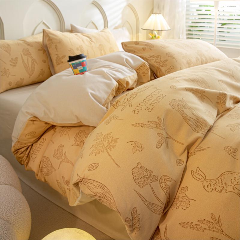두꺼운 4 피스 세트 새로운 오리지널 코튼 샌딩 가을과 겨울 침구 가정용 신선한 침대 시트 침대 3 피스 세트