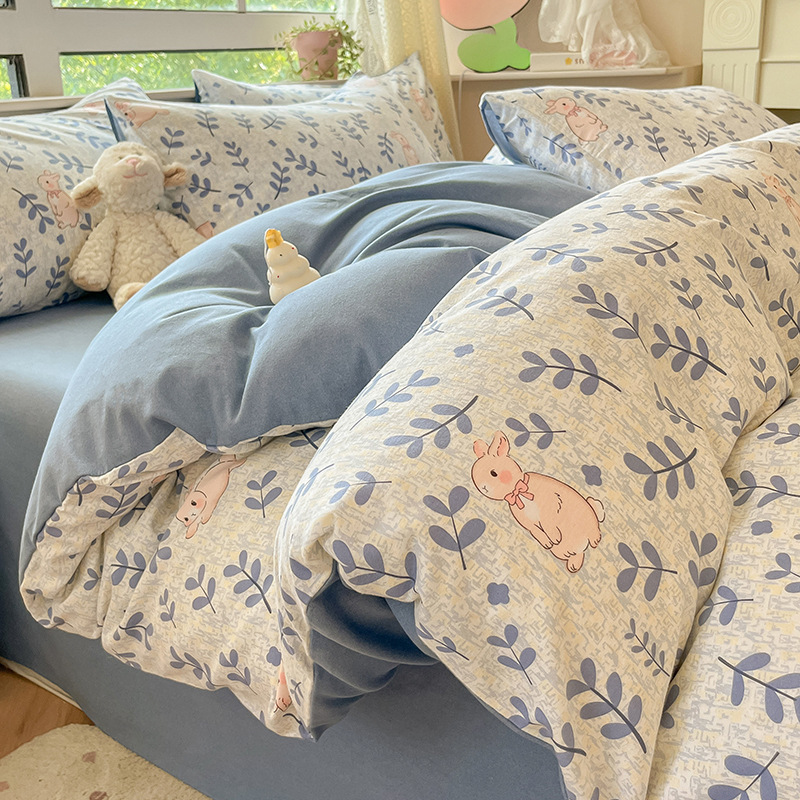 두꺼운 4 피스 세트 새로운 오리지널 코튼 샌딩 가을과 겨울 침구 가정용 신선한 침대 시트 침대 3 피스 세트스토어 가기