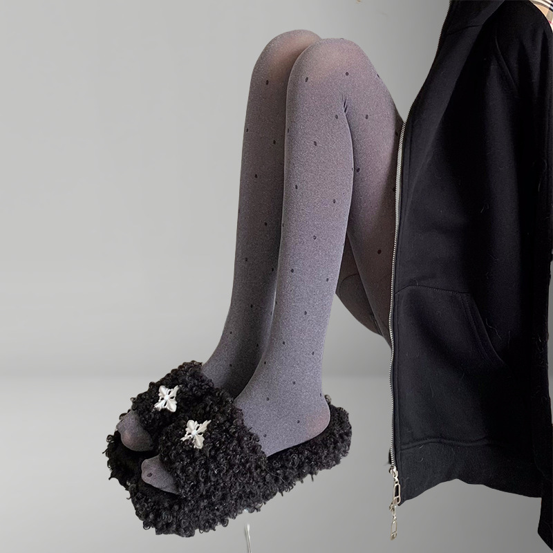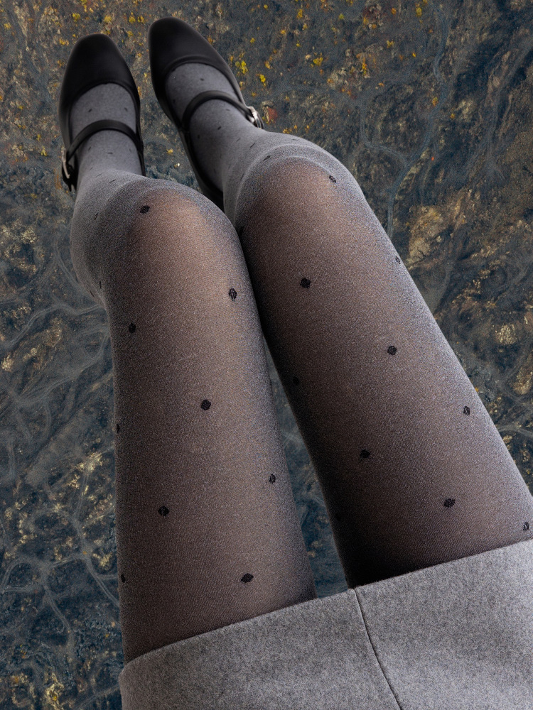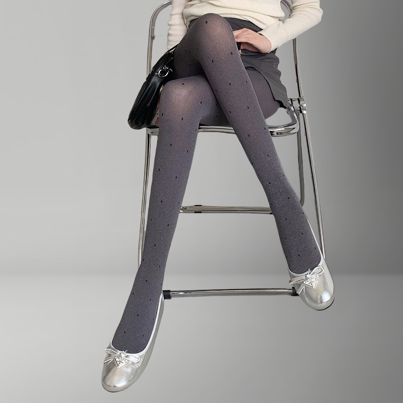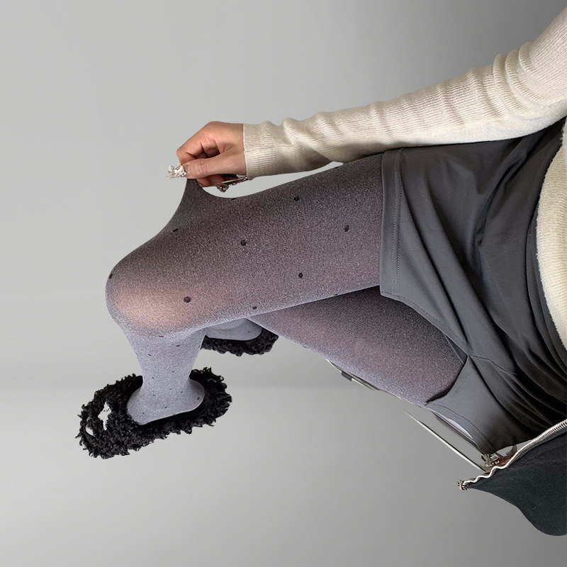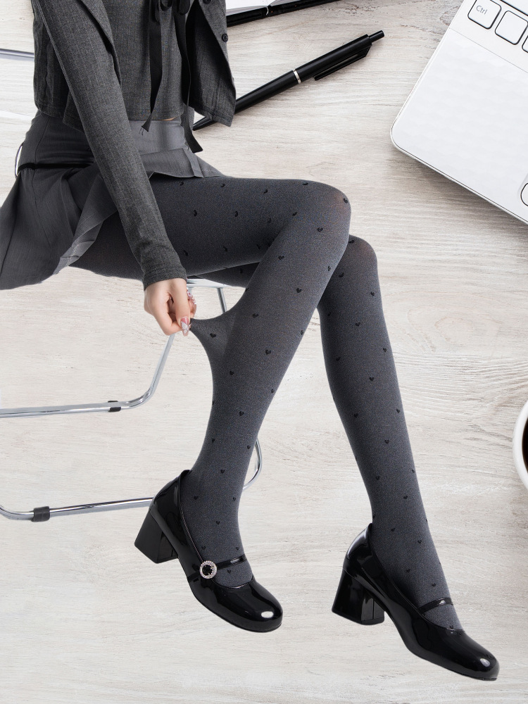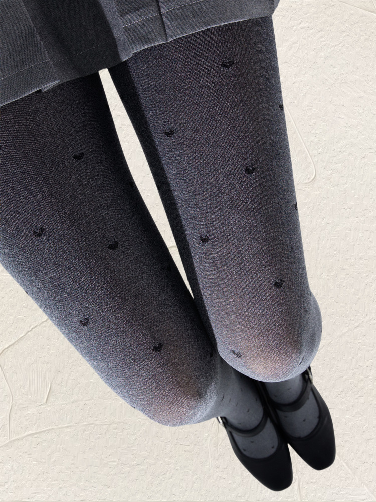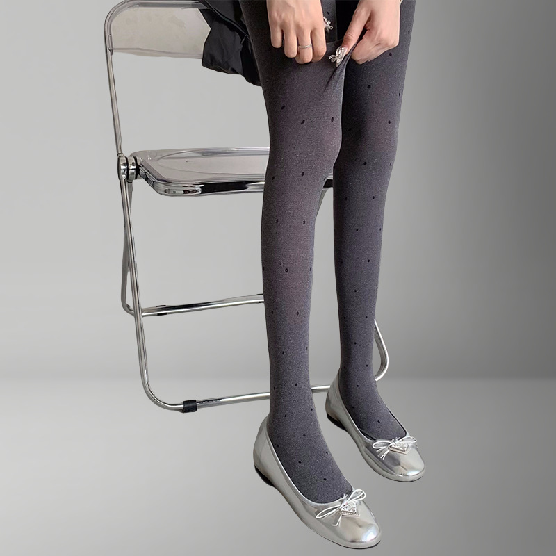 그레이 폴카 도트 팬티 스타킹 여성용 그레이 스타일 착용 다리 슬리밍 레트로 한국 스타일 폴카 도트 러브 자카드 레깅스스토어 가기