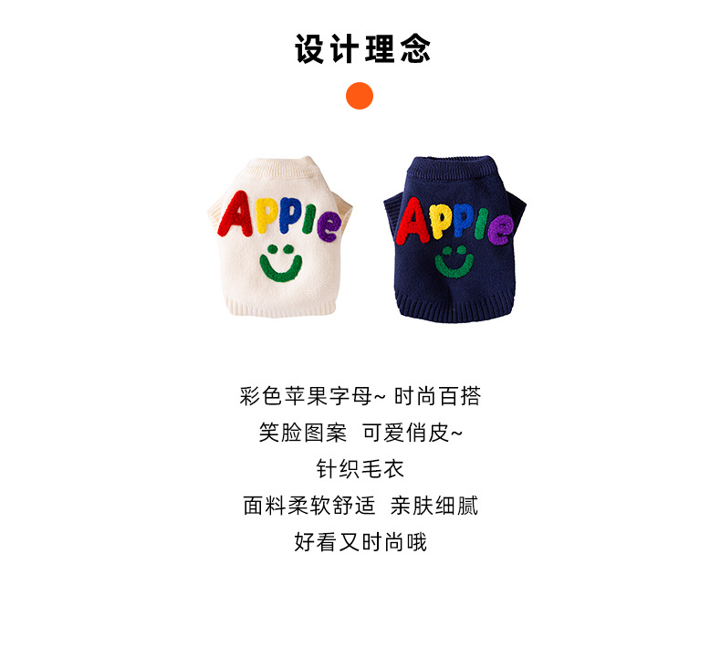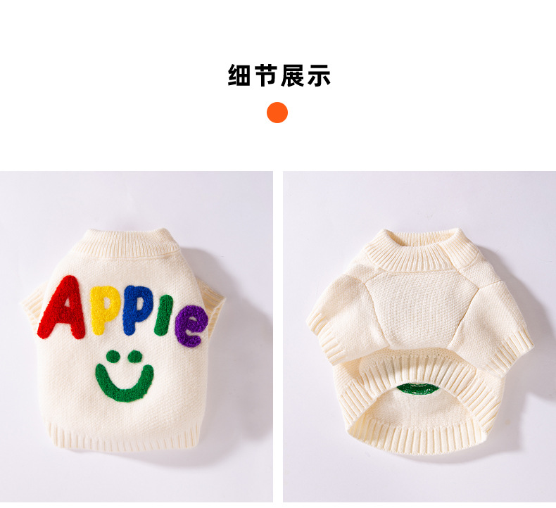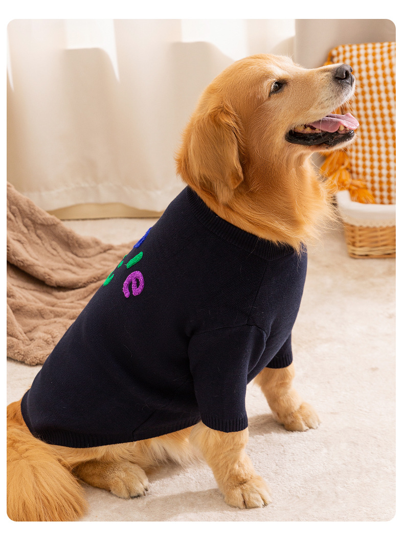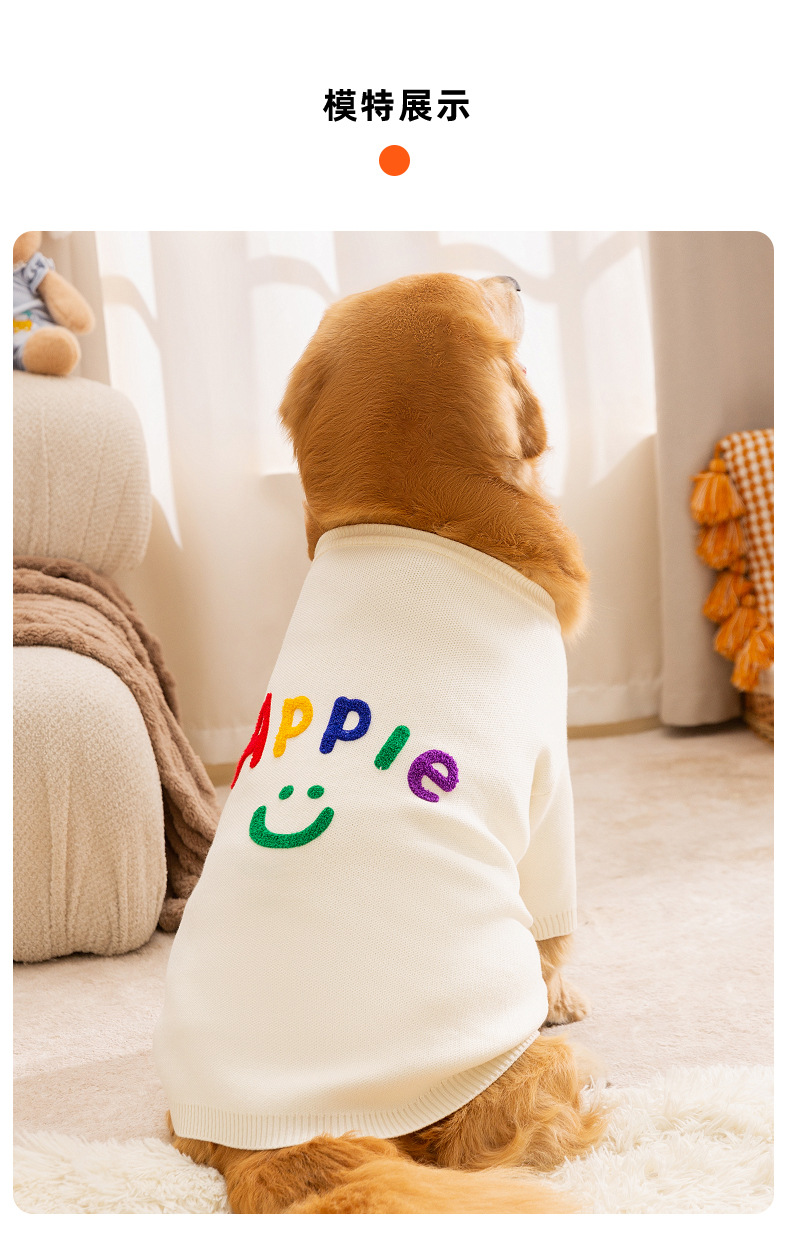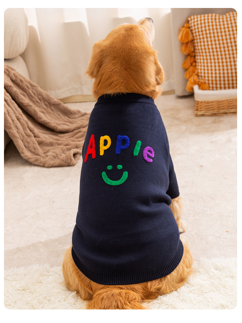가을과 겨울 개 애플 웃는 컬러 편지 황금 머리 큰 개 스웨터 미디어와 큰 개 니트 애완 동물 옷