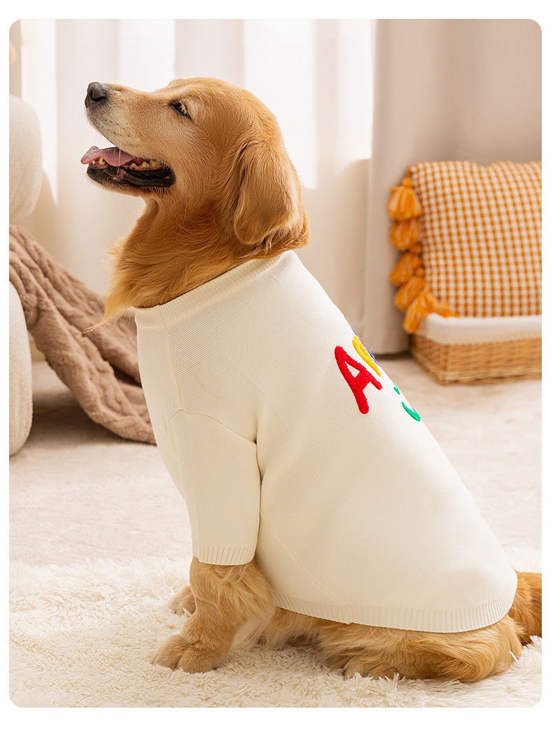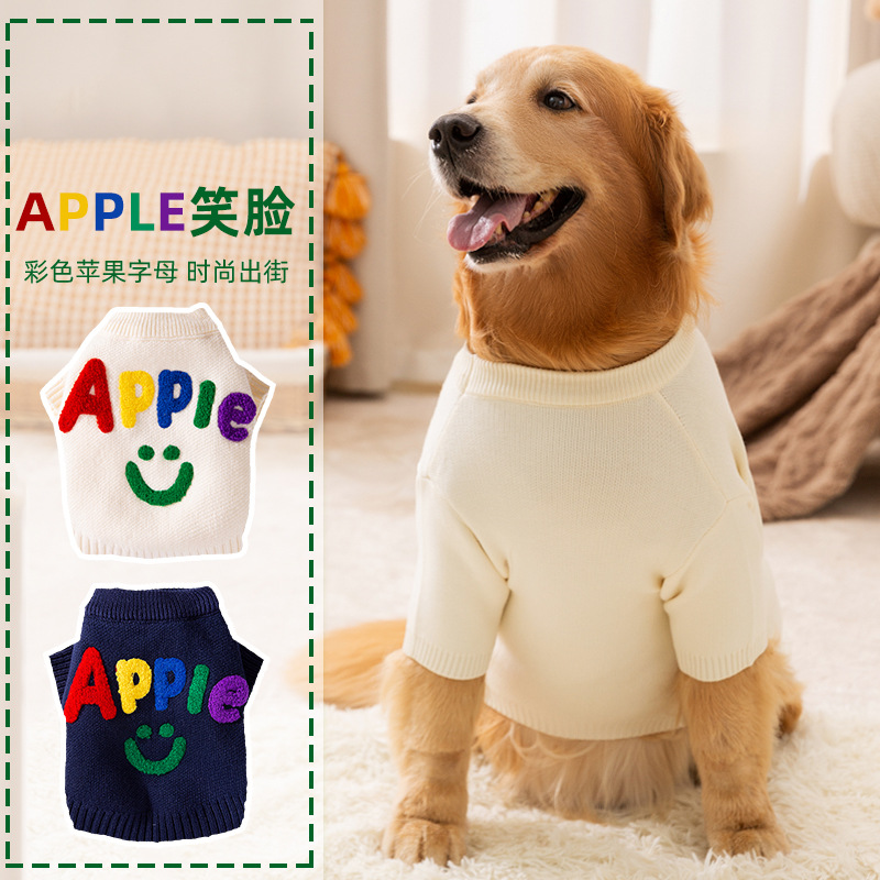 가을과 겨울 개 애플 웃는 컬러 편지 황금 머리 큰 개 스웨터 미디어와 큰 개 니트 애완 동물 옷스토어 가기