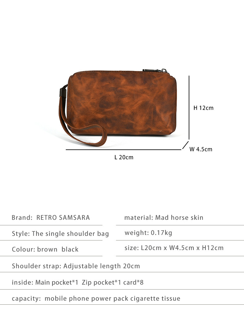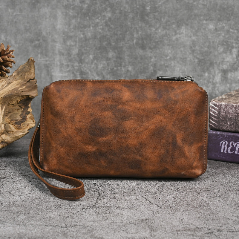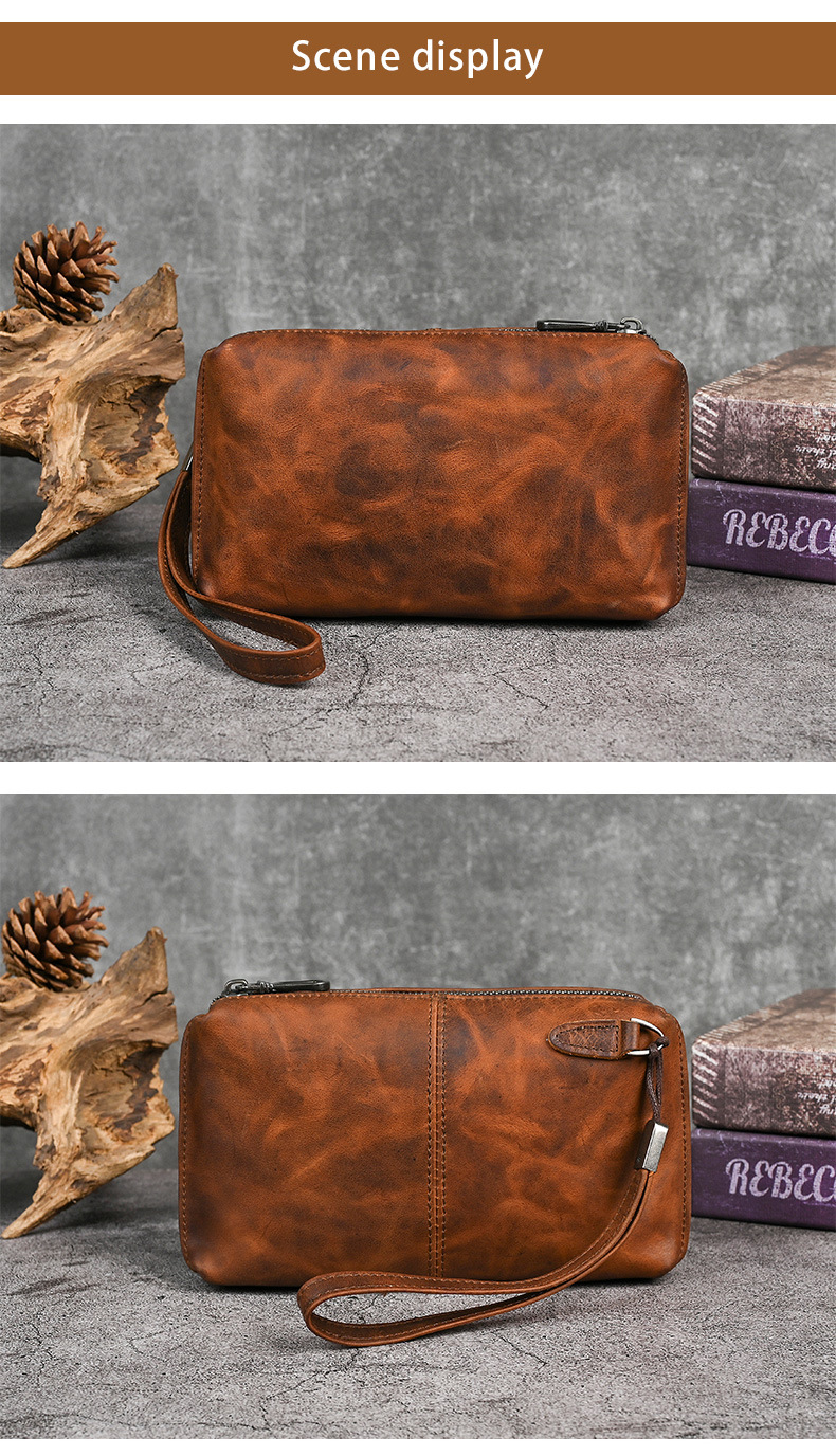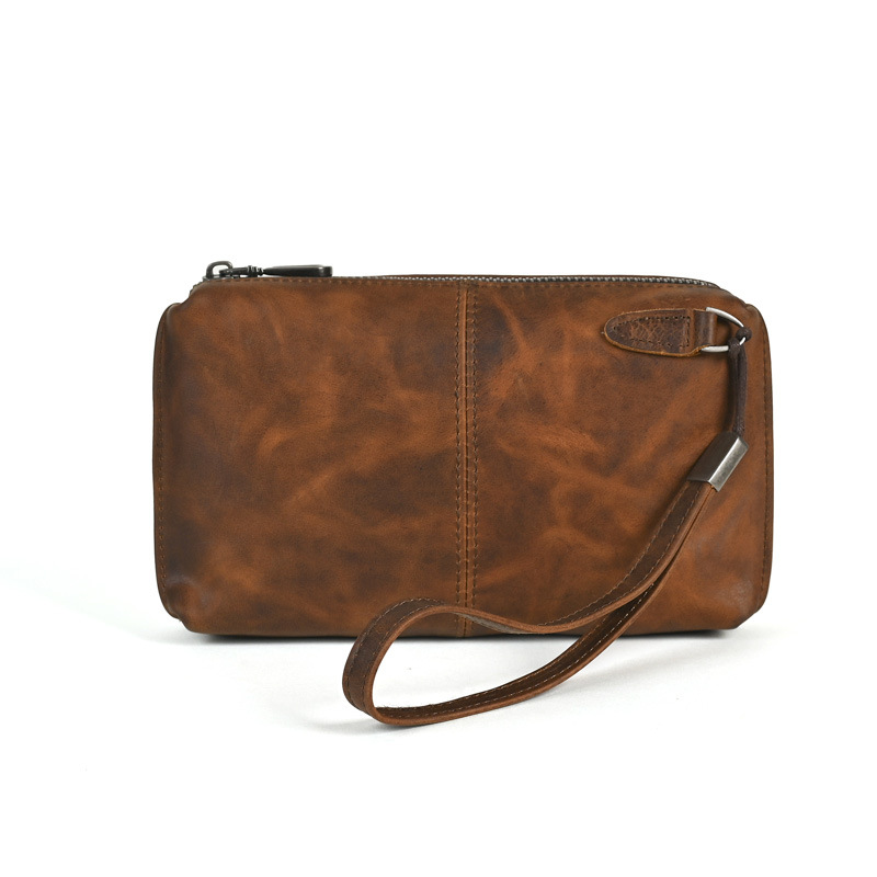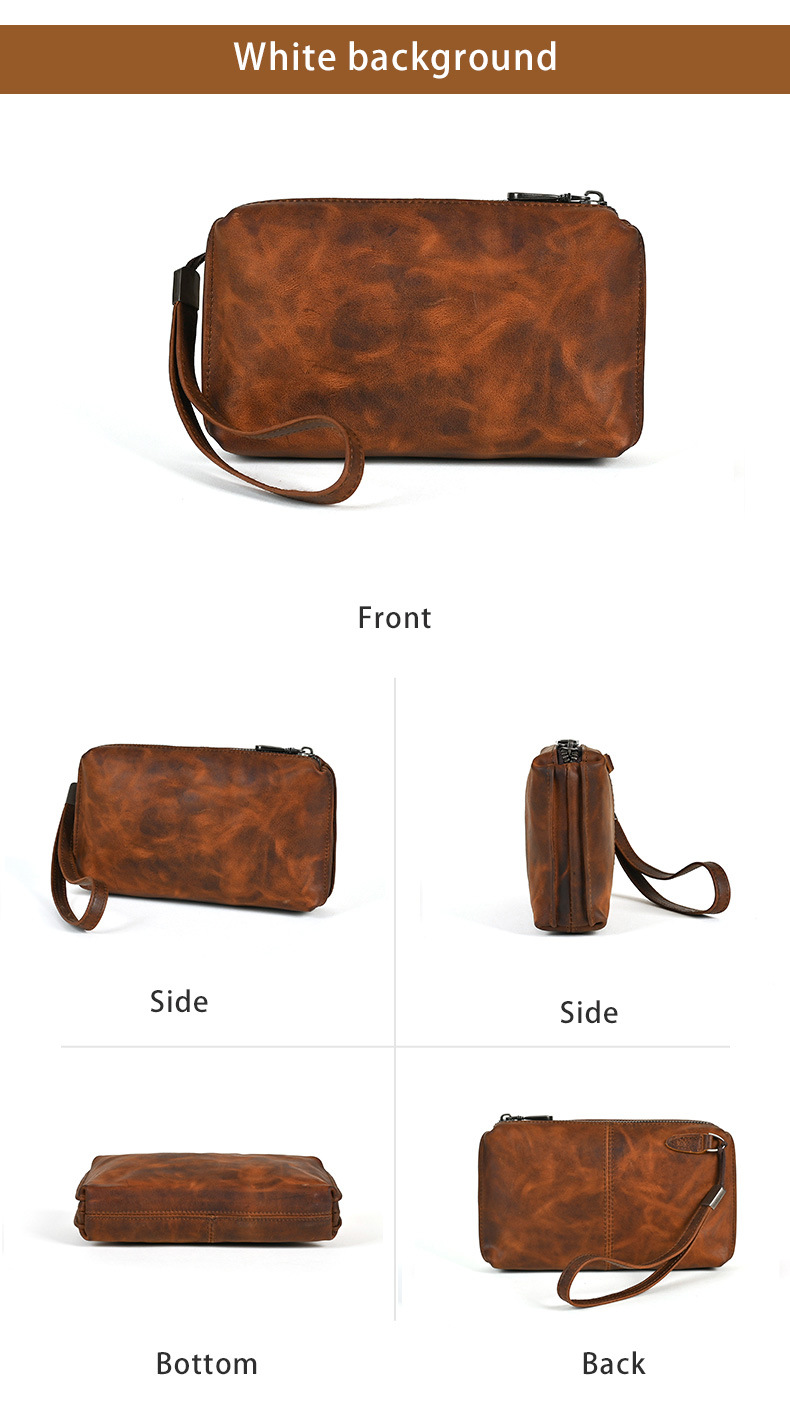 남성용 정품 가죽 핸드백 소프트 가죽 클러치 백 레트로 카우 히데 긴 지갑 캐주얼 휴대 전화 가방 간단한 트렌디 한 클러치 백스토어 가기