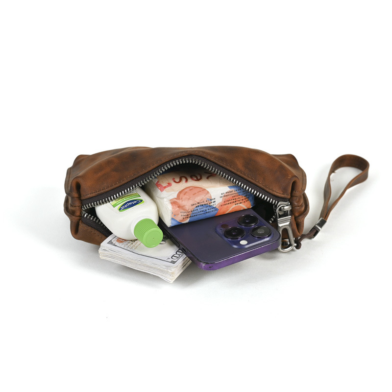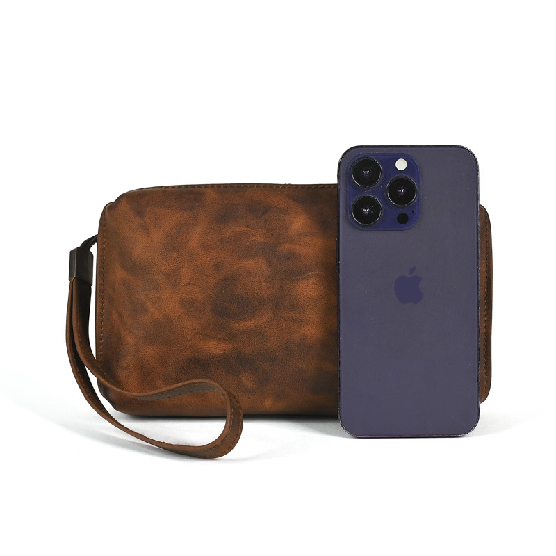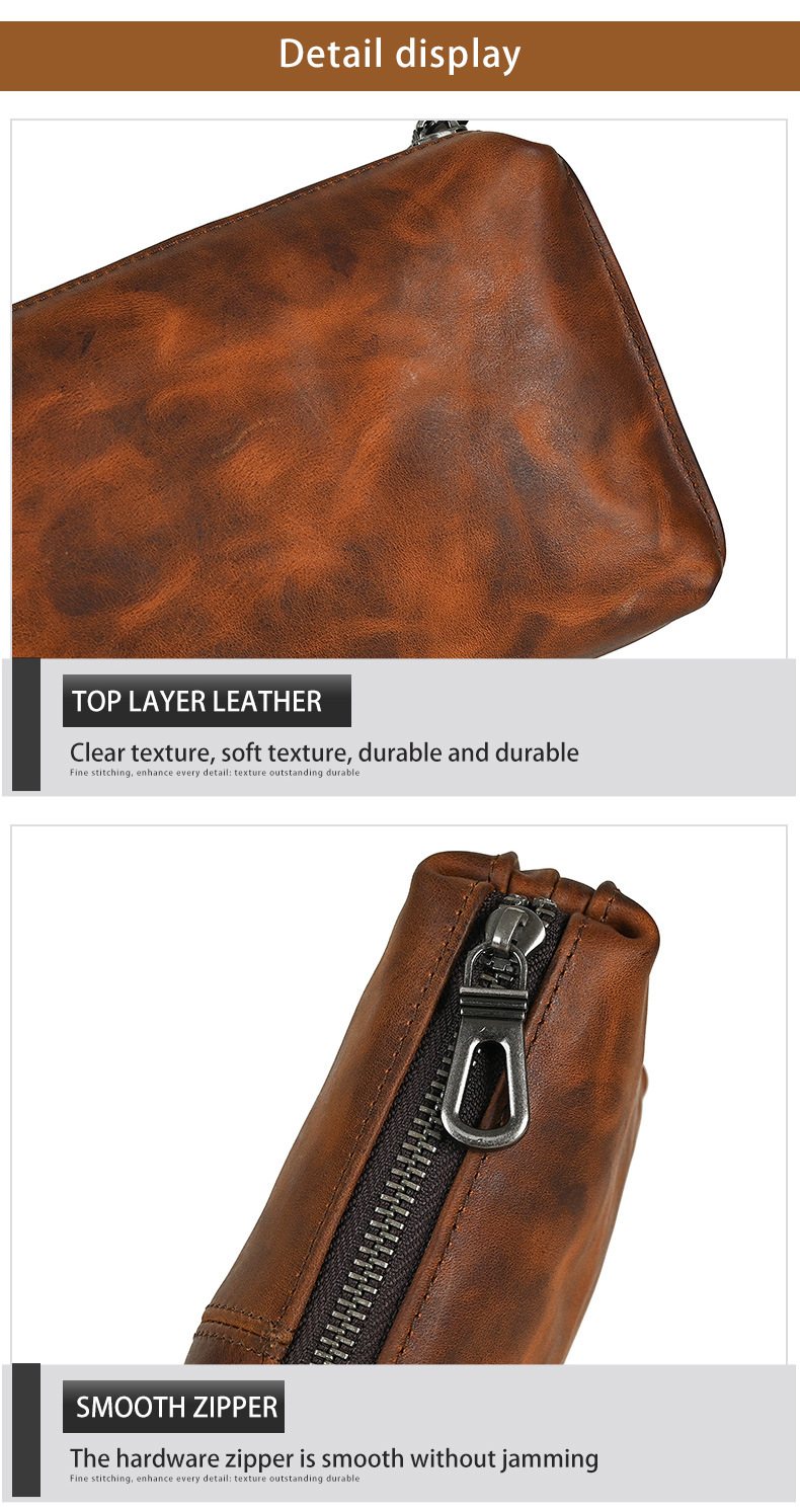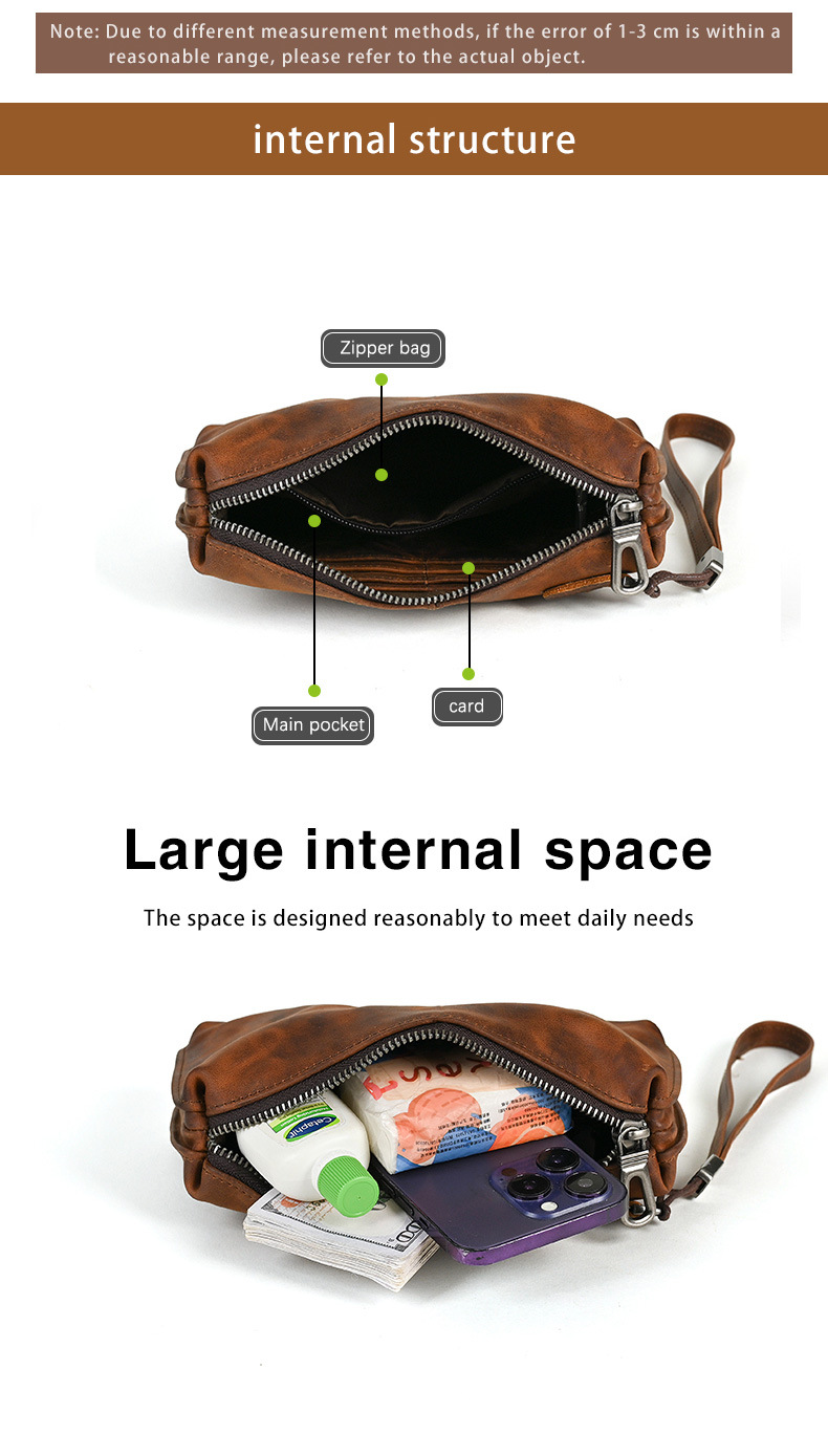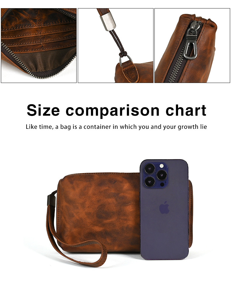 남성용 정품 가죽 핸드백 소프트 가죽 클러치 백 레트로 카우 히데 긴 지갑 캐주얼 휴대 전화 가방 간단한 트렌디 한 클러치 백스토어 가기