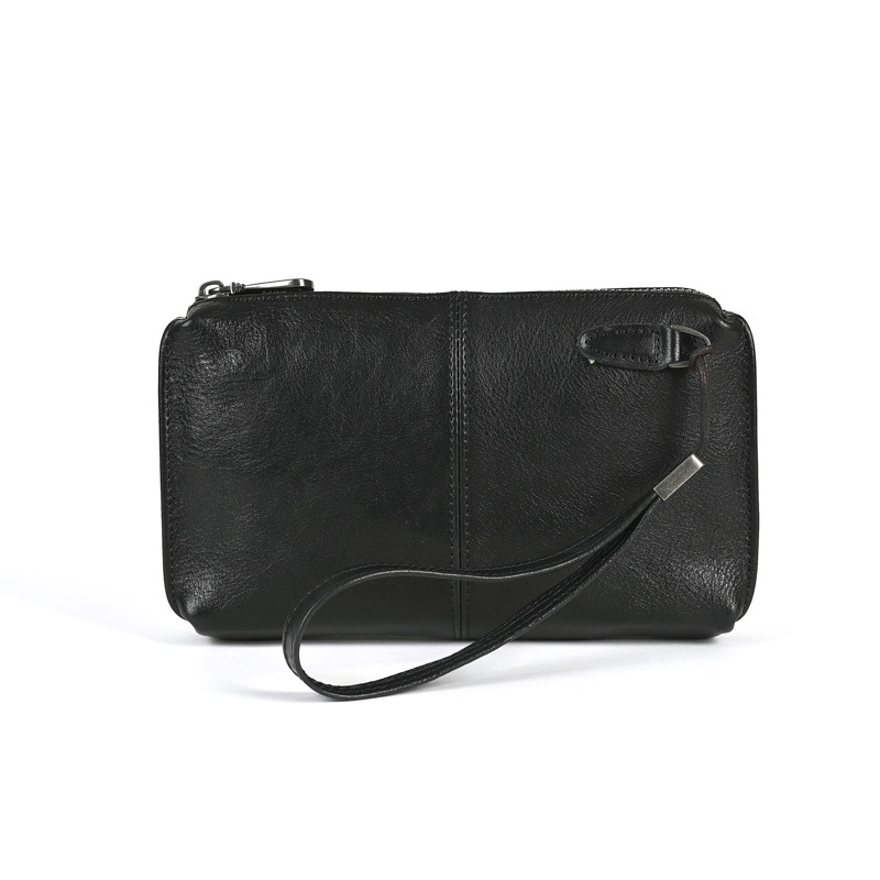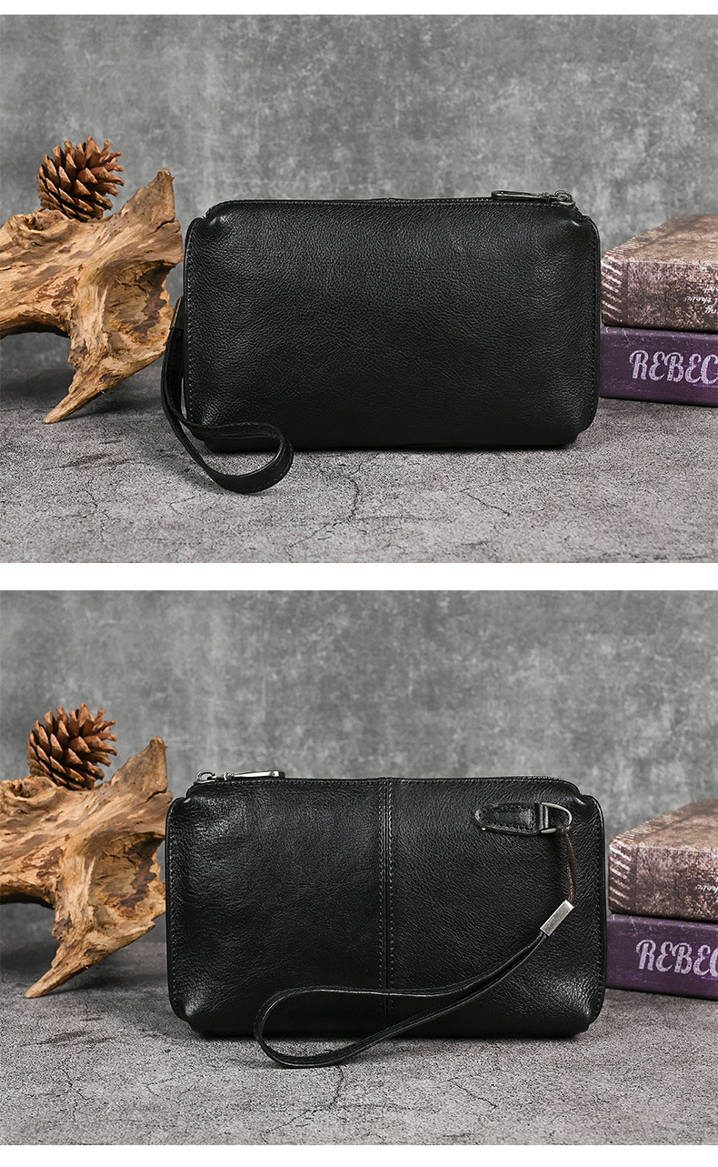 남성용 정품 가죽 핸드백 소프트 가죽 클러치 백 레트로 카우 히데 긴 지갑 캐주얼 휴대 전화 가방 간단한 트렌디 한 클러치 백
