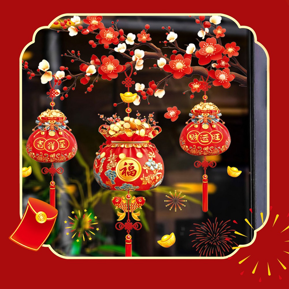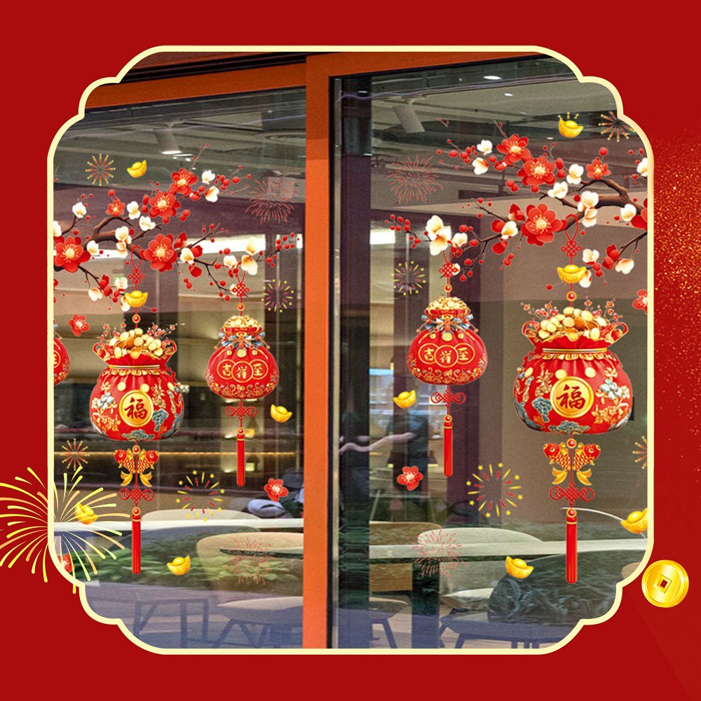 Yiyao SKJD9466DS 새해 축하 5 Bless Linmen 가방 장식 스티커 발코니 유리 정전기 스티커스토어 가기