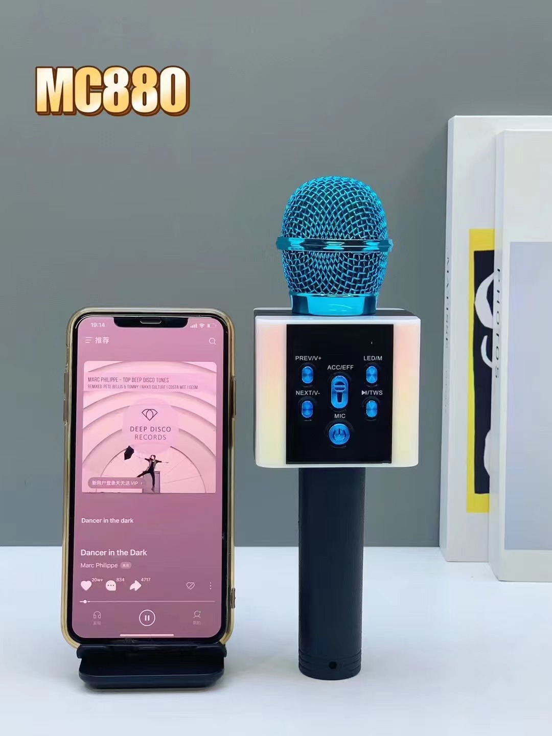 2024 새로운 마이크 블루투스 스테레오 스퀘어 무선 노래방 마이크 MC880 화려한 조명 국경 선물스토어 가기