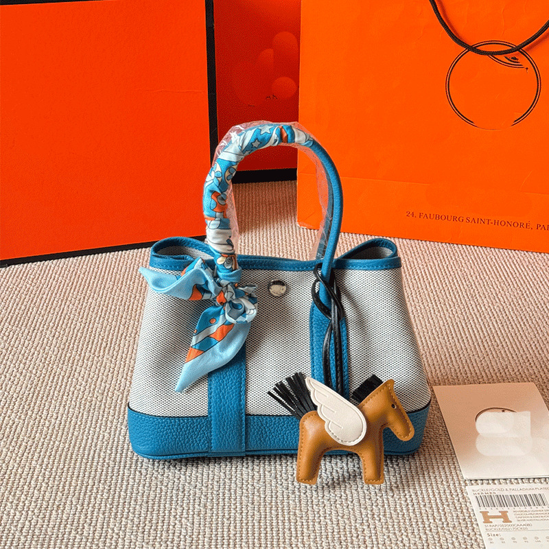 고품질 캔버스와 소가죽 혼합 가든백 핸드백 크로스백 대용량 토트백 22cm 다용도 토트백스토어 가기