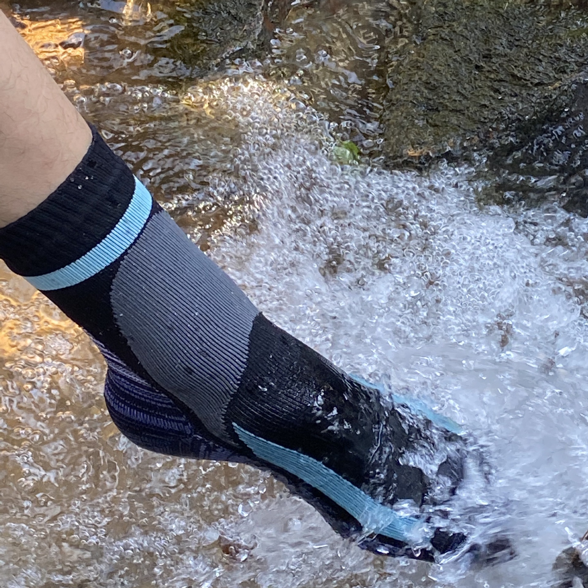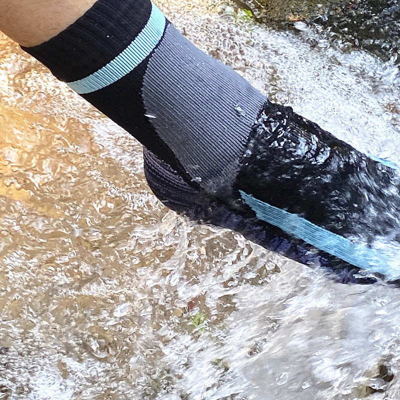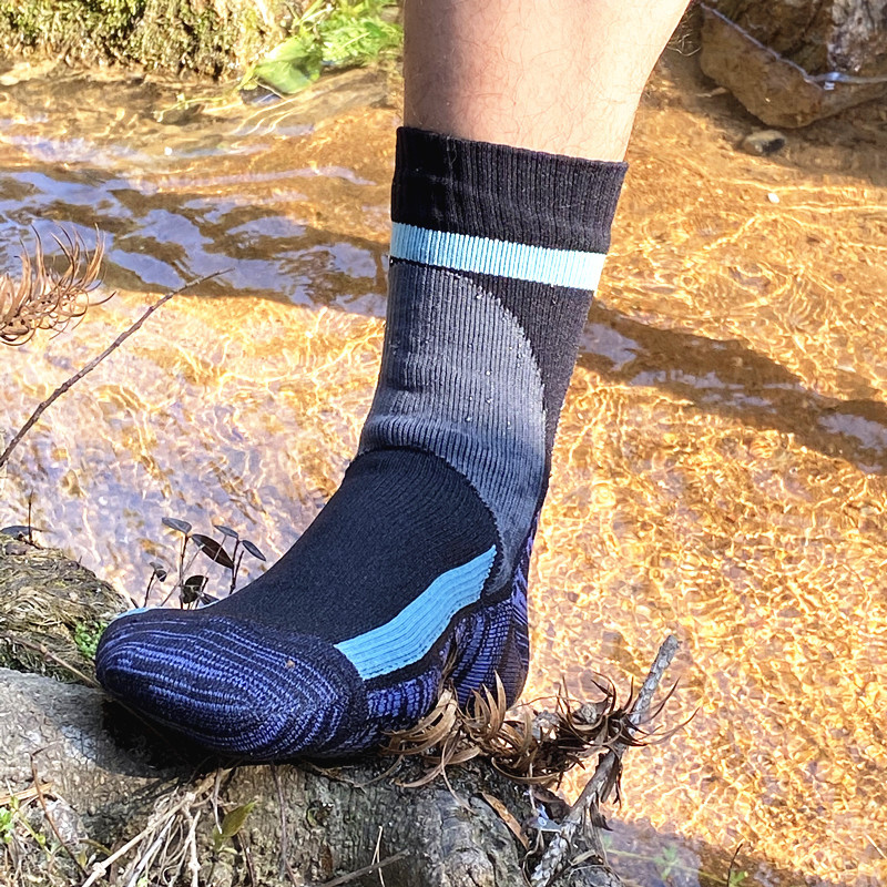 穿防水袜的好处是可以防止水进入脚部,减少受寒。在户外活动中,适合在水边垂钓的矶钓,以及夏天的溪流垂钓。在登山和徒步旅行等气候多变的山地活动中也很活跃。也有保暖性的袜子,冬天登山的时候方便。