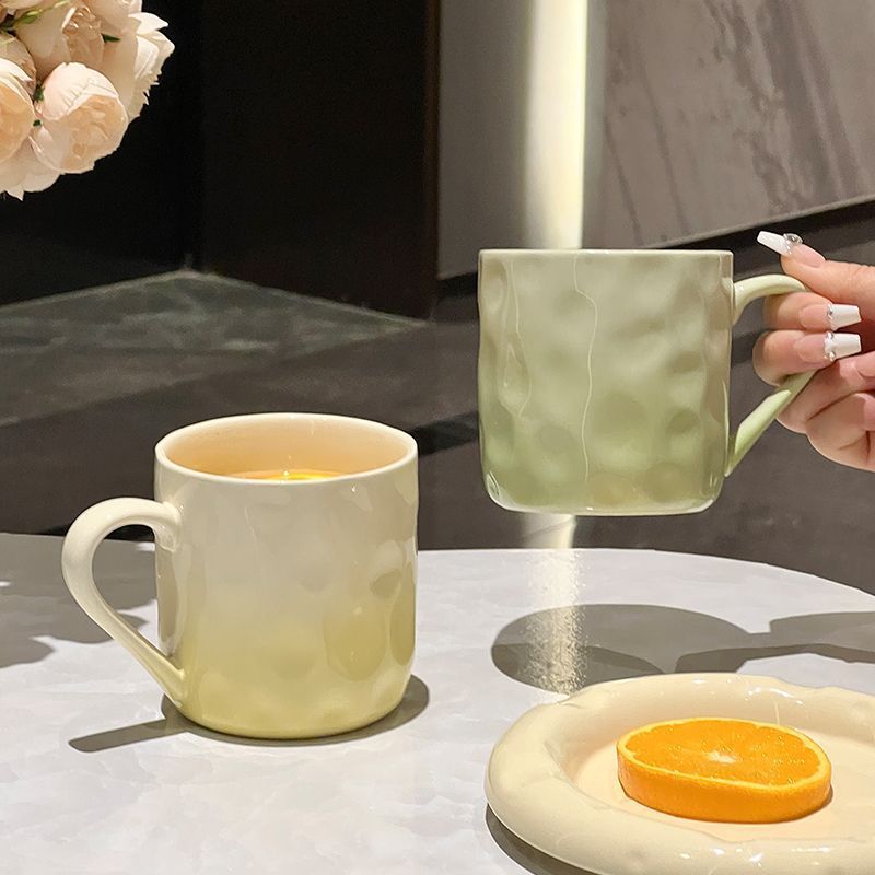 세라믹 그라디언트 머그컵 커플 아침 식사 컵 여자 가정 높은 색상 가치 디자인 감각 마시는 물 컵 우유 백만