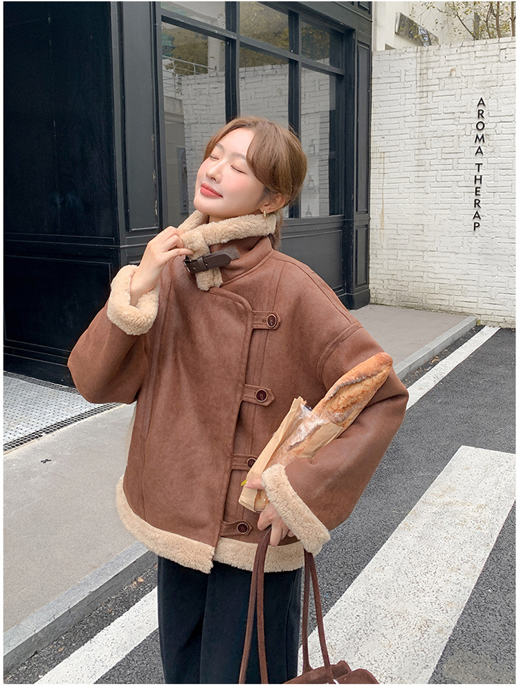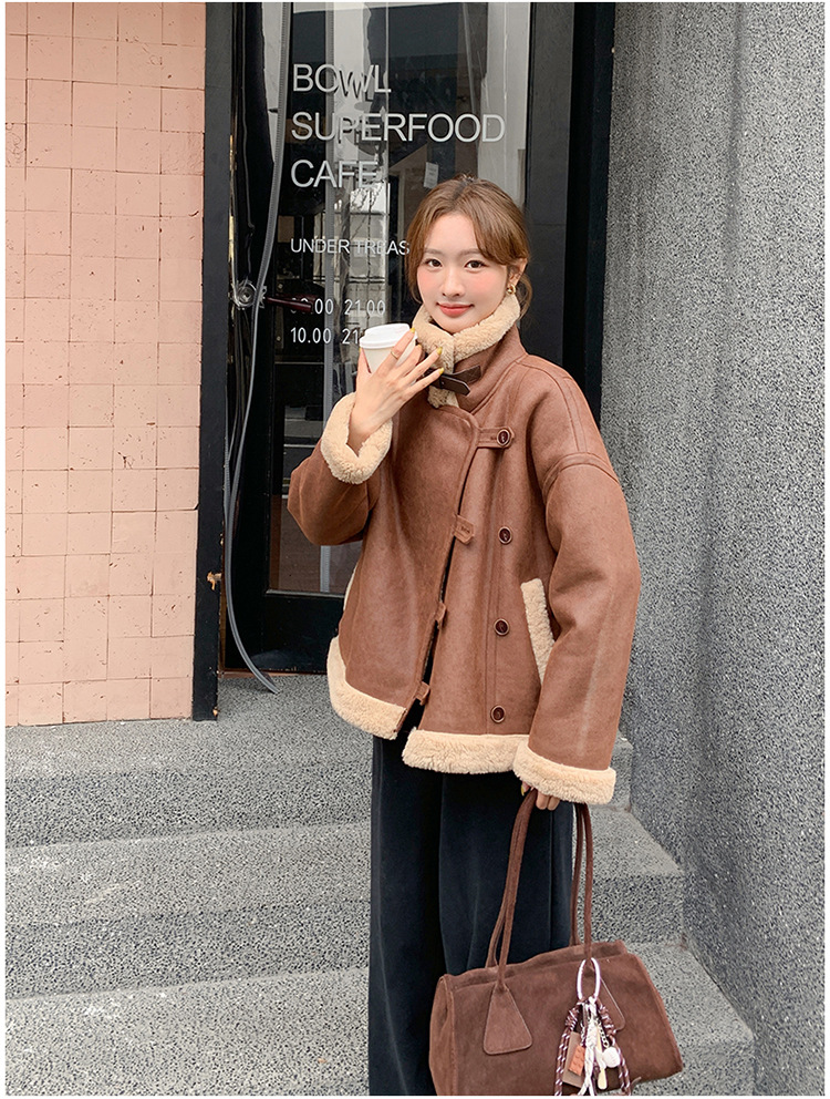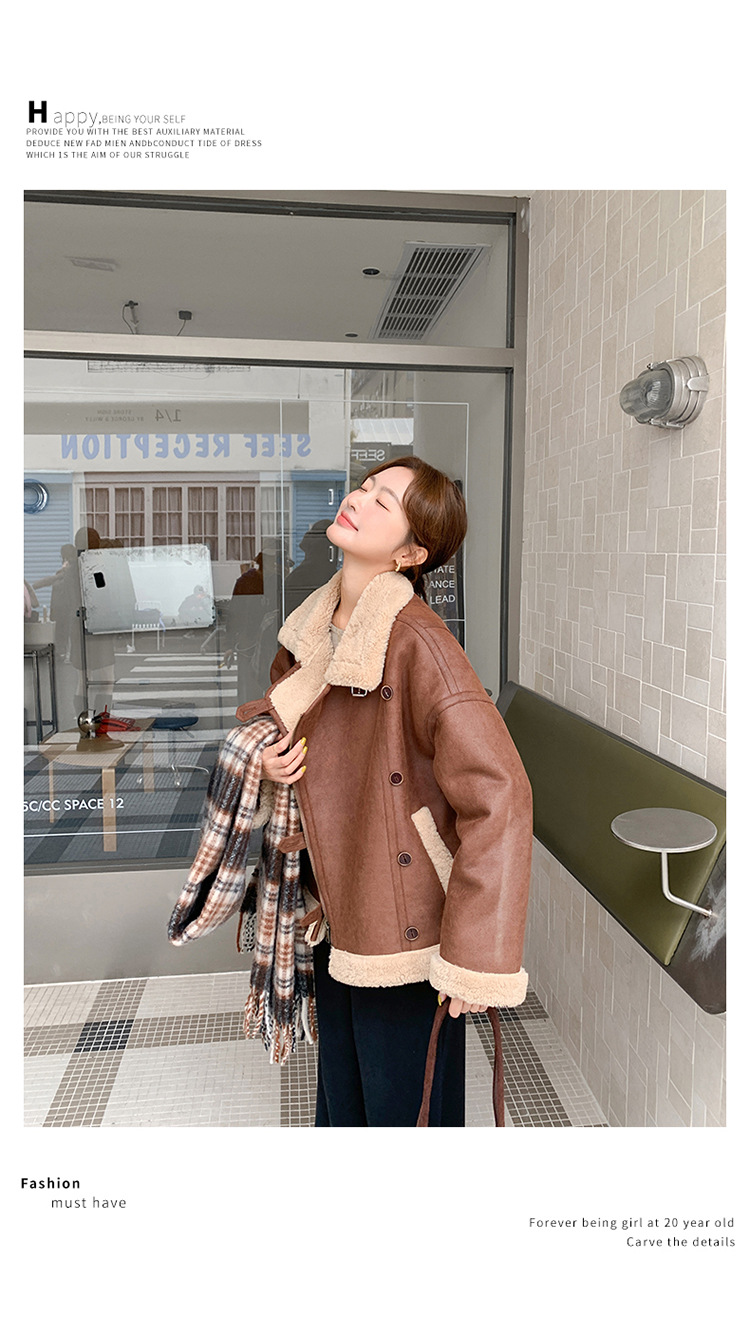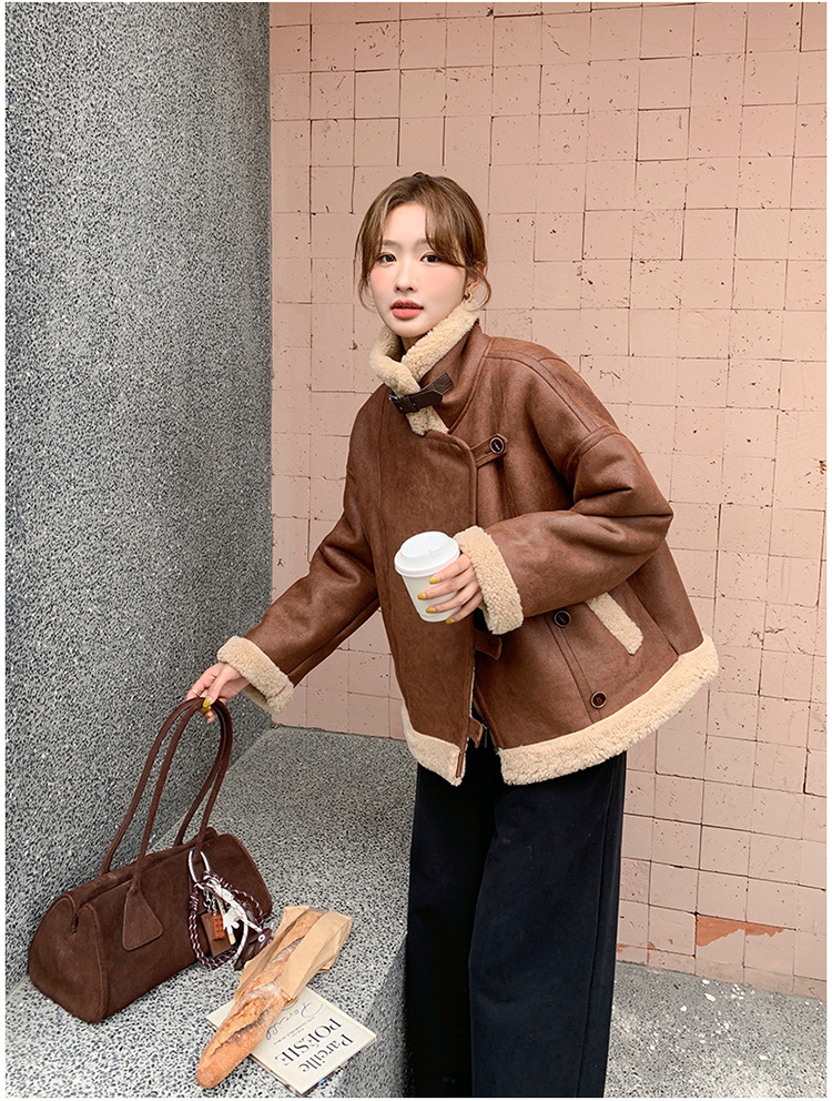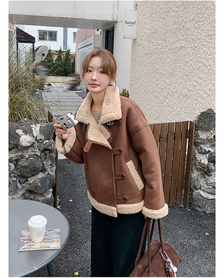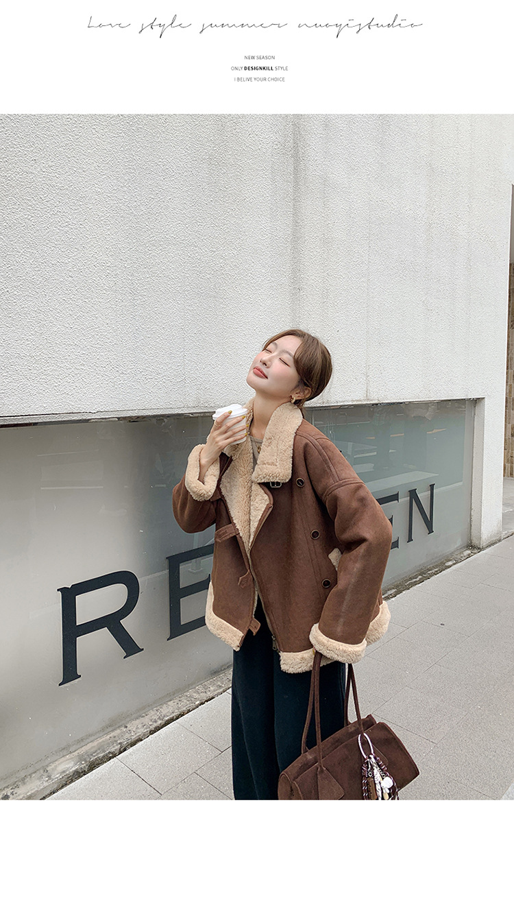 [이탈리아] 멩메이 2024 겨울 한국식 레저 스타일 양고기 모피 원피스 코트 두꺼운 오토바이 면 패딩 재킷