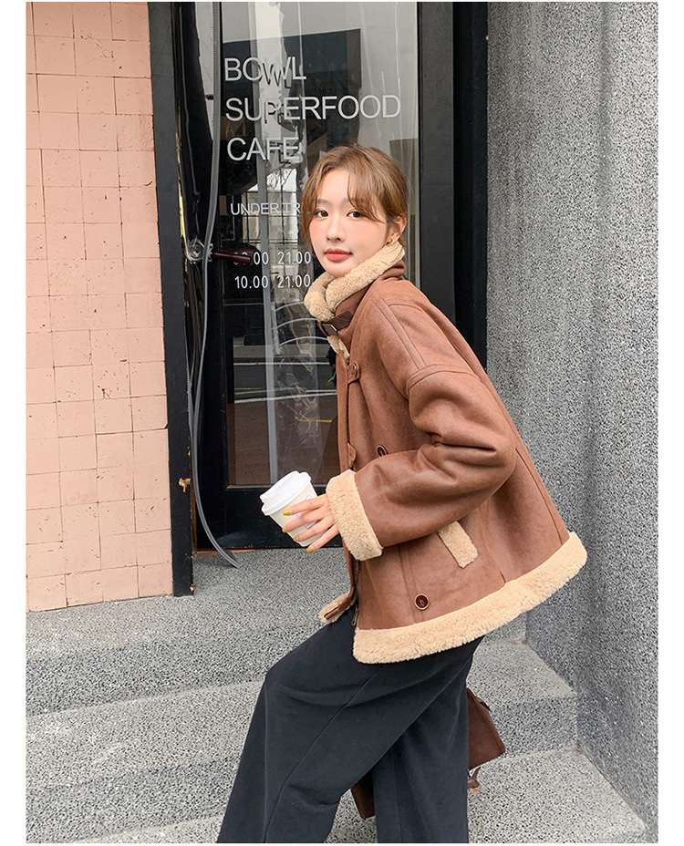 [이탈리아] 멩메이 2024 겨울 한국식 레저 스타일 양고기 모피 원피스 코트 두꺼운 오토바이 면 패딩 재킷스토어 가기