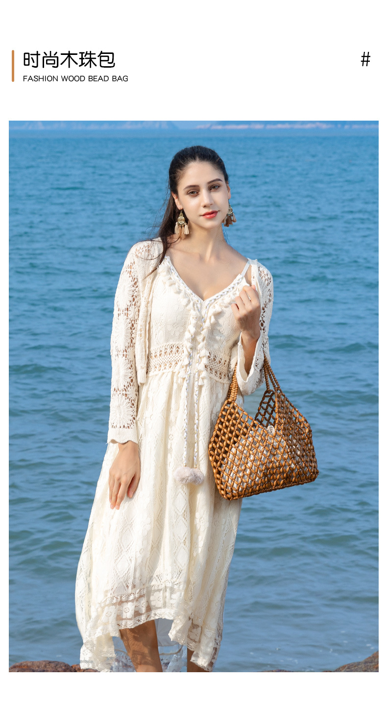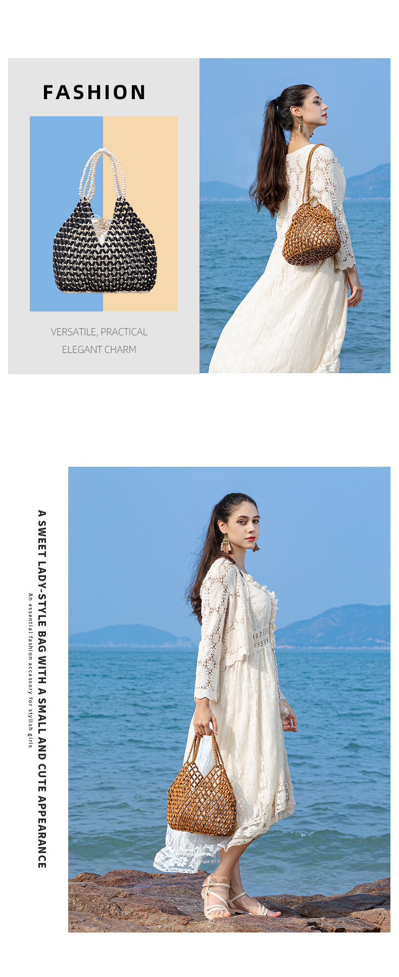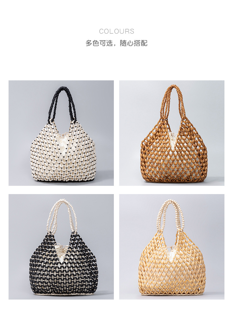 OLEI 대용량 국경 간 핸드백 여성 수제 짠 가방 캐주얼 여행 휴가 구슬 어깨 가방 여성