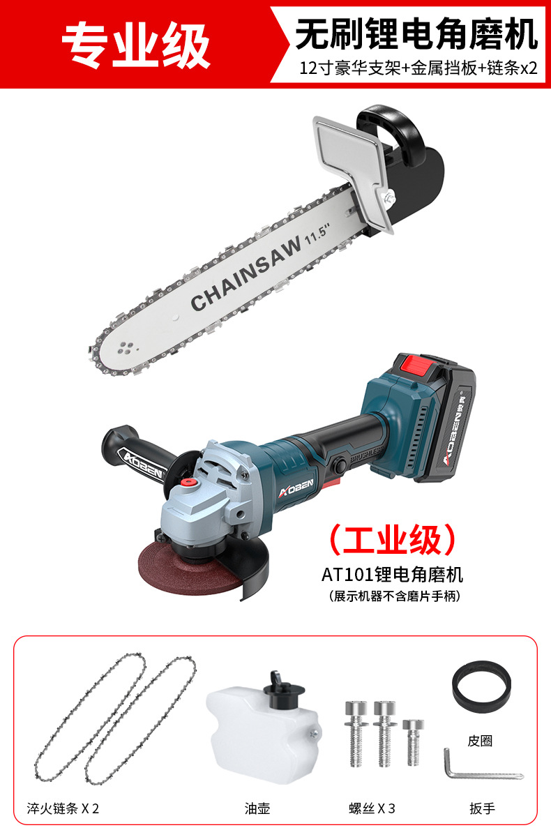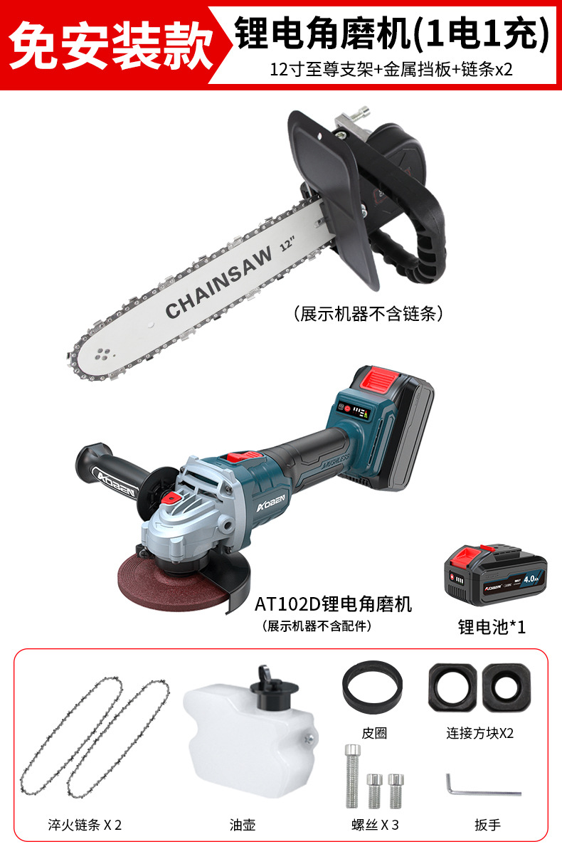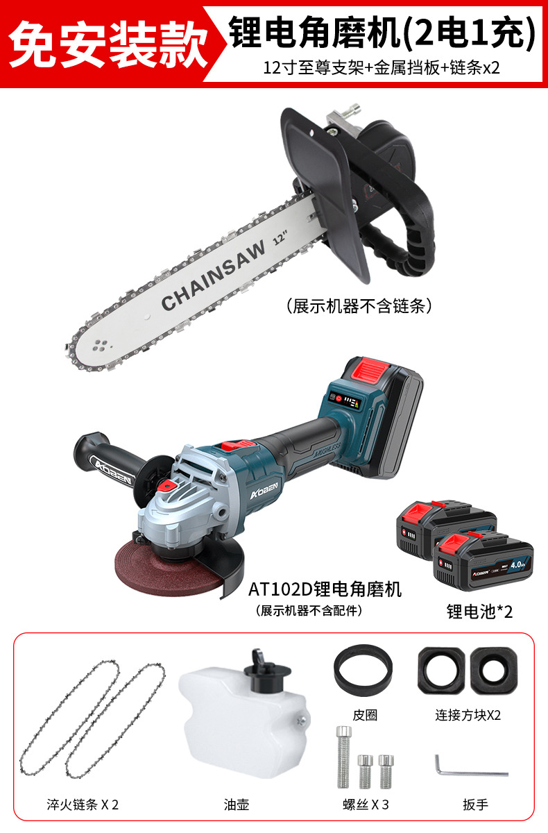 • ✅[ 12inch 설치 불필요] + 체인 2 + 리튬 배터리 앵글 그라인더 AT102D(배터리 2개, 충전기 1개)