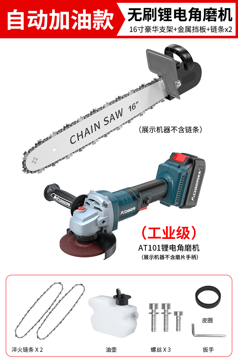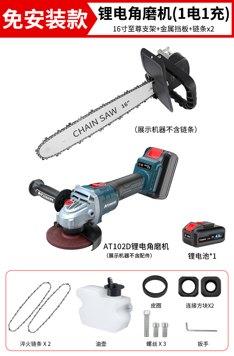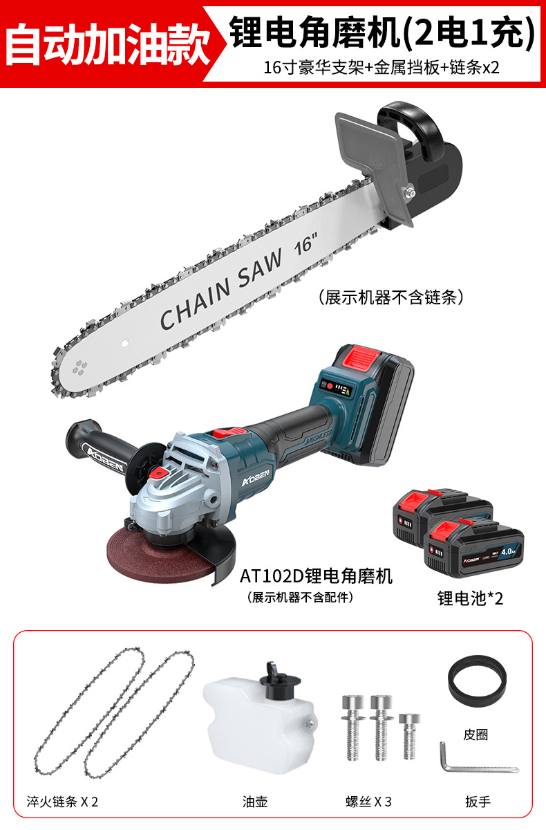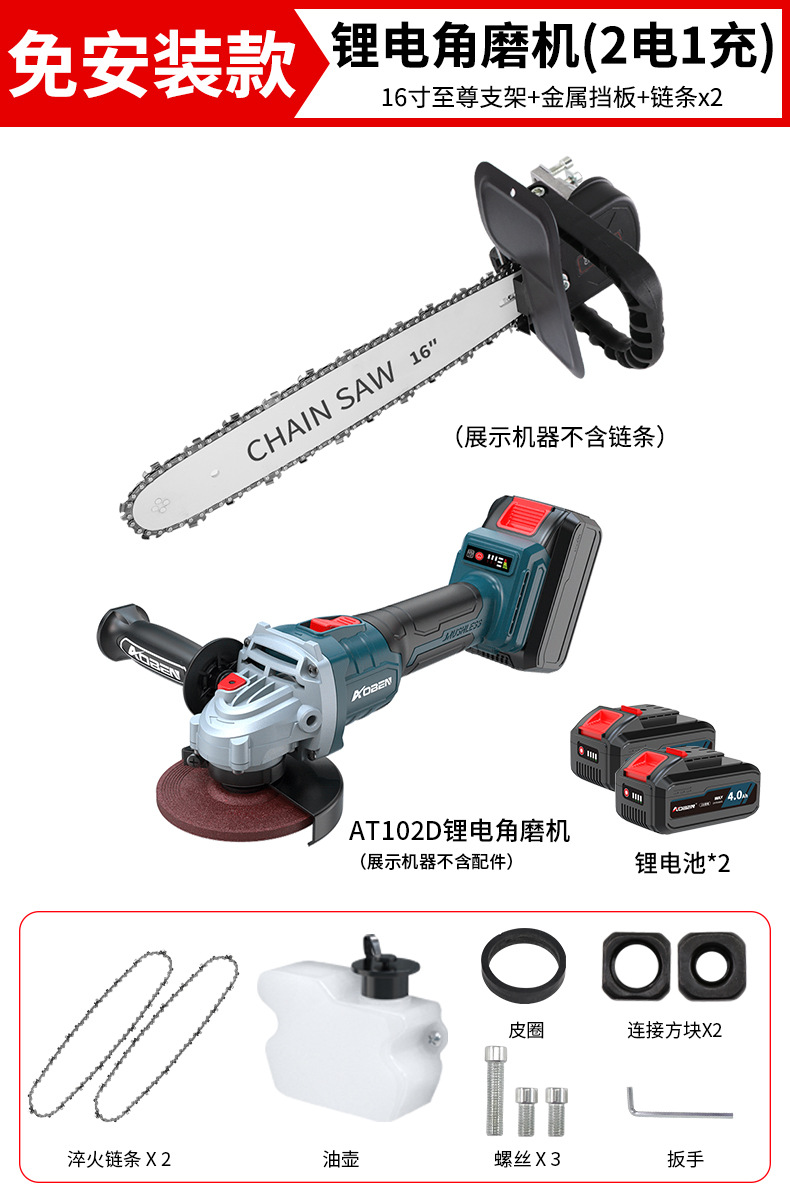 • ✅[ 16inch 설치 불필요] + 체인 2 + 리튬 배터리 앵글 그라인더 AT102D(배터리 2개, 충전기 1개)