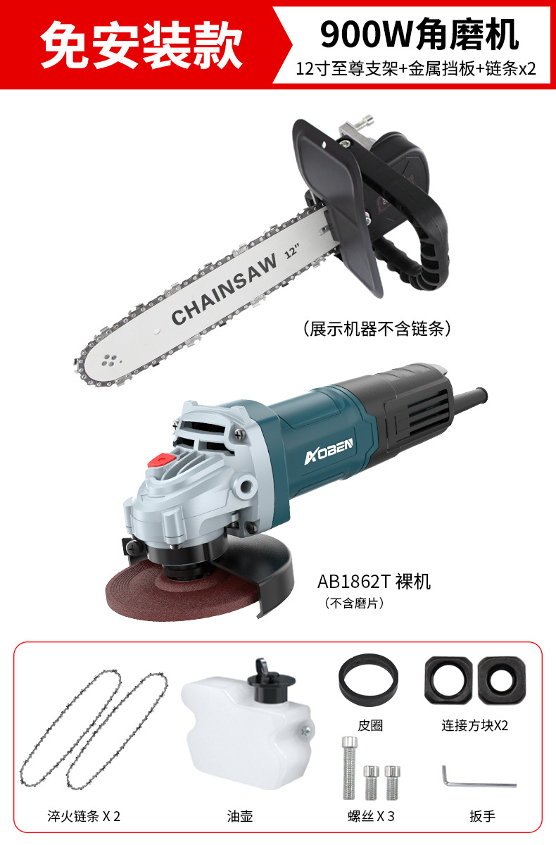 Auburn 앵글 그라인더 수정 된 전기 체인 톱 체인 톱 가정용 소형 휴대용 다기능 목공 절단 목재 톱