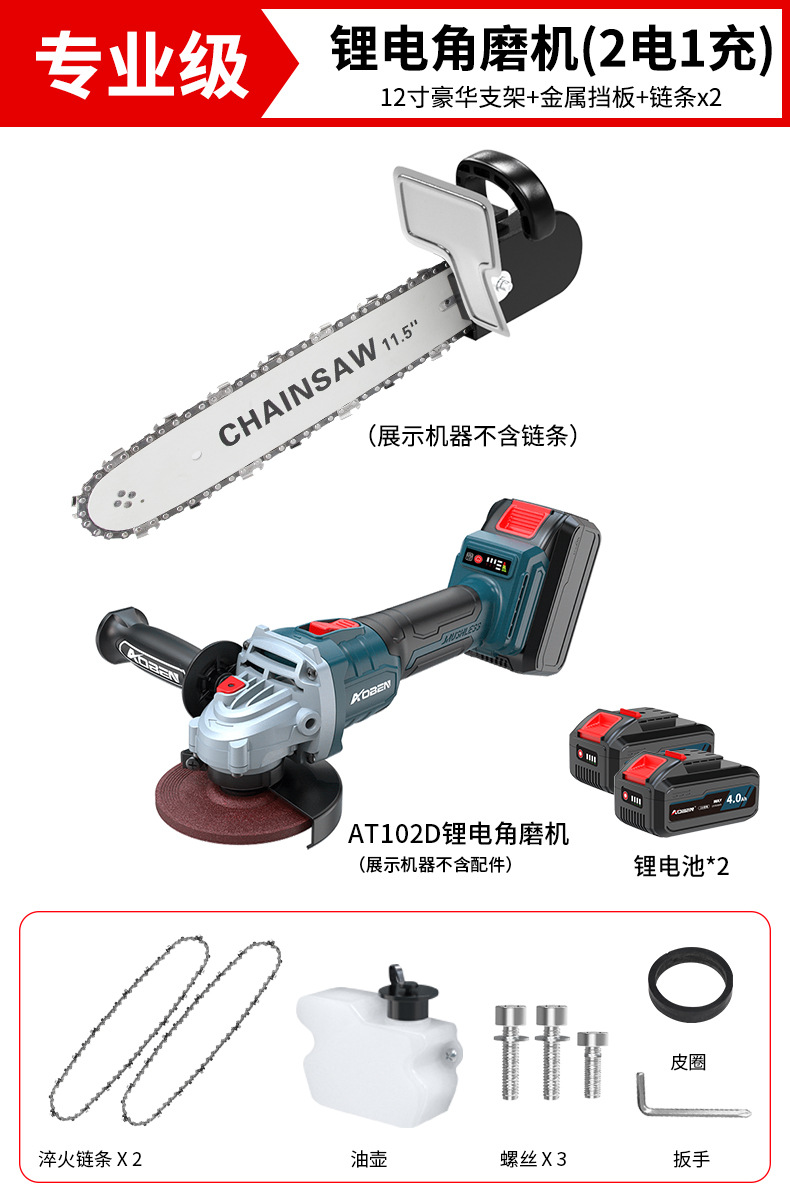 • [ 12inch 전문가급] + 체인 2 + 리튬 배터리 앵글 그라인더 AT102D(배터리 2개, 충전기 1개)