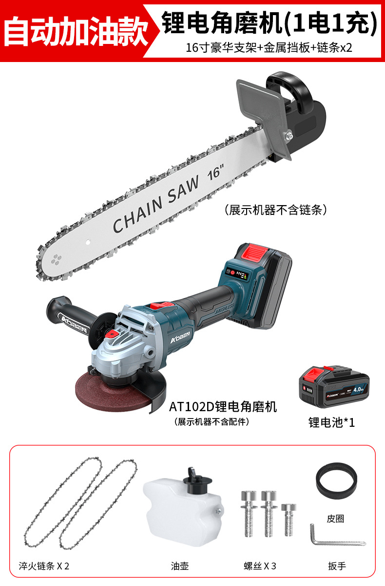 • ✅[ 16inch 전문가급] + 체인 2 + 리튬 배터리 앵글 그라인더 AT102D(배터리 2개, 충전기 1개)