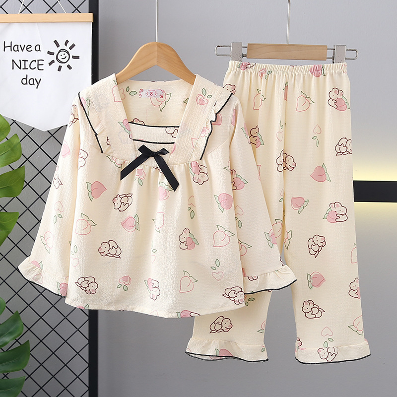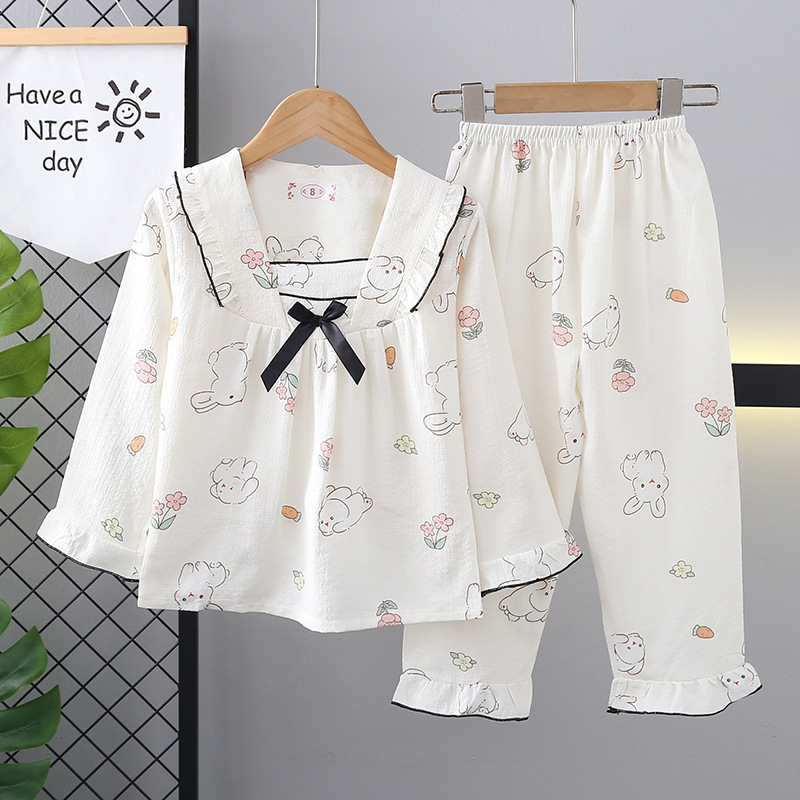 소녀 잠옷 봄과 가을 긴 소매 어린이 잠옷 세트 만화 소녀 공주 스타일 아기 홈 옷