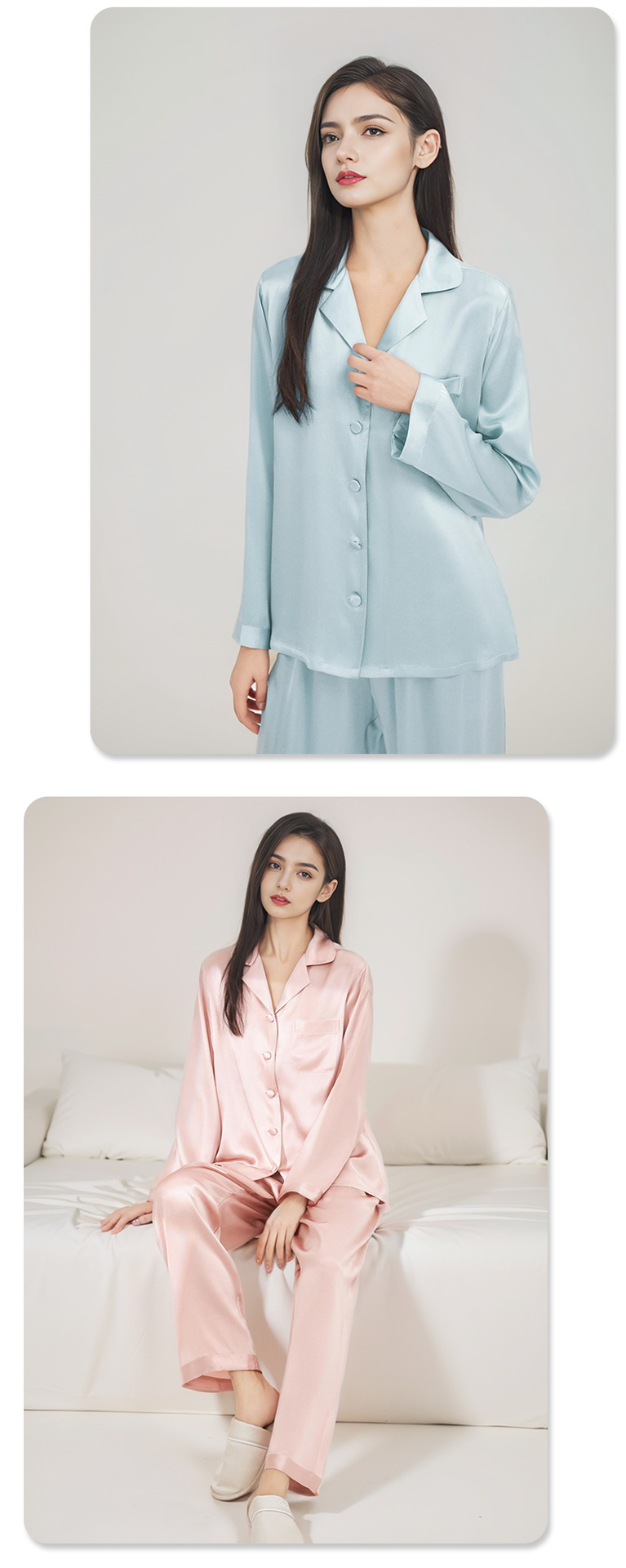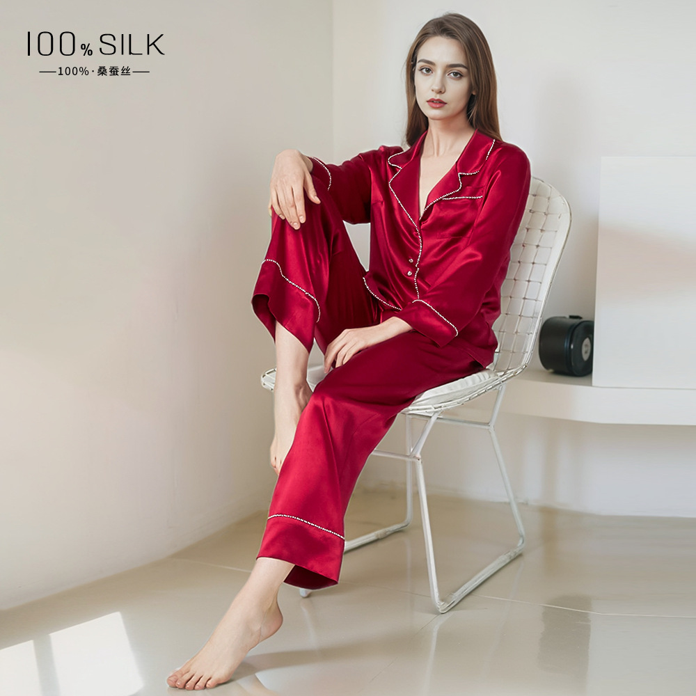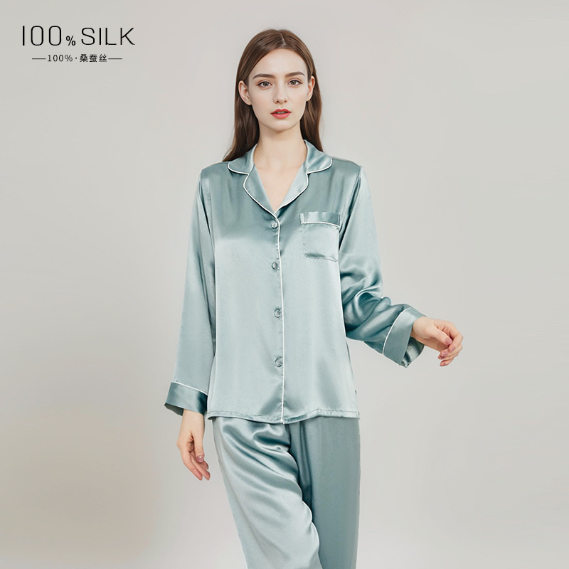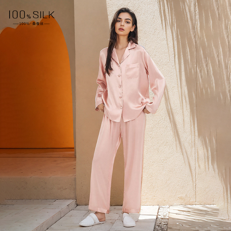 2026년 신상 여성용 실크 잠옷, 100% 뽕나무 실크, 긴팔 긴바지, 심플하고 편안한 가을 겨울 홈웨어 세트
