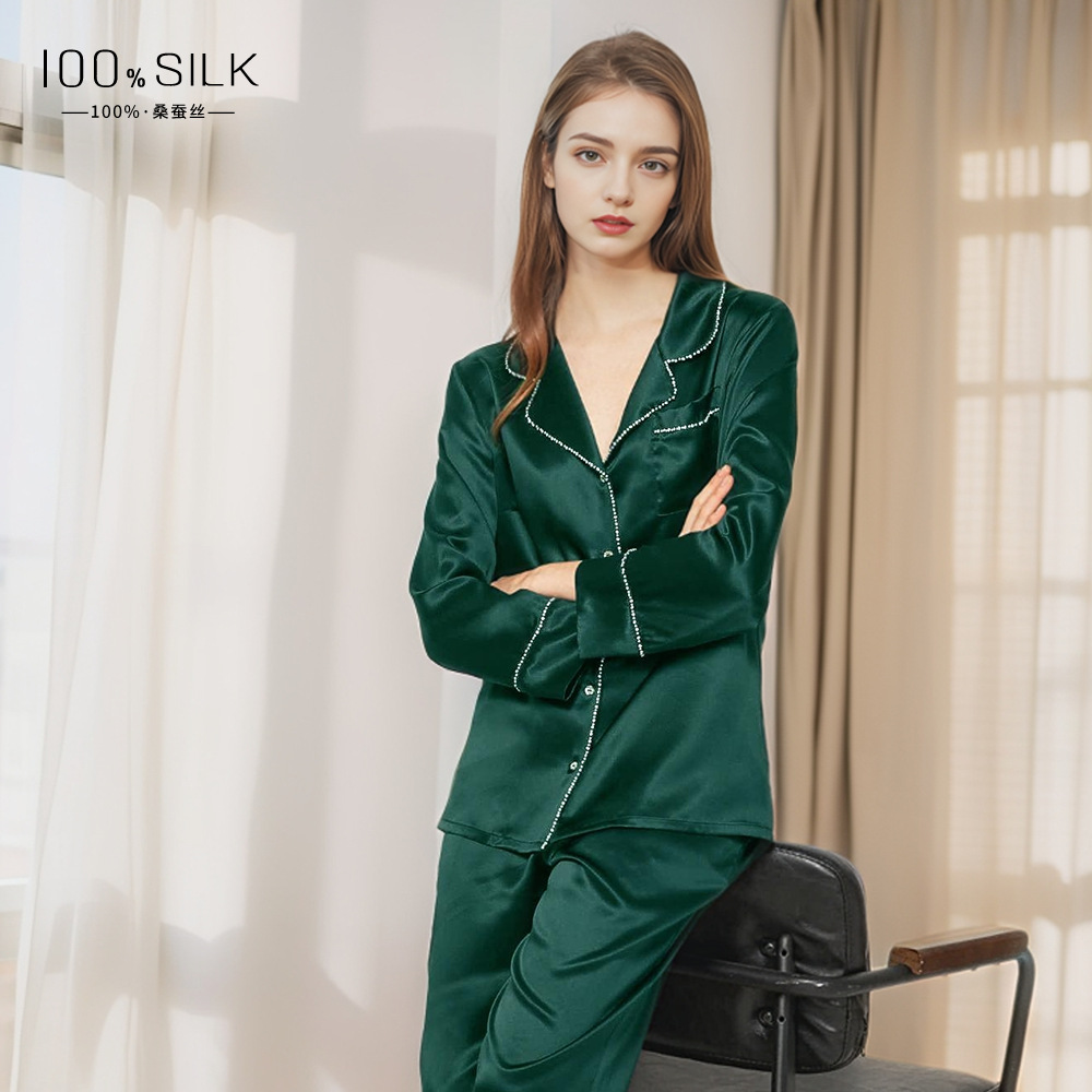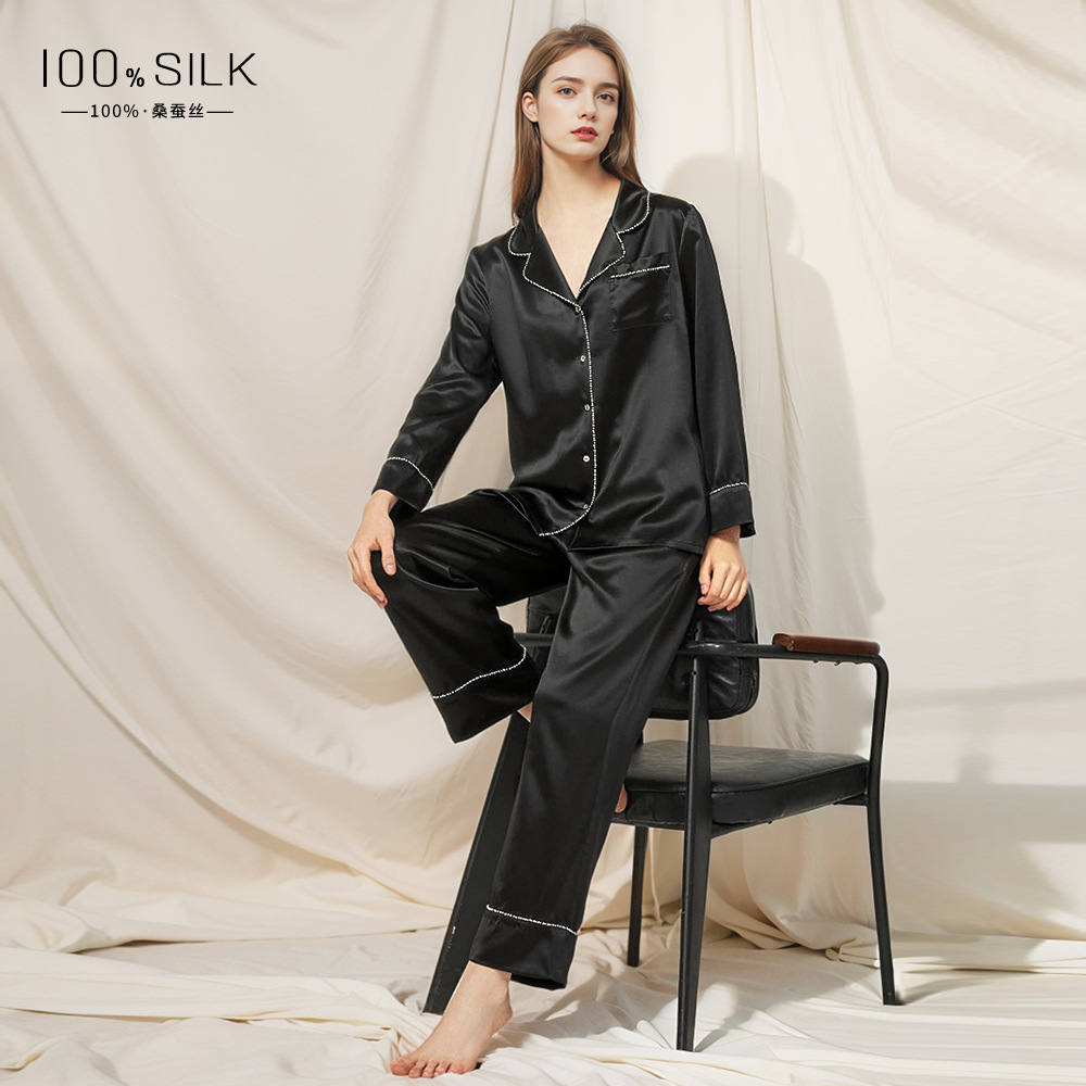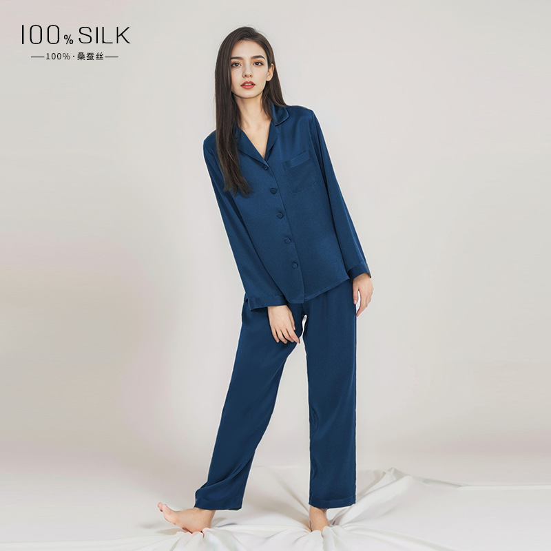 2026년 신상 여성용 실크 잠옷, 100% 뽕나무 실크, 긴팔 긴바지, 심플하고 편안한 가을 겨울 홈웨어 세트스토어 가기