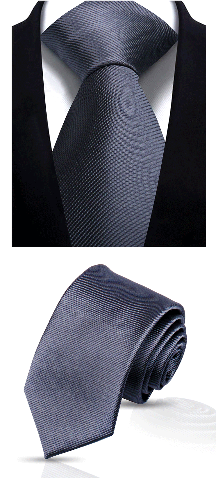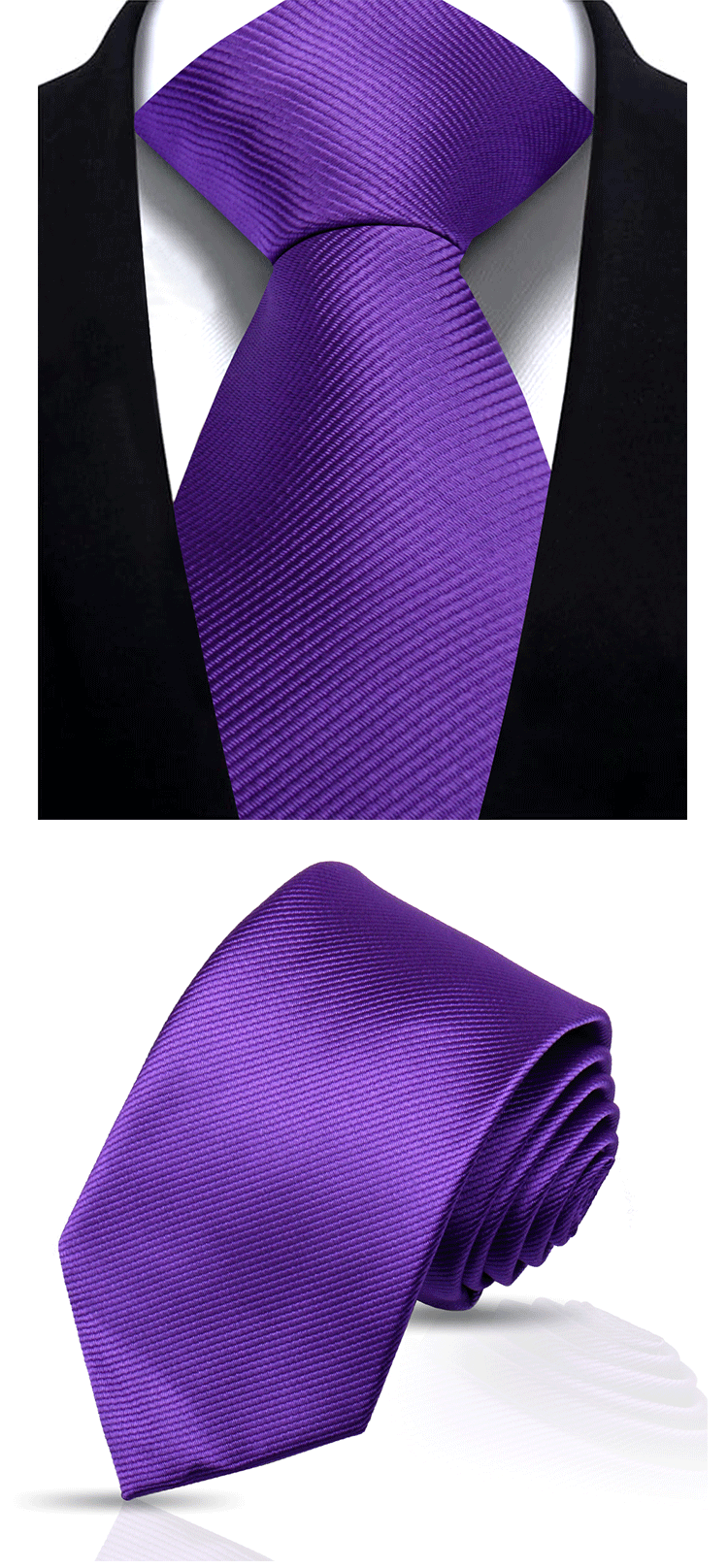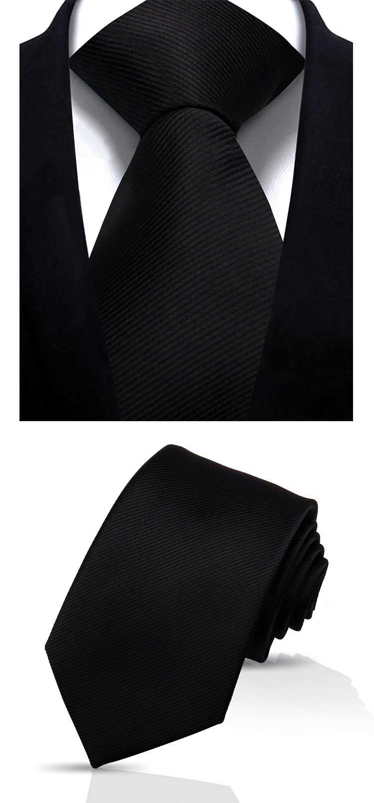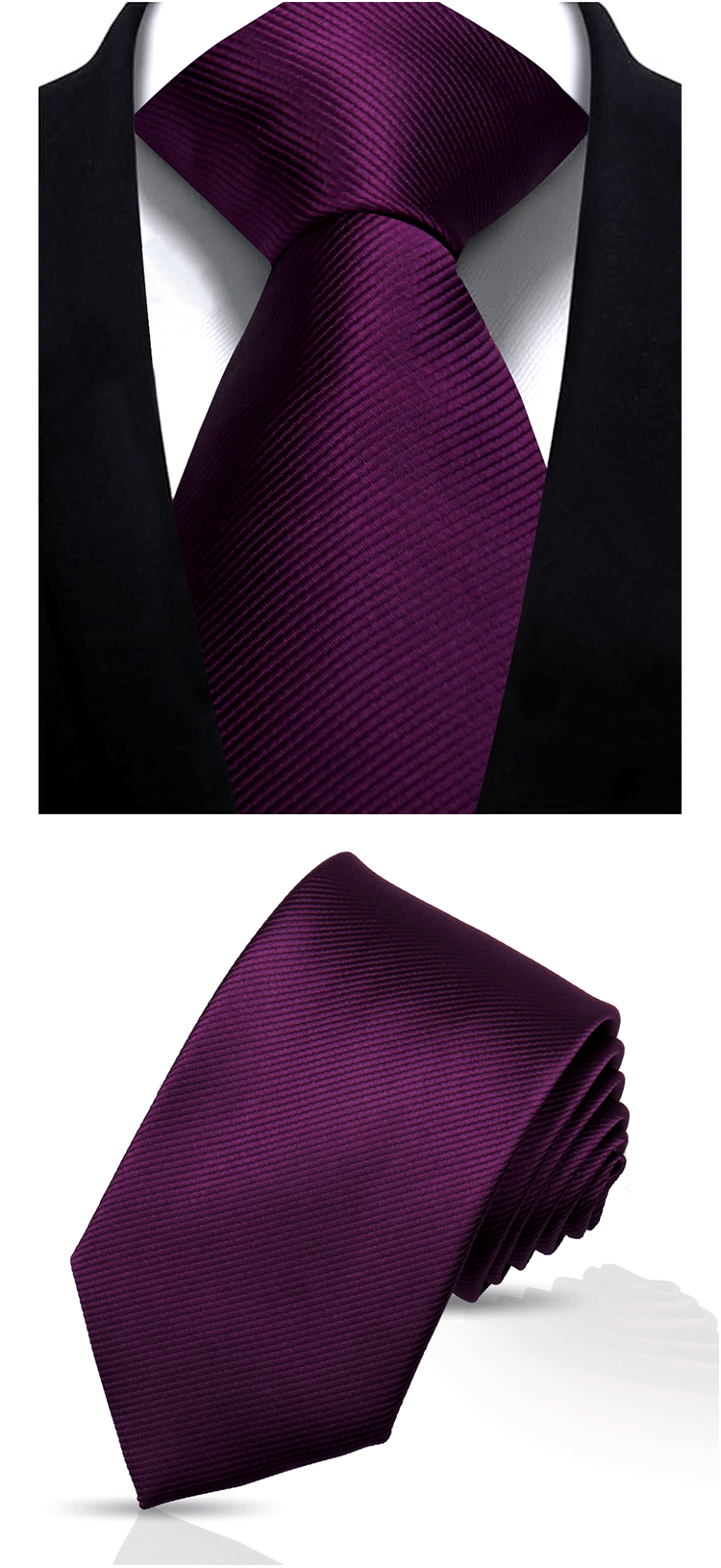 솔리드 컬러 스트라이프 넥타이 남성용 비즈니스 패션 캐주얼 전문가용 블랙 버건디 핸드메이드 폴리에스테르 실크 넥타이 7.5cm스토어 가기