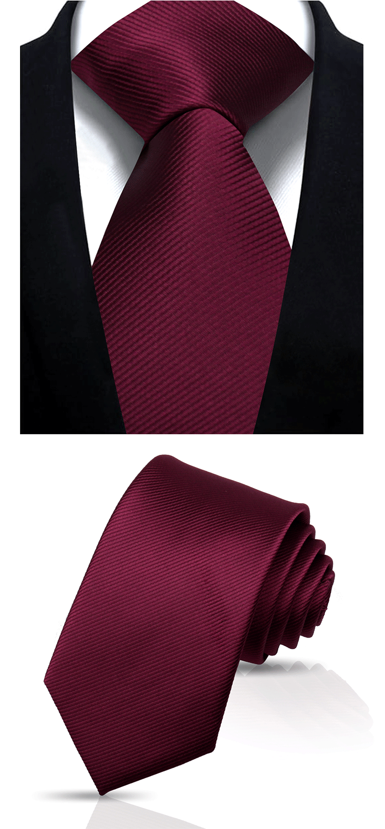 솔리드 컬러 스트라이프 넥타이 남성용 비즈니스 패션 캐주얼 전문가용 블랙 버건디 핸드메이드 폴리에스테르 실크 넥타이 7.5cm
